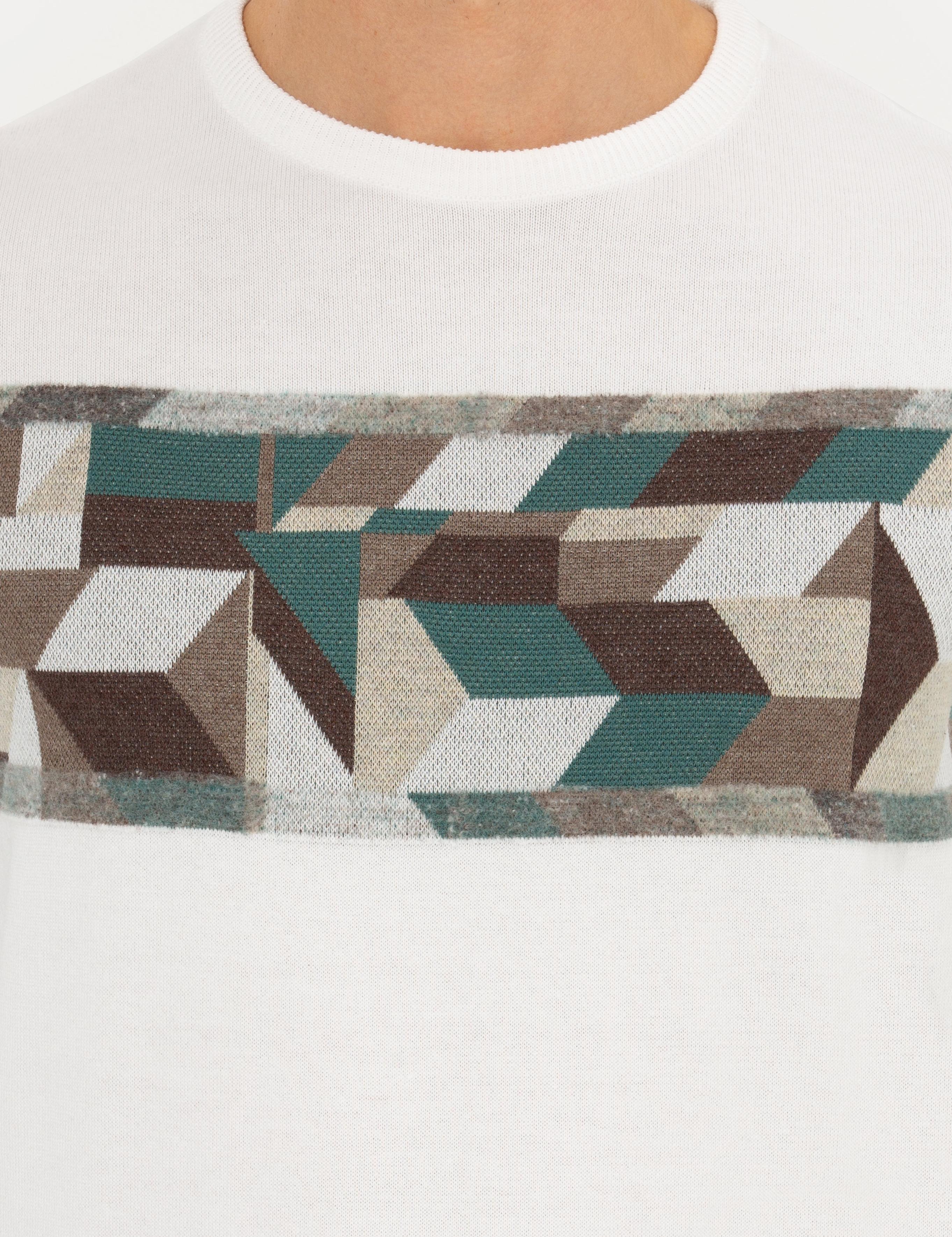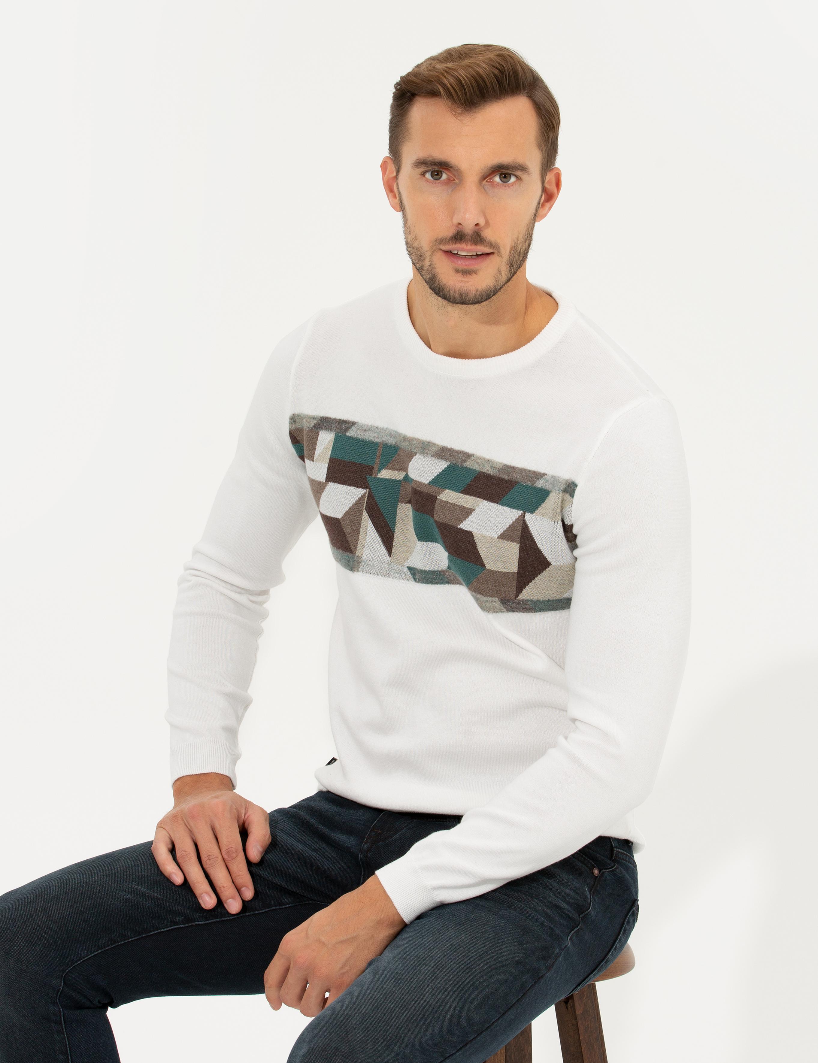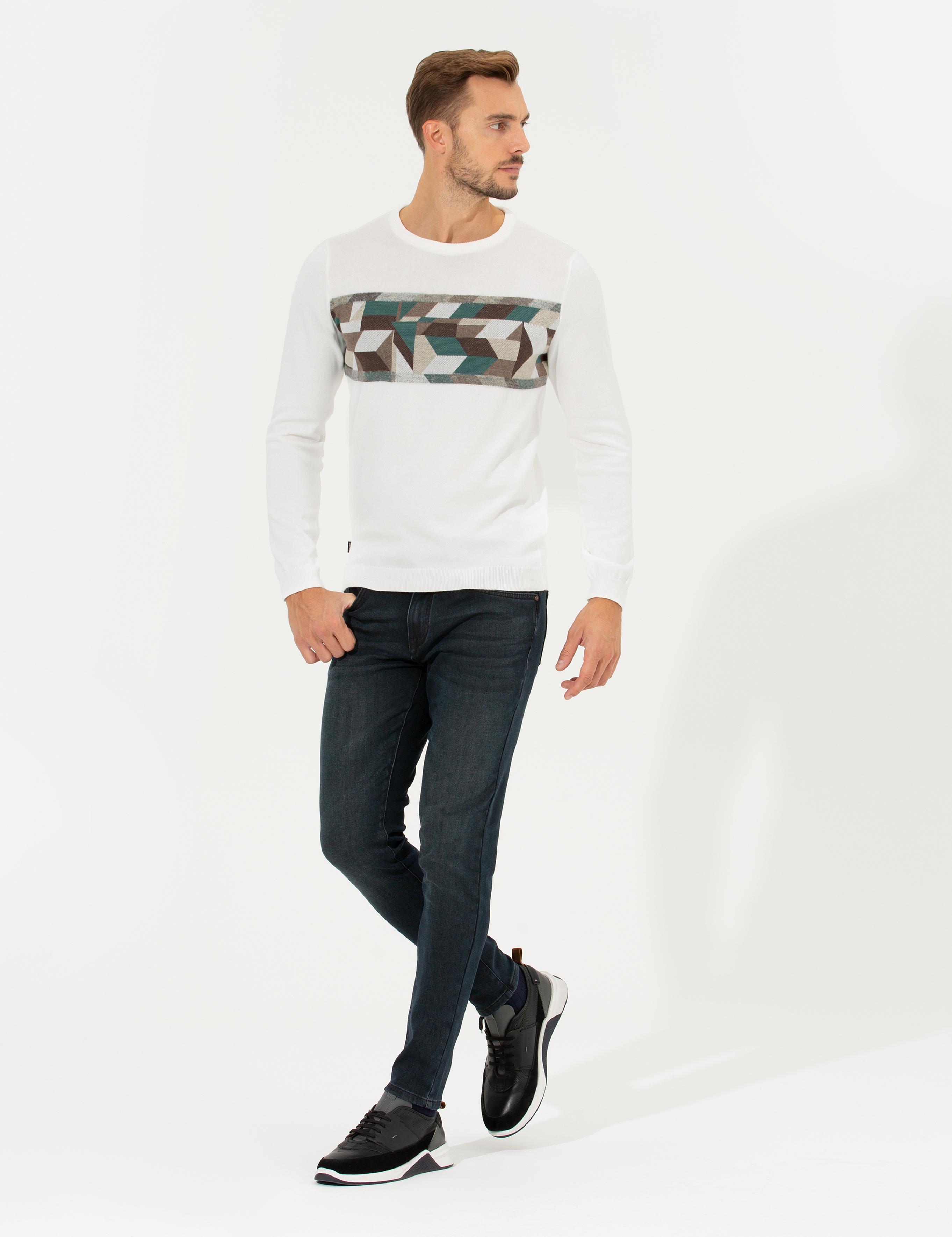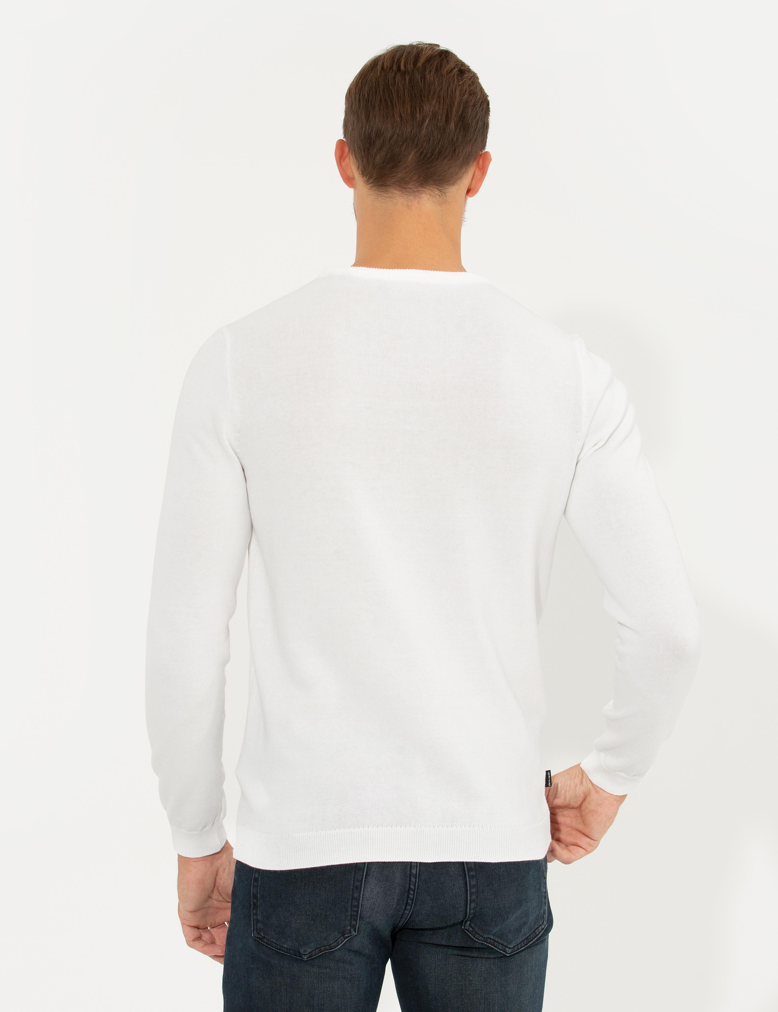 ژاکت بافتنی یقه گرد اسلیم فیت سفید مایل به کرم پیر کاردین
