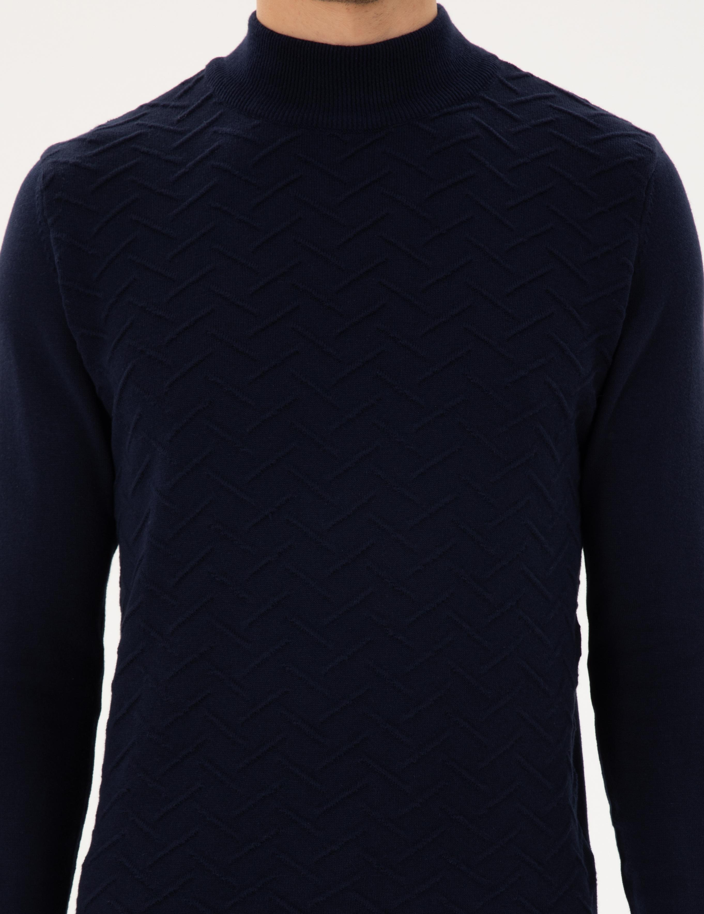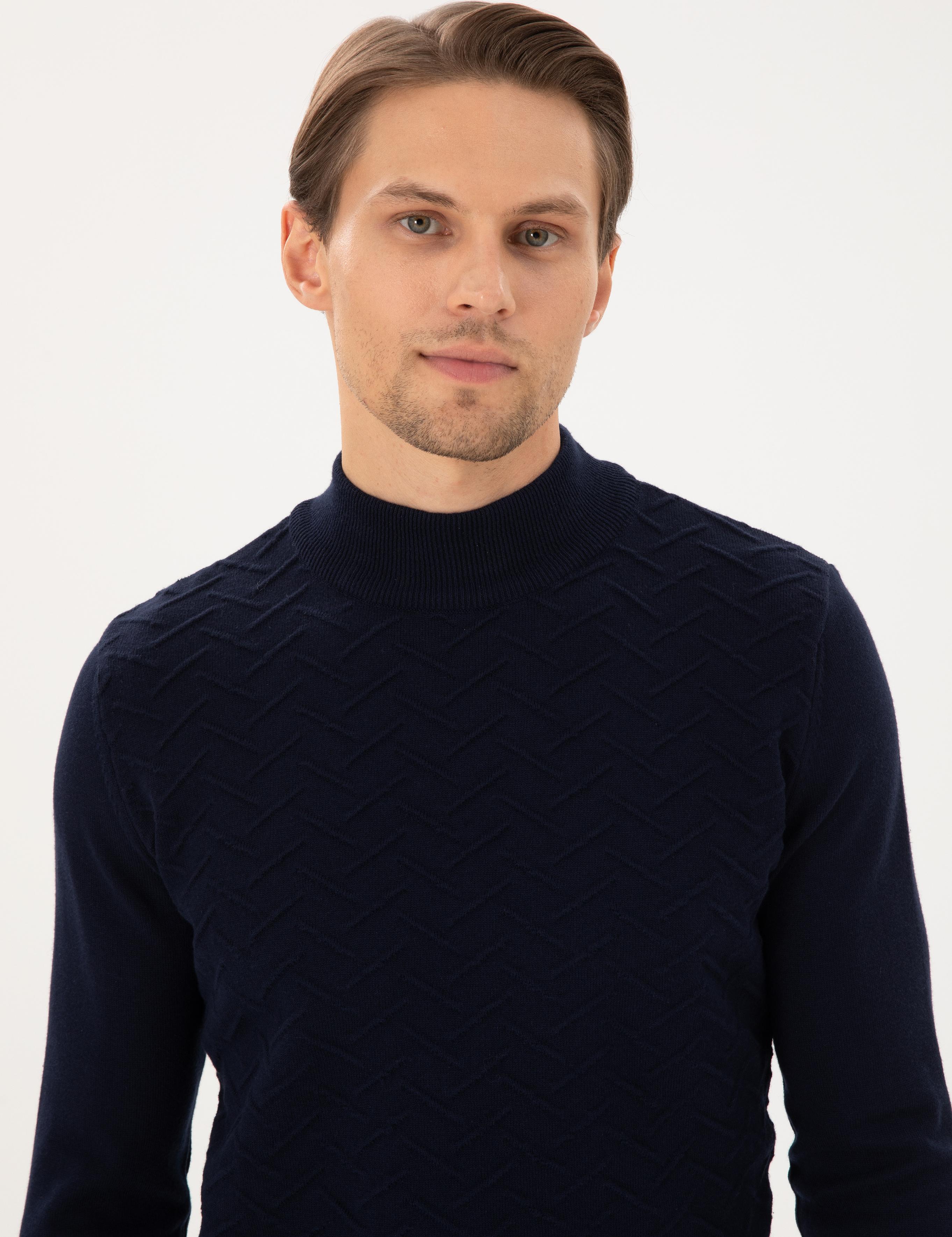 ژاکت بافتنی یقه اسکی مدل اسلیم فیت سرمهای پیر کاردین