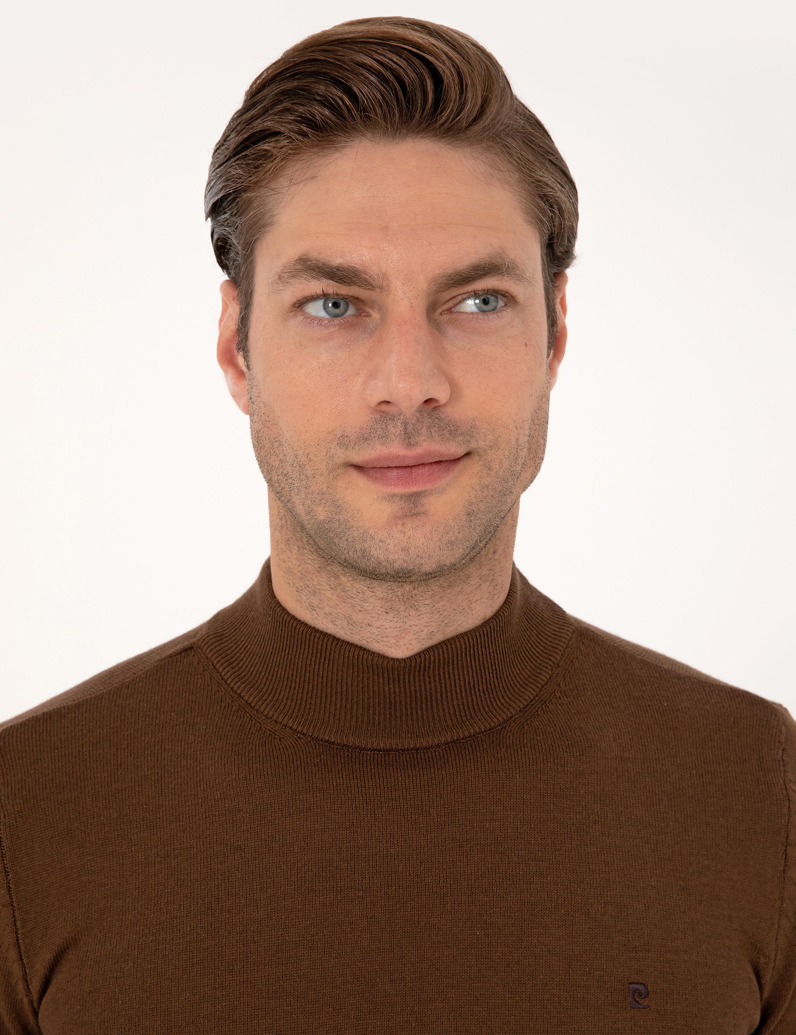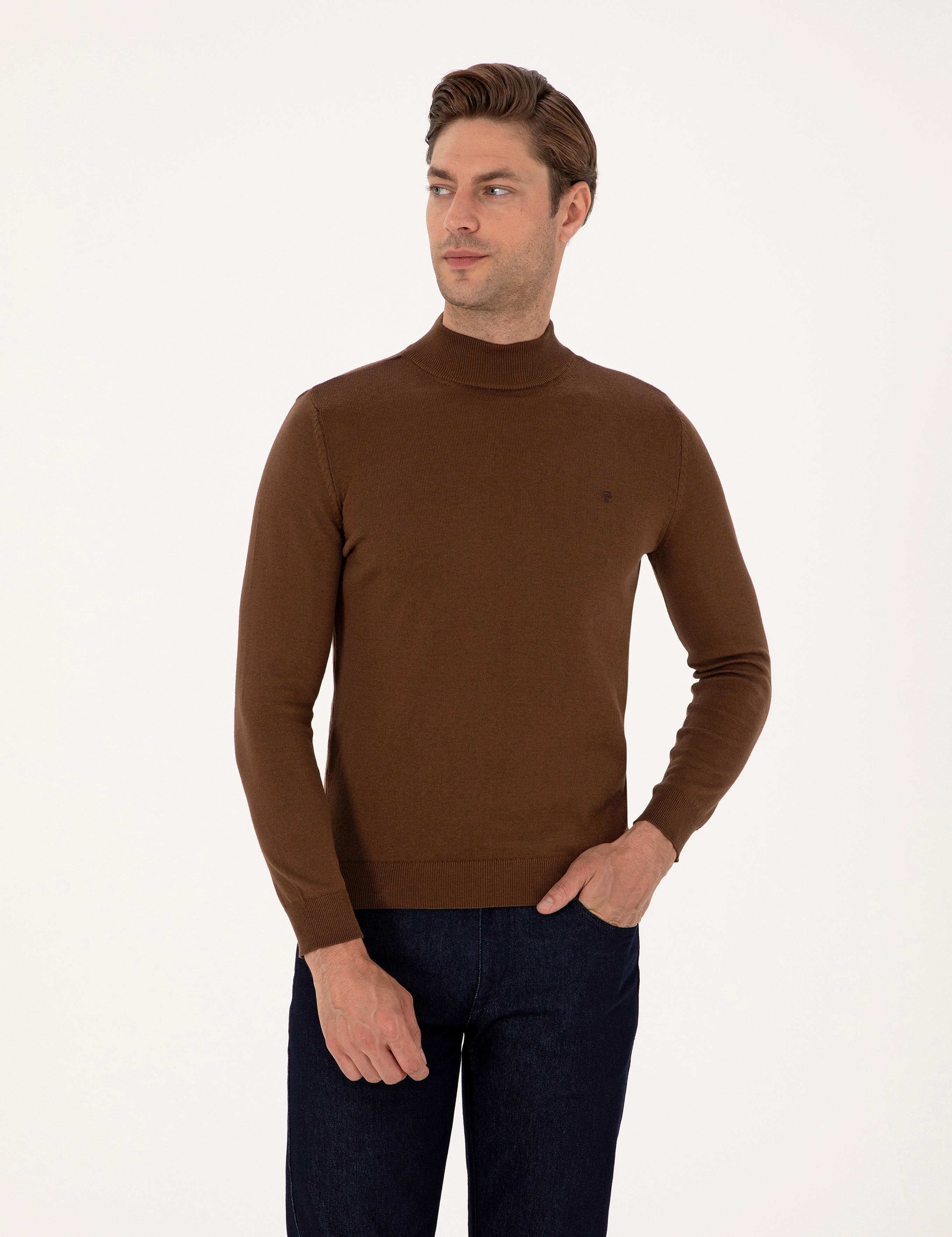 ژاکت بافتنی یقه اسکی قهوه‌ای تیره اسلیم فیت پیر کاردین
