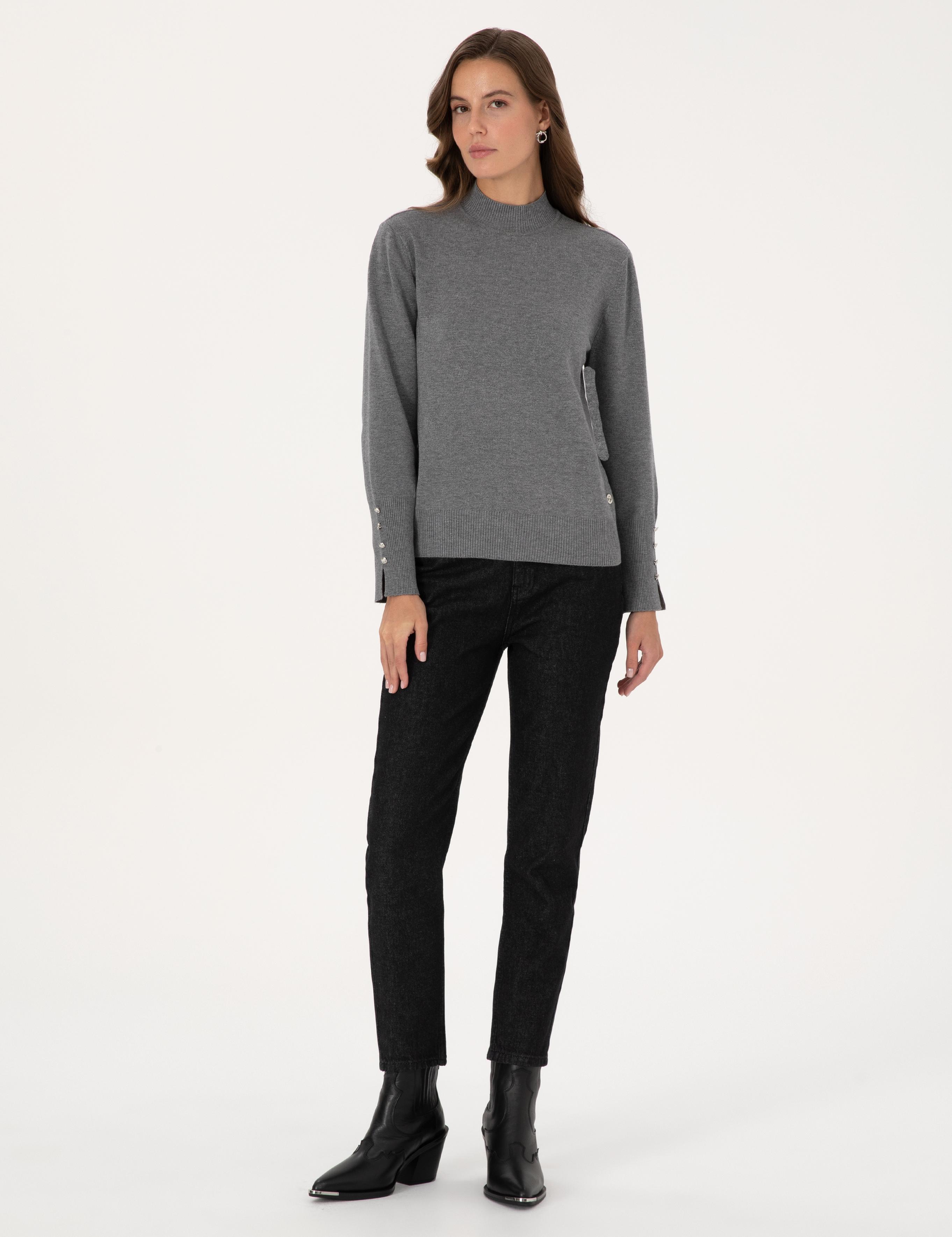 ژاکت بافتنی یقه اسکی ساده خاکستری ملانژ اسلیم فیت پیر کاردین