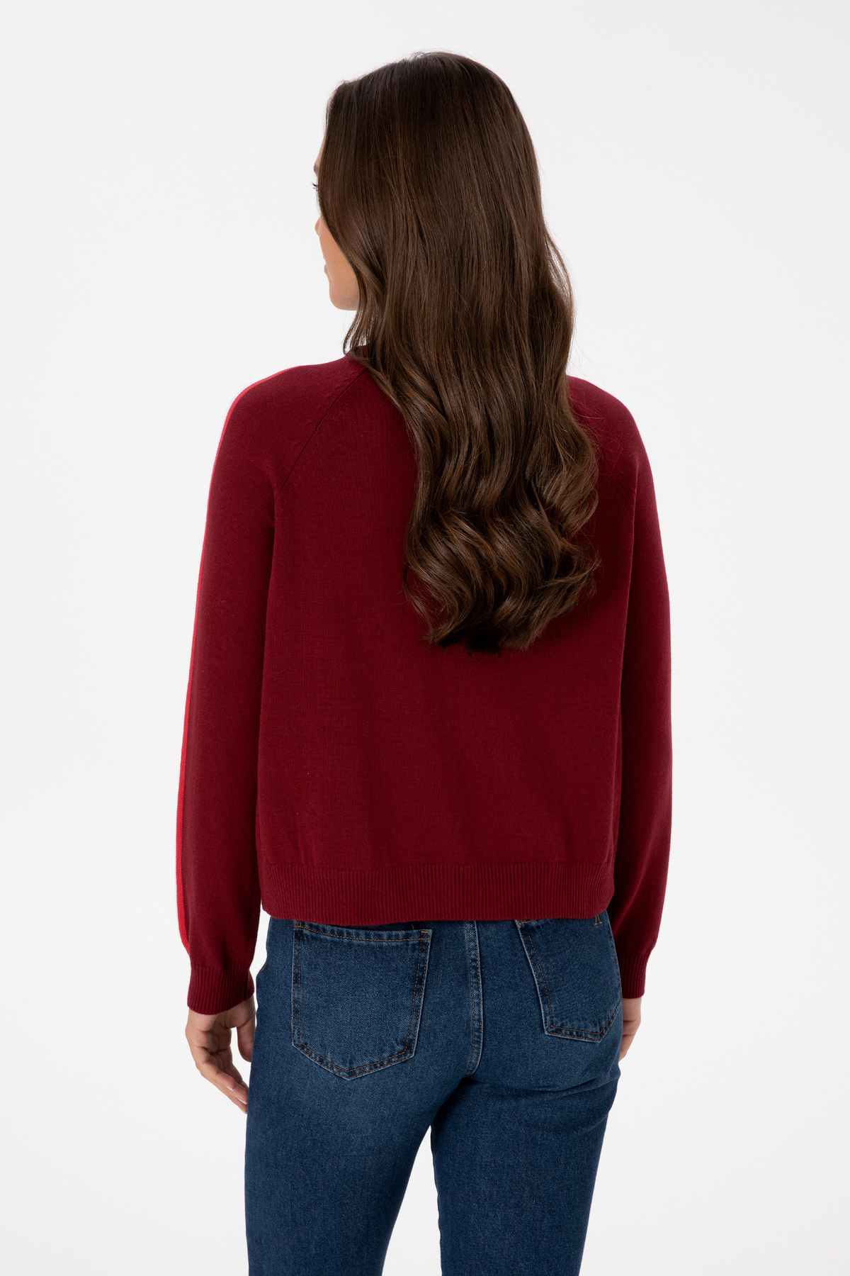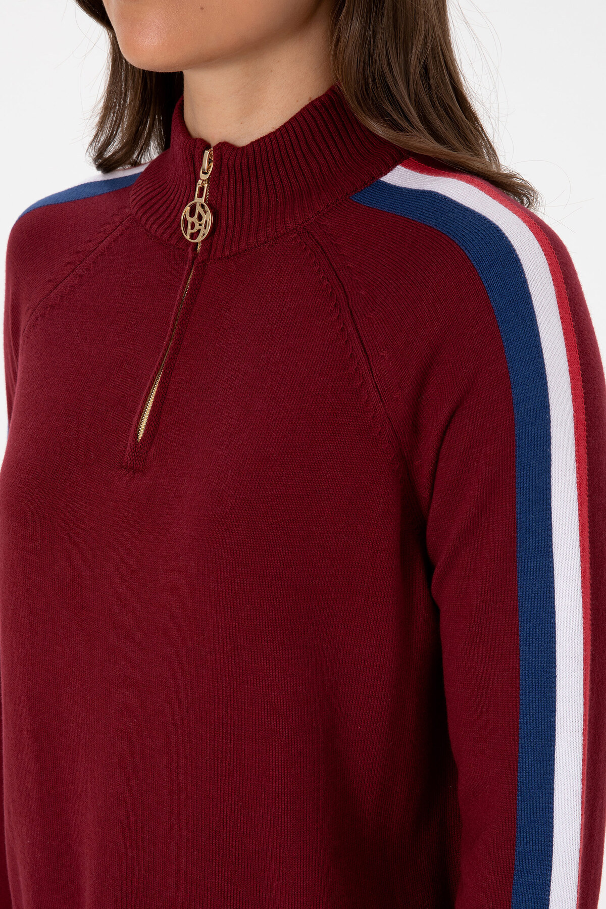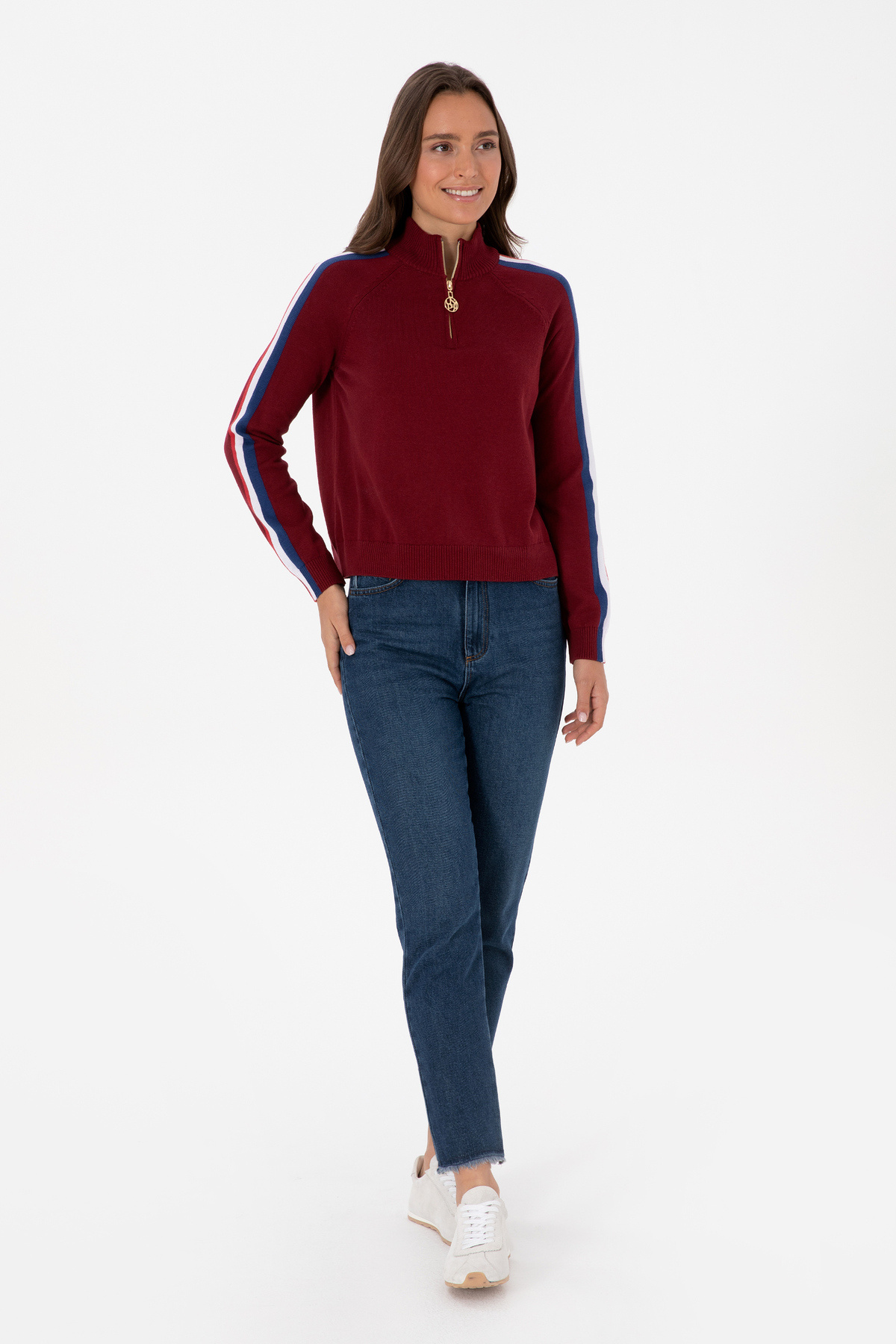 ژاکت زیپدار زنانه یقه هفت زرشکی یو اس پولو کد :(50314691-VR014)