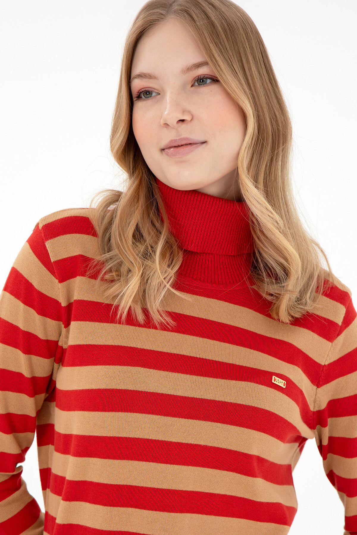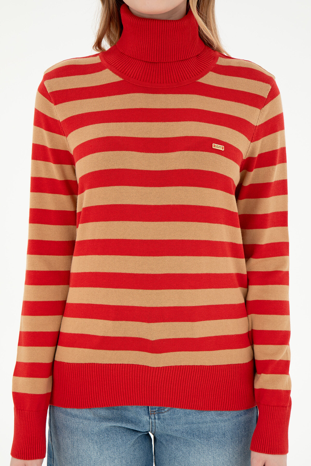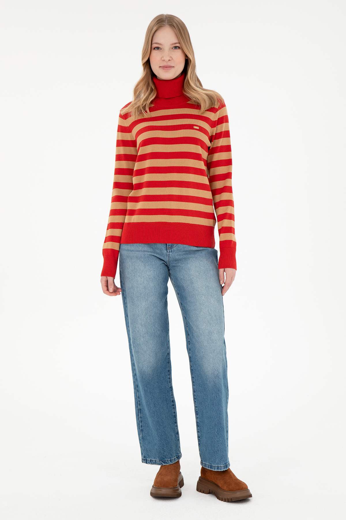 ژاکت یقه اسکی آجری زنانه یو اس پولو کد :(50292880-VR031)