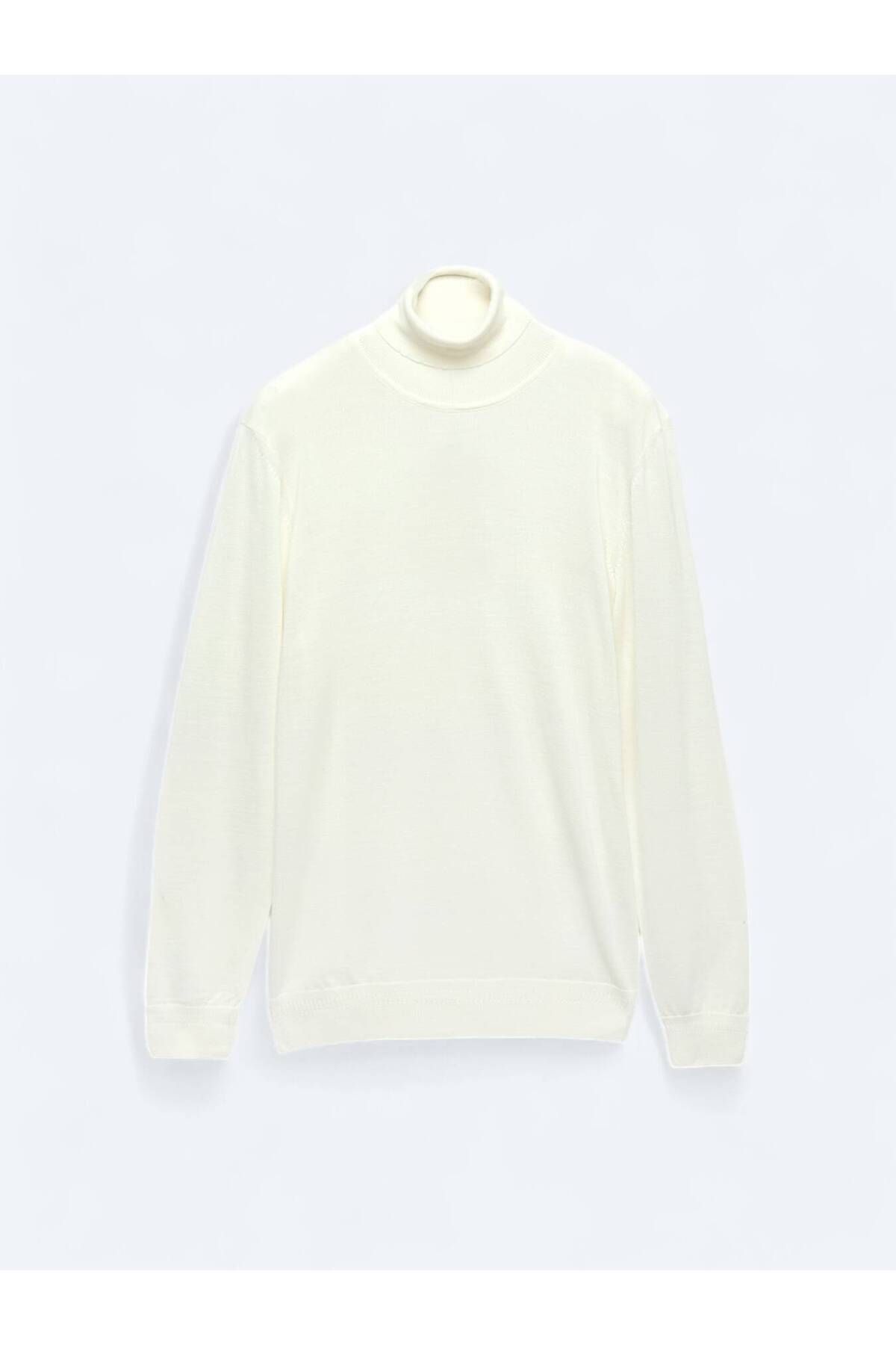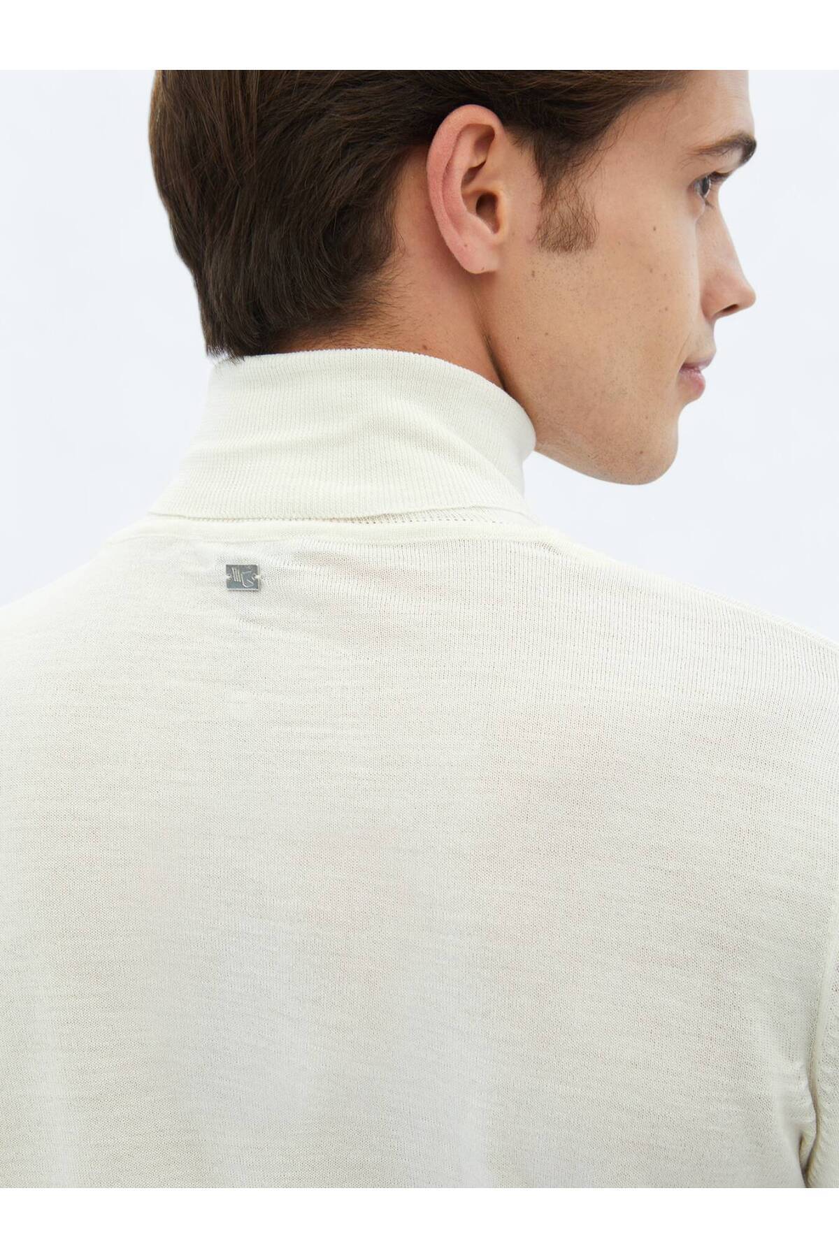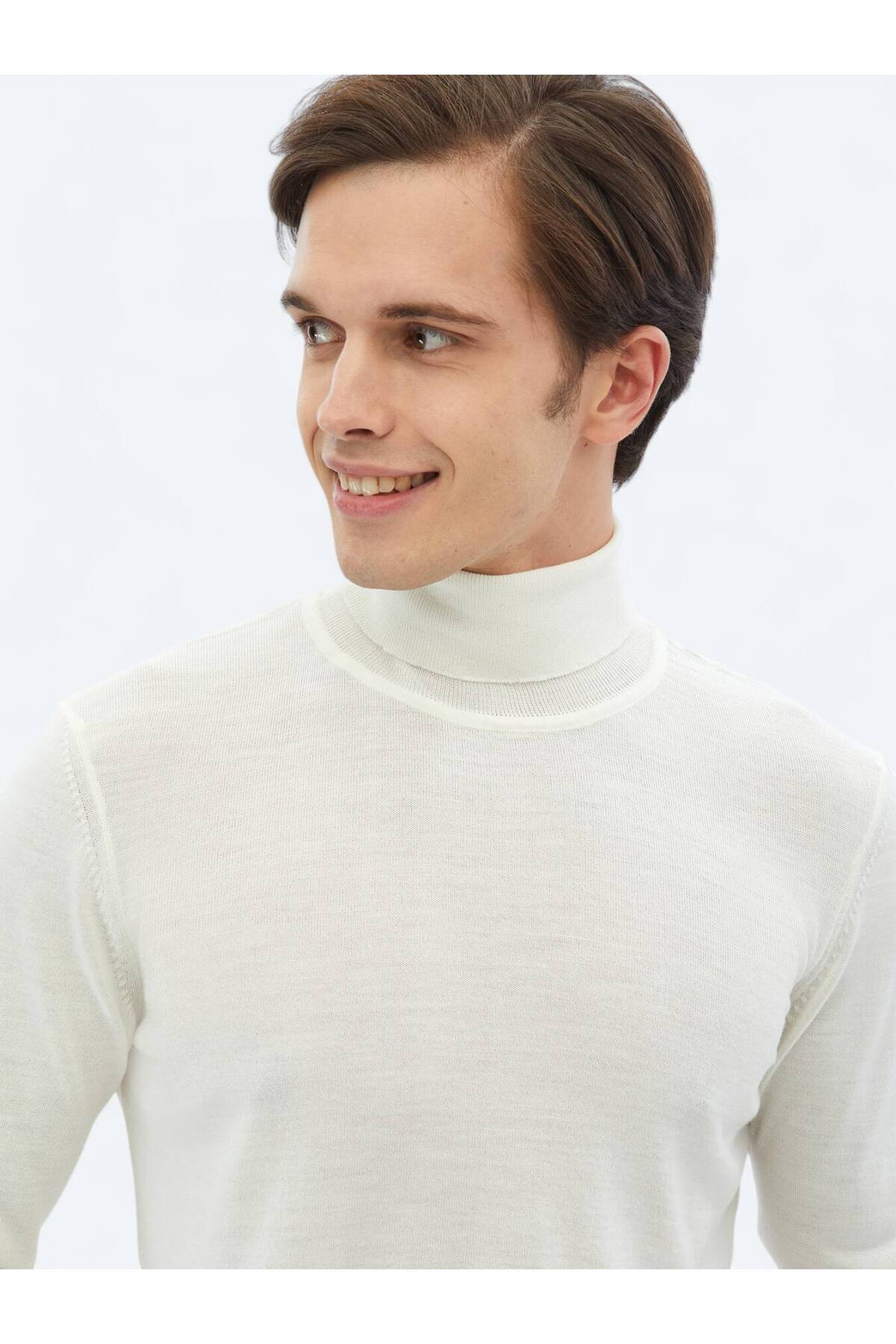 پلیور پشمی ترکیبی ساده و یقه اسکی تمام سفید.