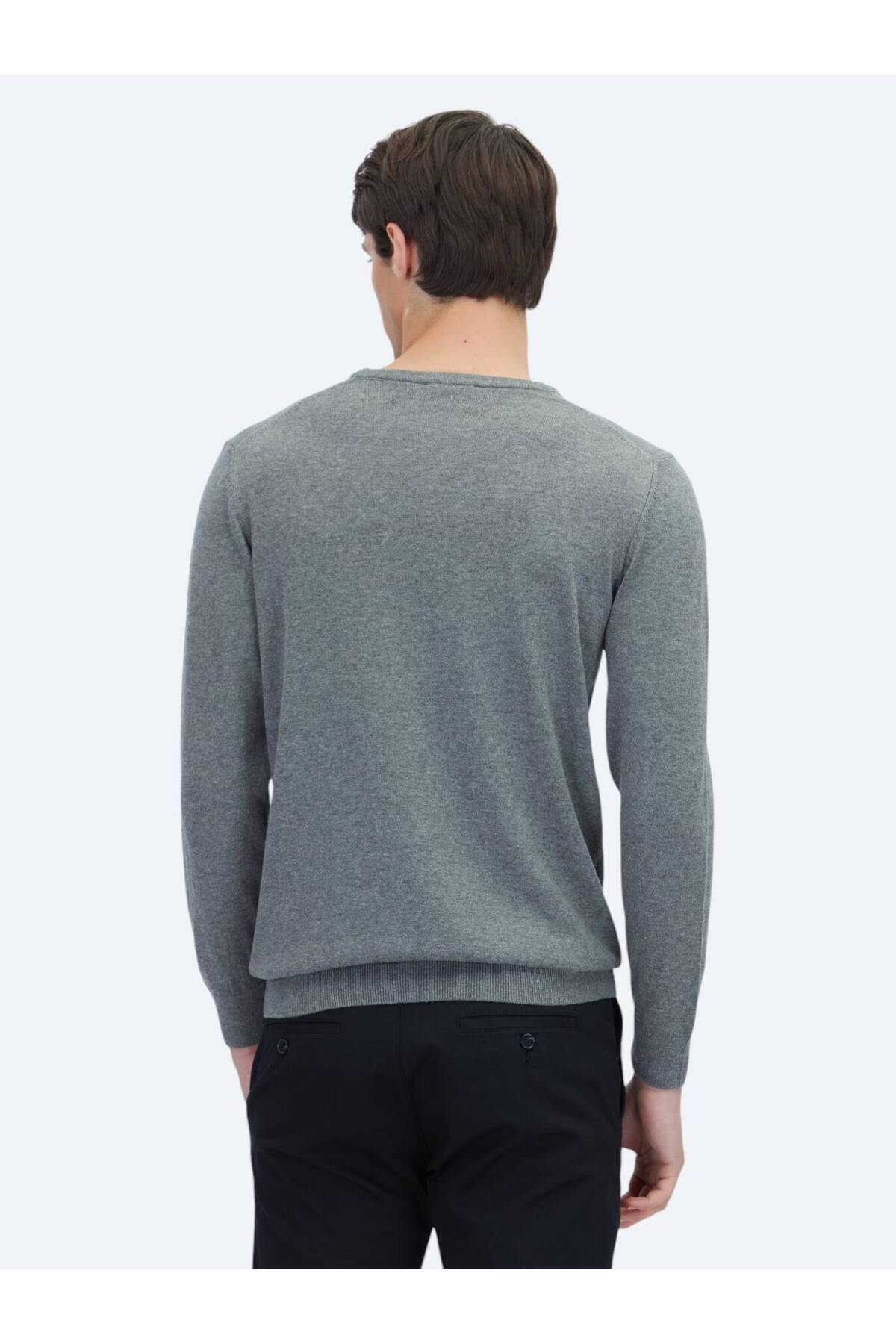 ژاکت بافتنی نخی یقه گرد خاکستری