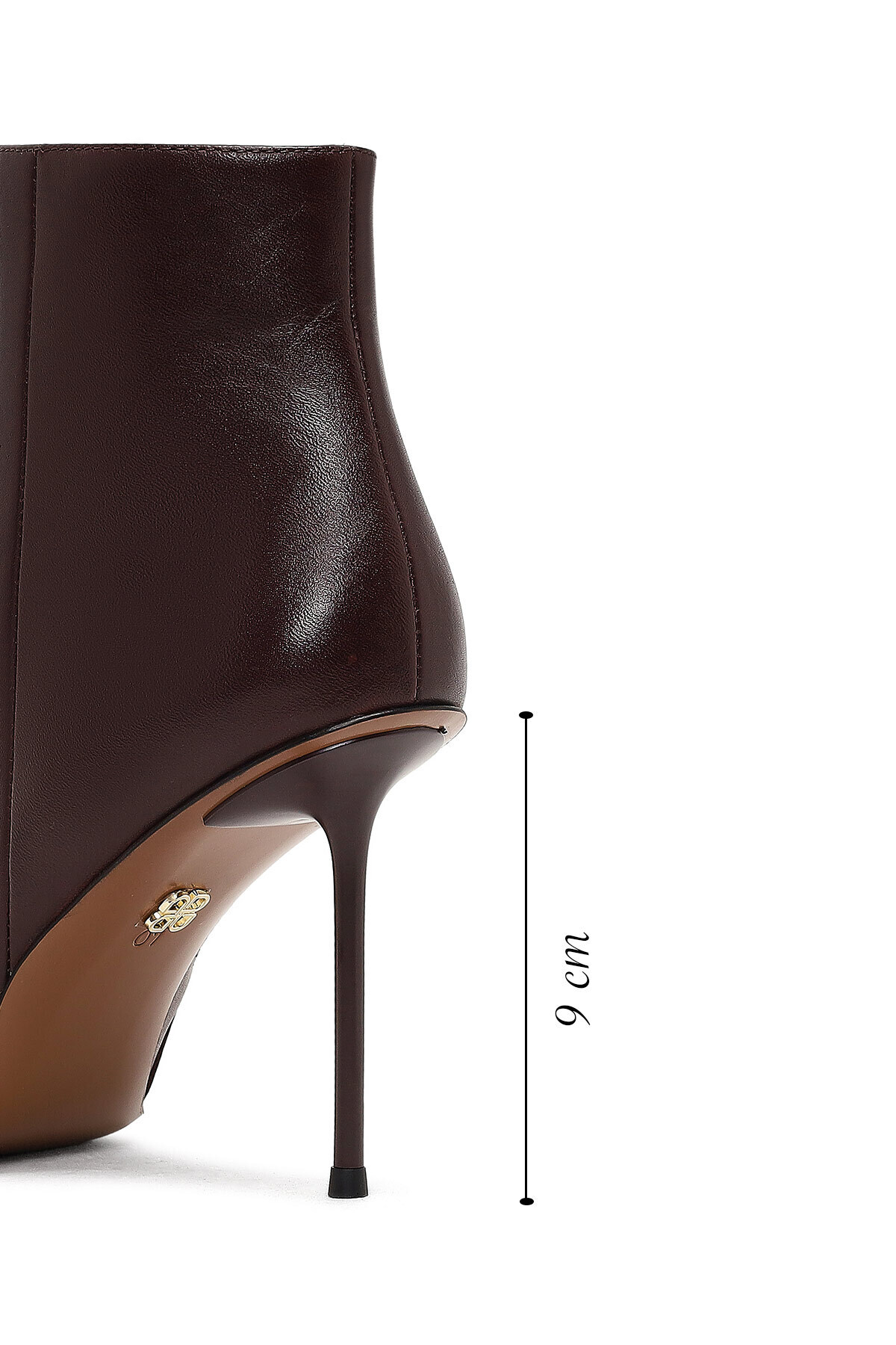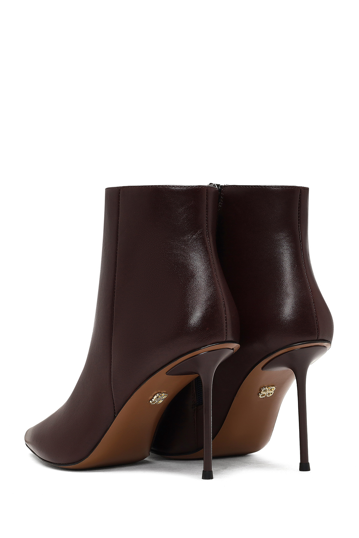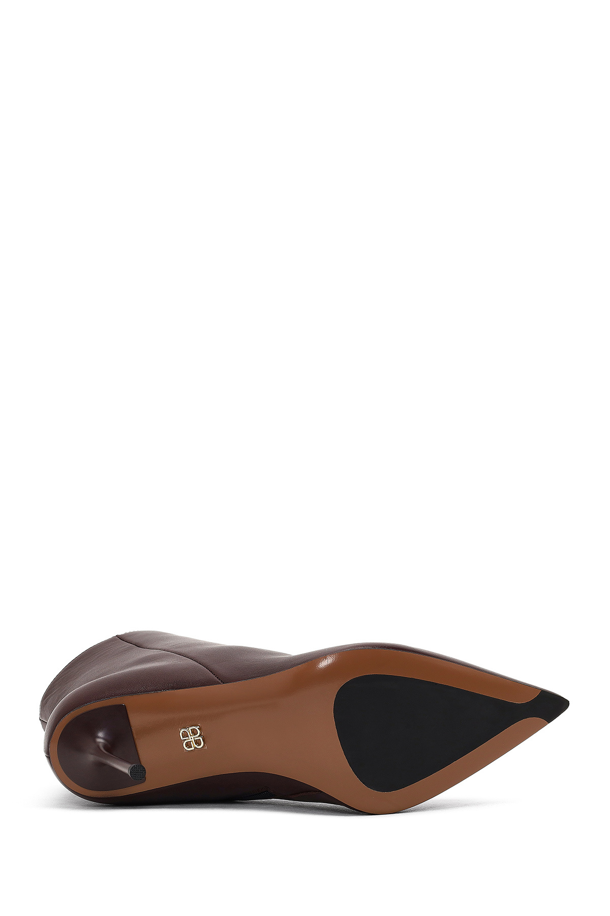 چکمه چرمی زنانه پاشنه باریک زرشکی زیپدار. ساخته شده از چرم گاو.
