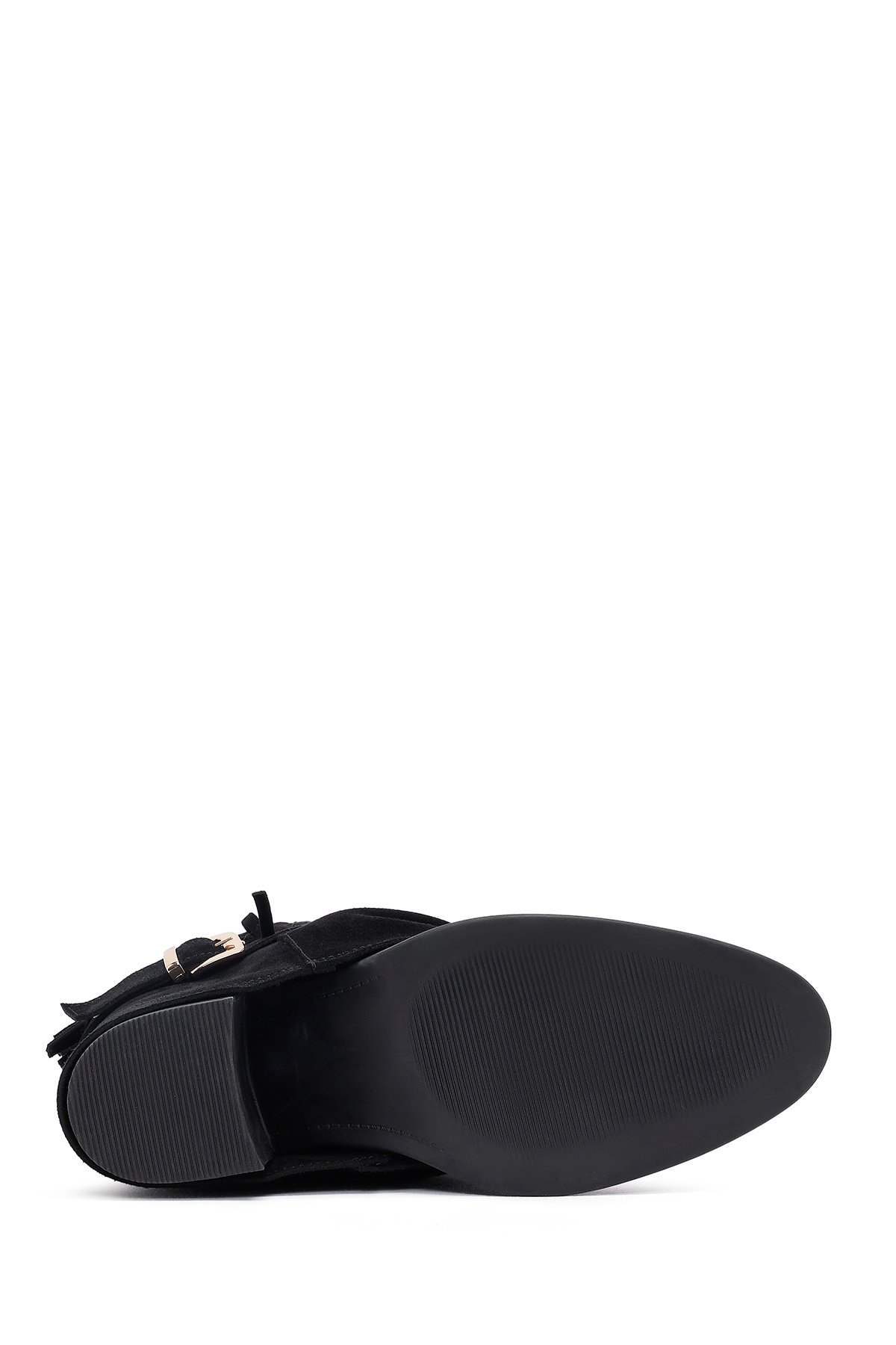 چکمه زنانه پاشنه بلند مشکی جیر چرم 25AFD221310
