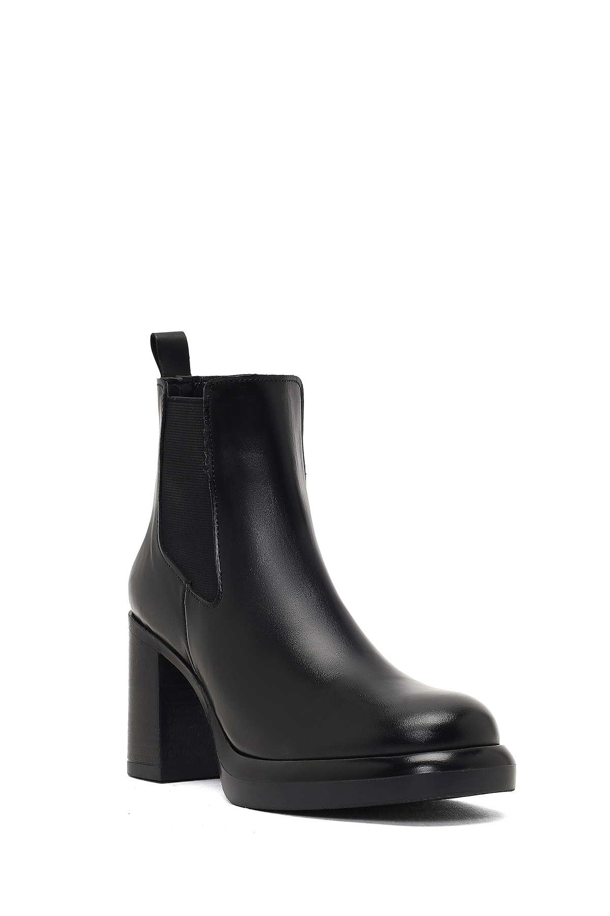 چکمههای چرمی زنانه پاشنه بلند مشکی چلسی مدل 25WFD188318