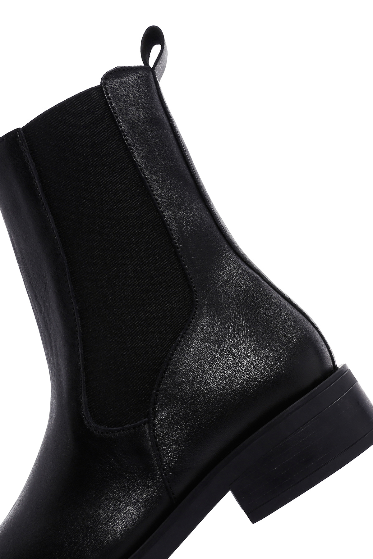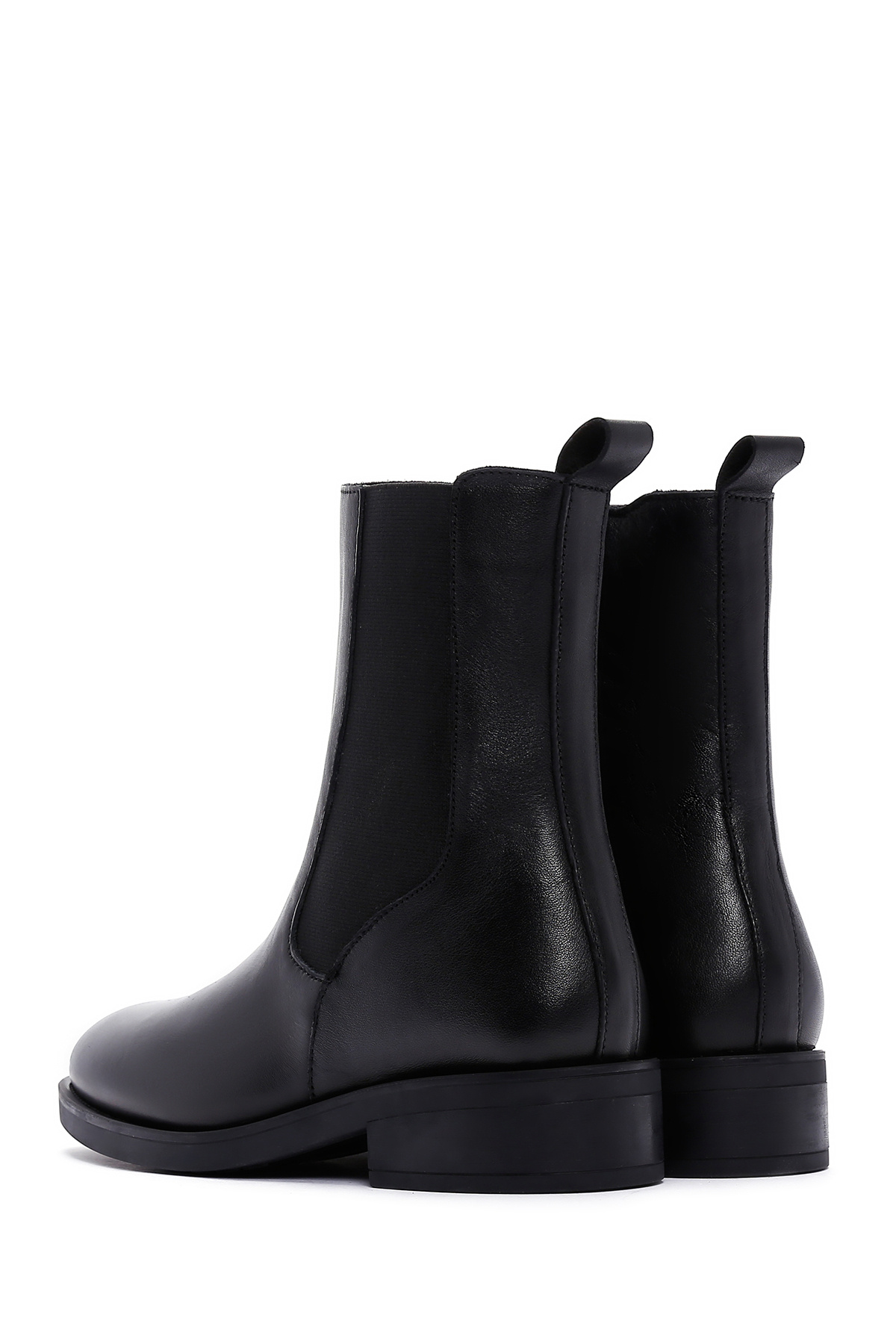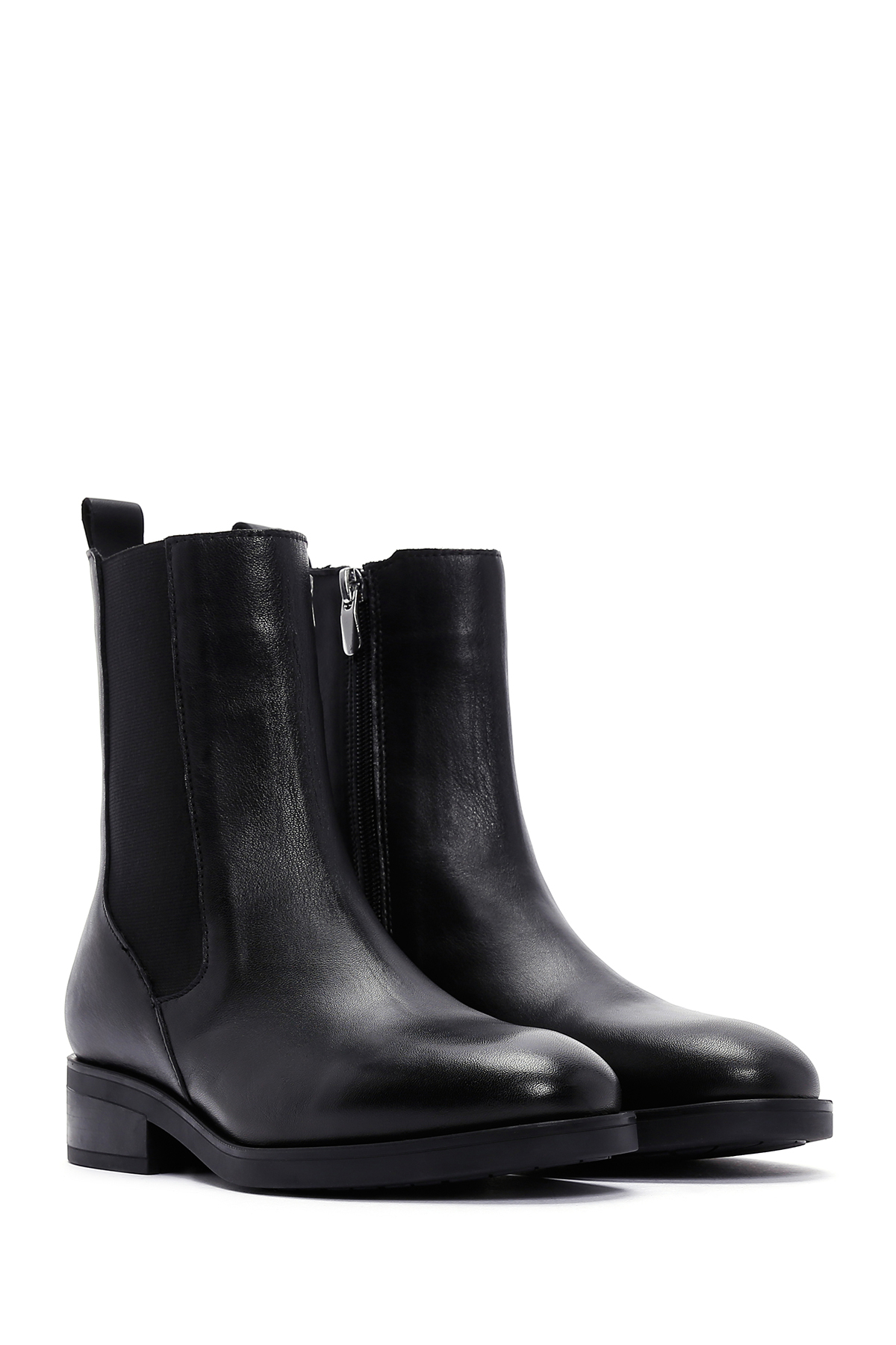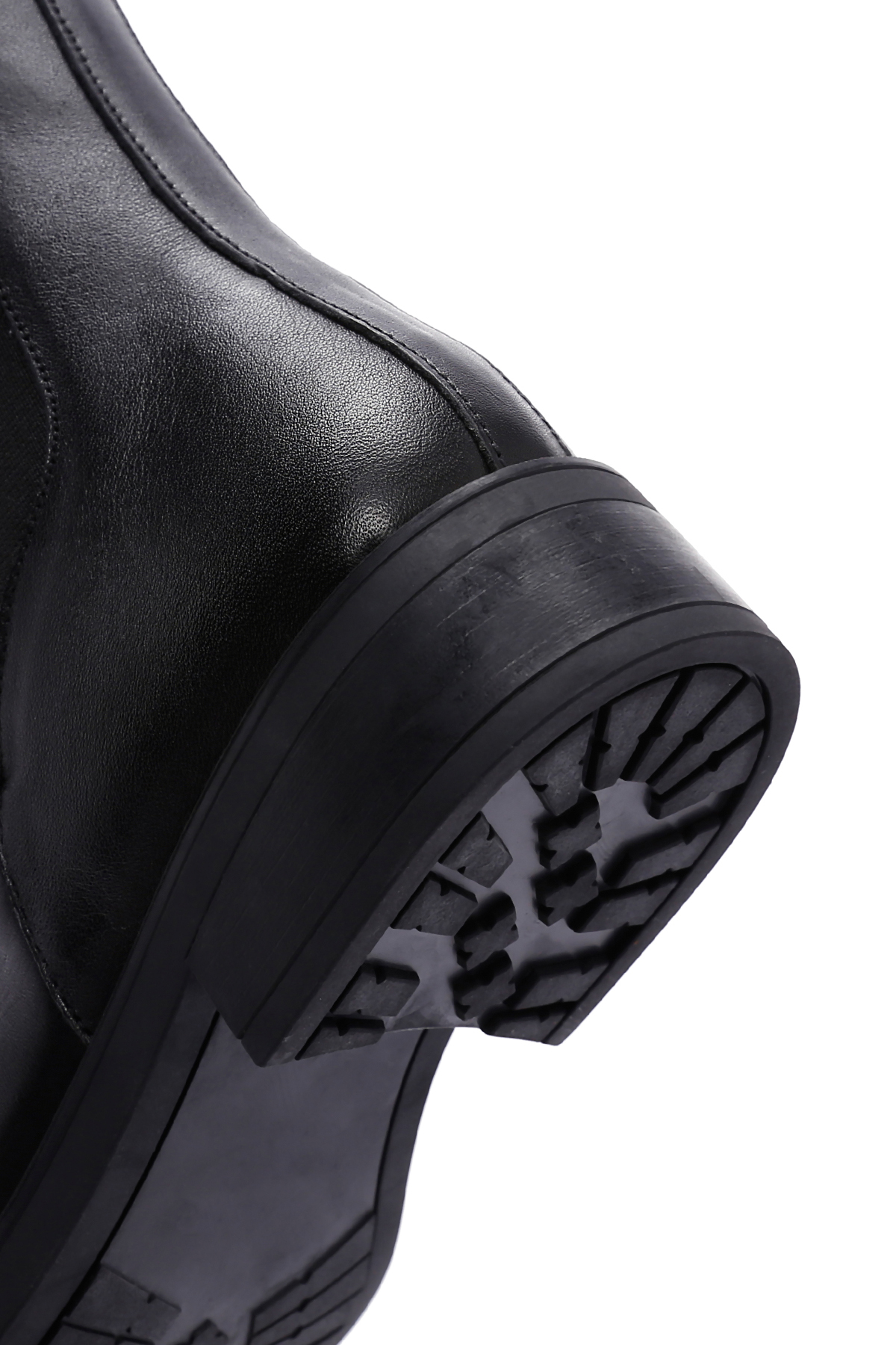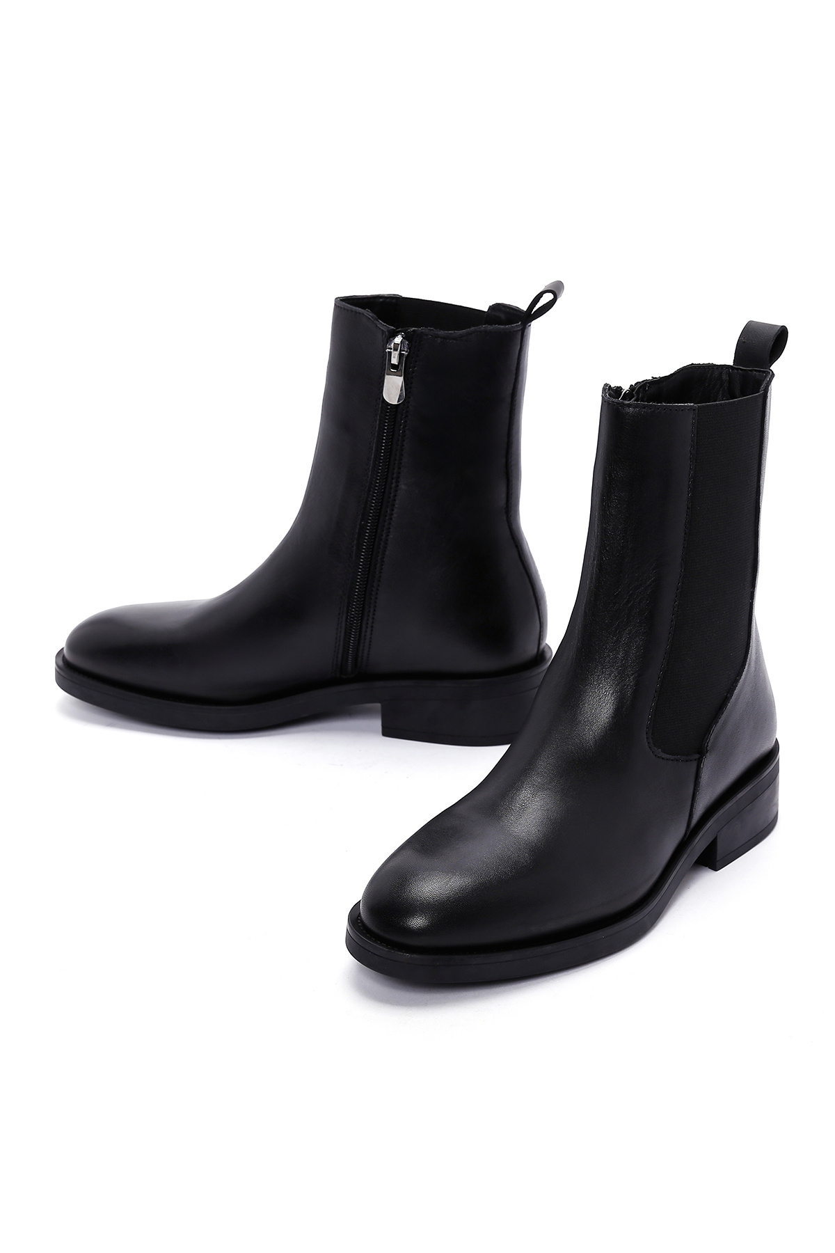 چکمه‌های راحتی زنانه چرم مشکی زیپ‌دار دارای چرم گاوی هستند.