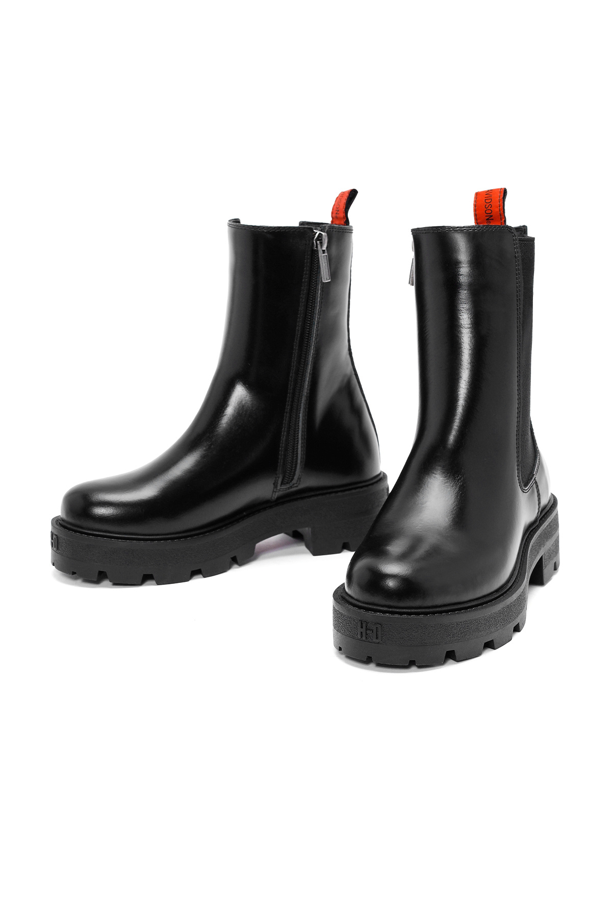 چکمه‌های چلسی زنانه هارلی دیویدسون با زیپ مشکی و چرم، دارای چرم گاوی هستند.