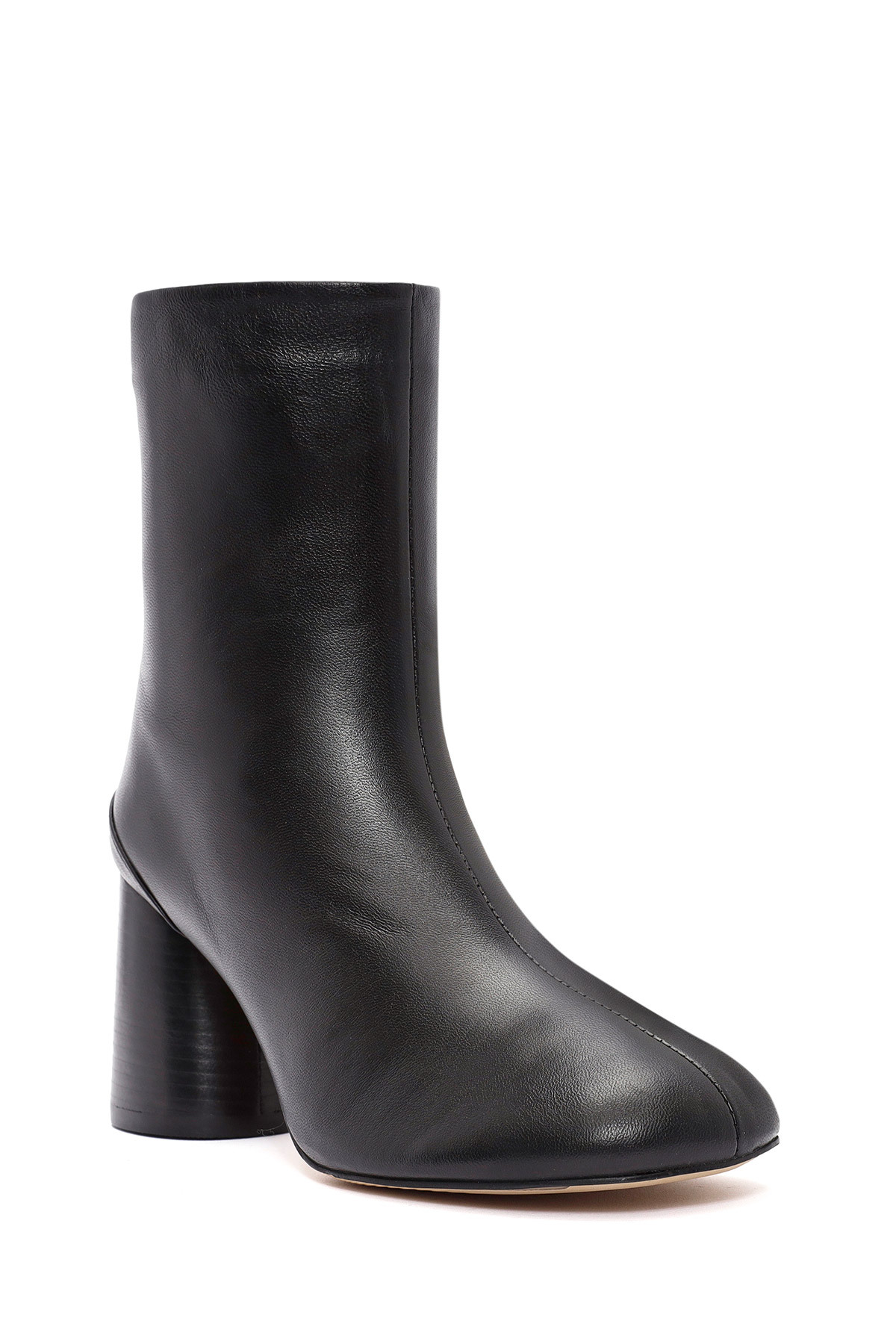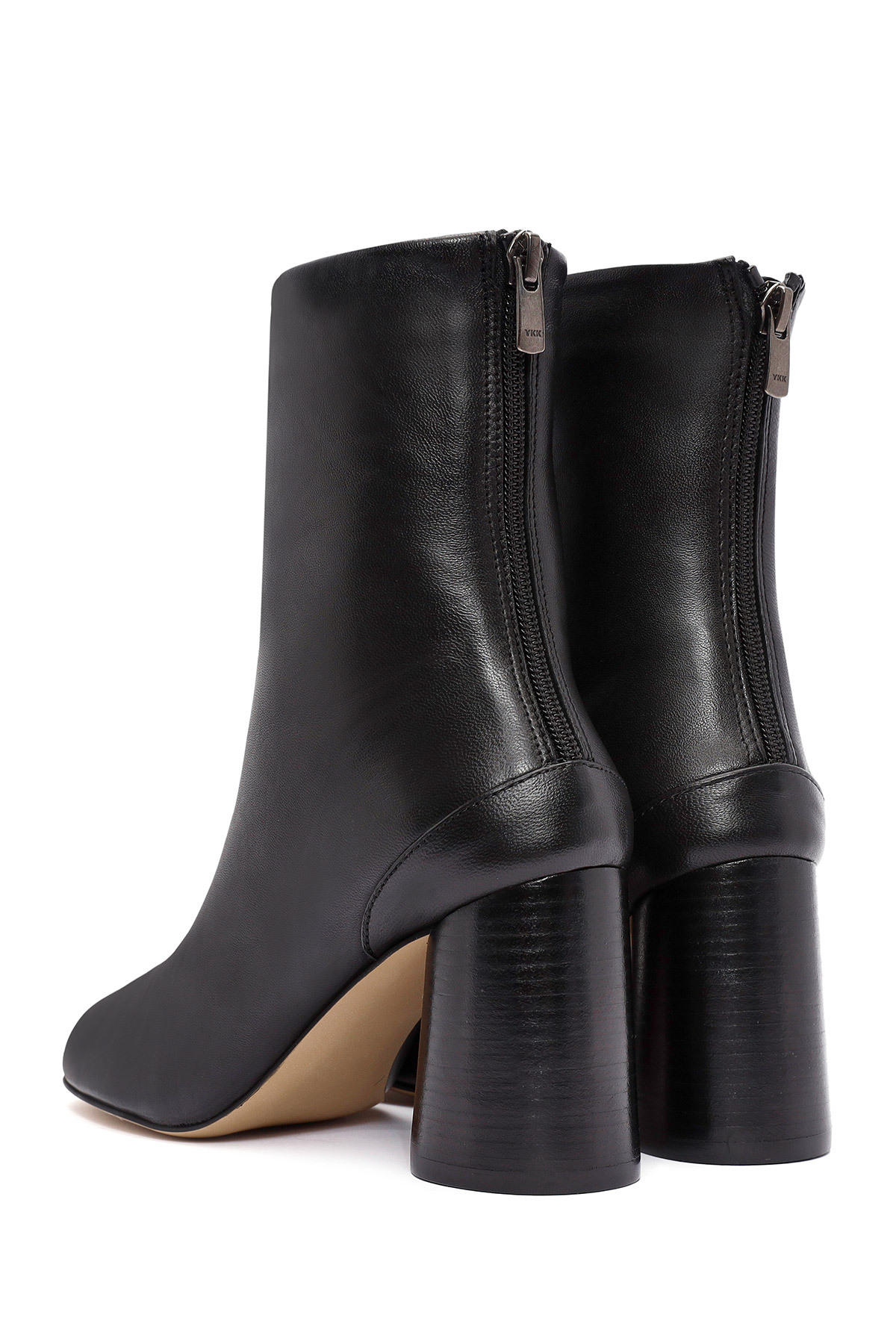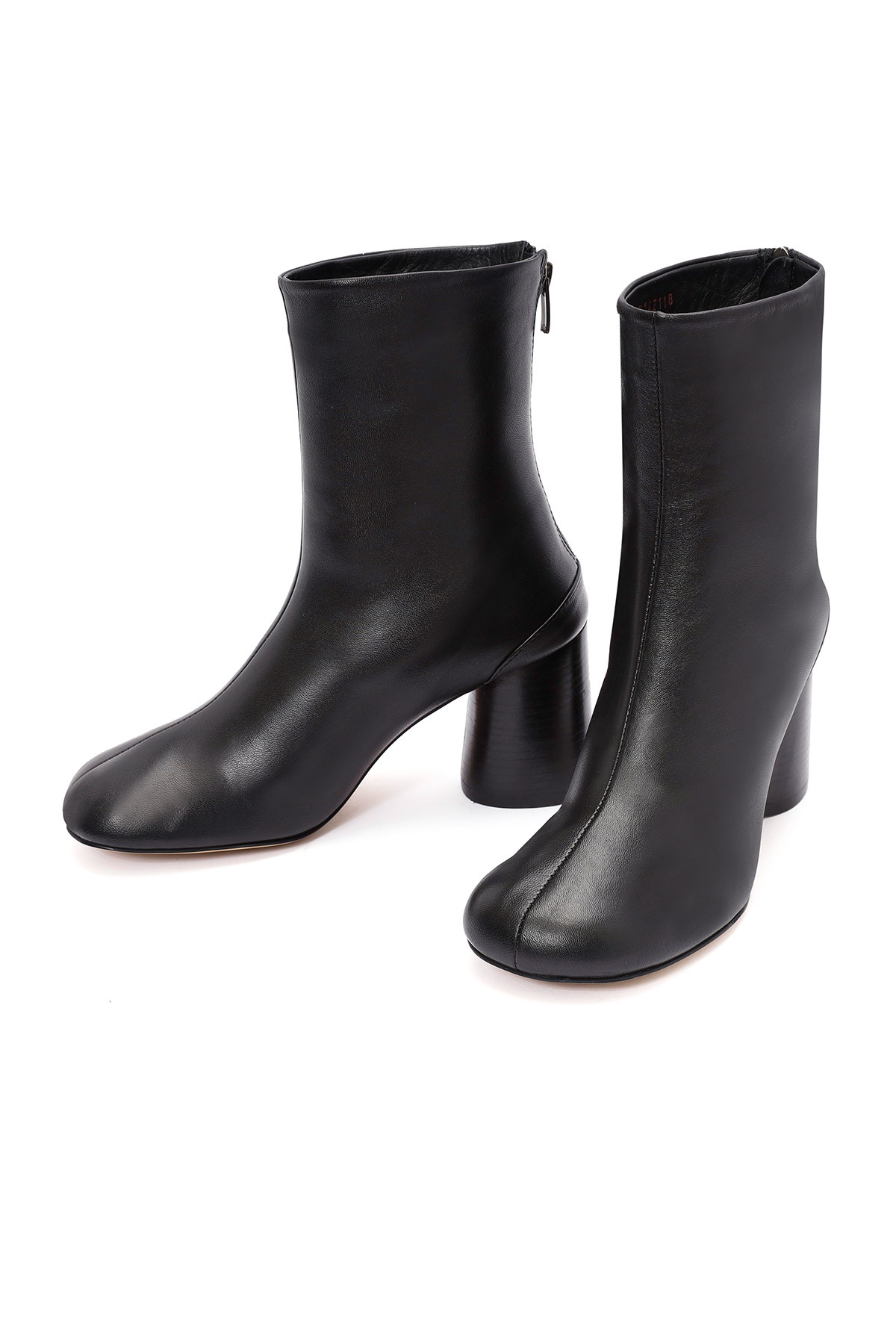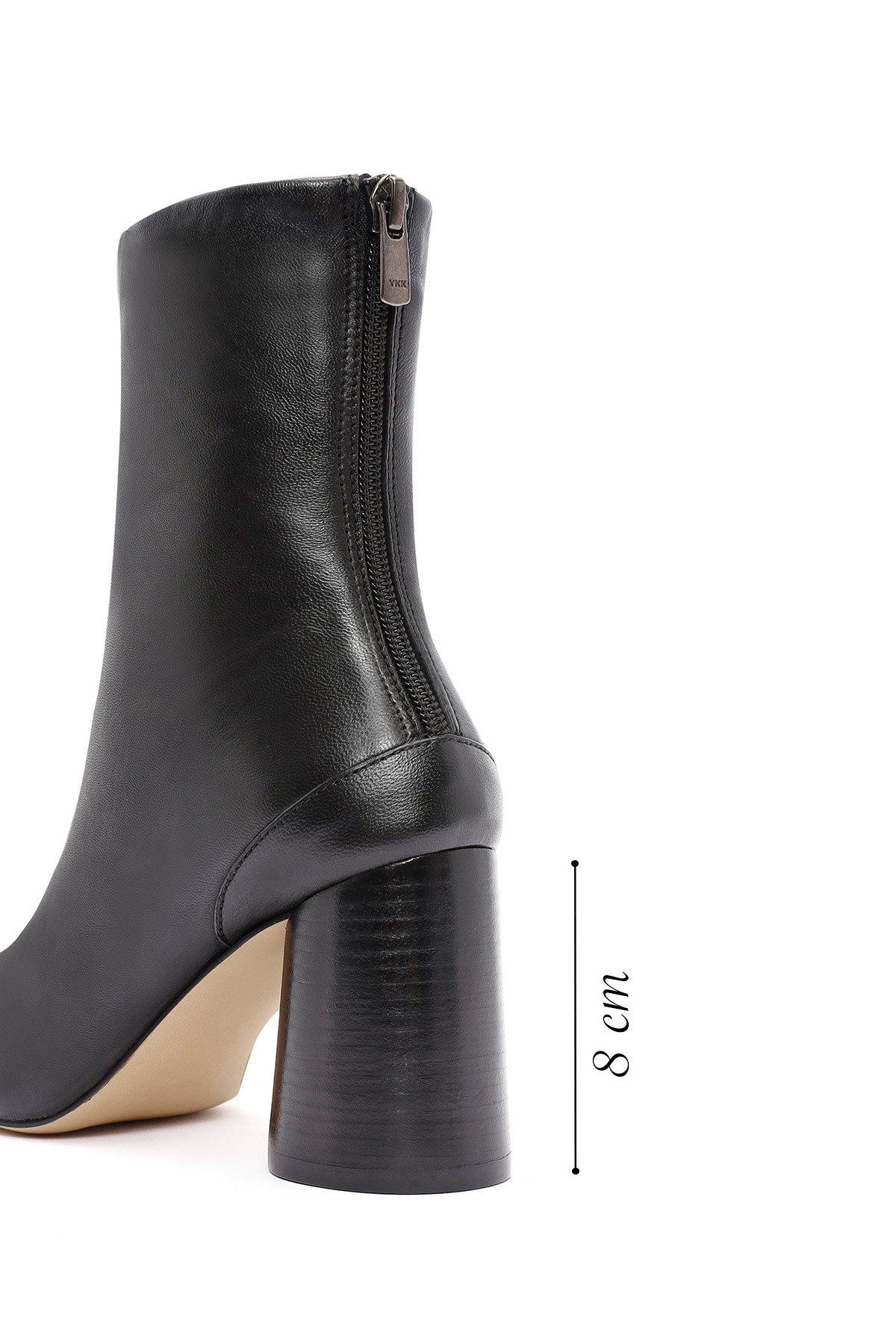 چکمه چرمی زنانه پاشنه بلند زیپدار مشکی، ساخته شده از چرم گاو.