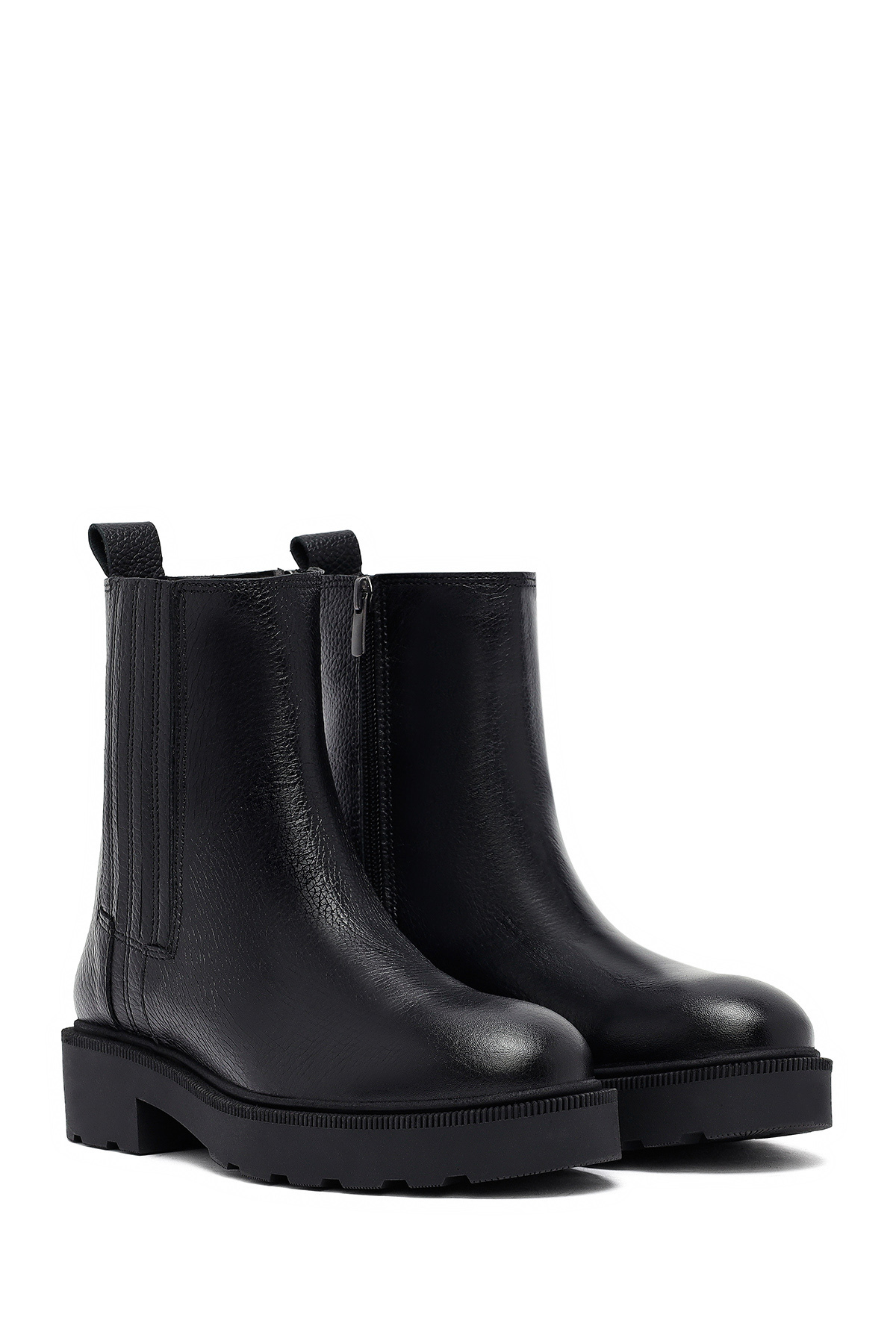 چکمههای چرمی زنانه مشکی زیپدار با کفی ضخیم، کد ۲۵WFD۱۸۷۷FT