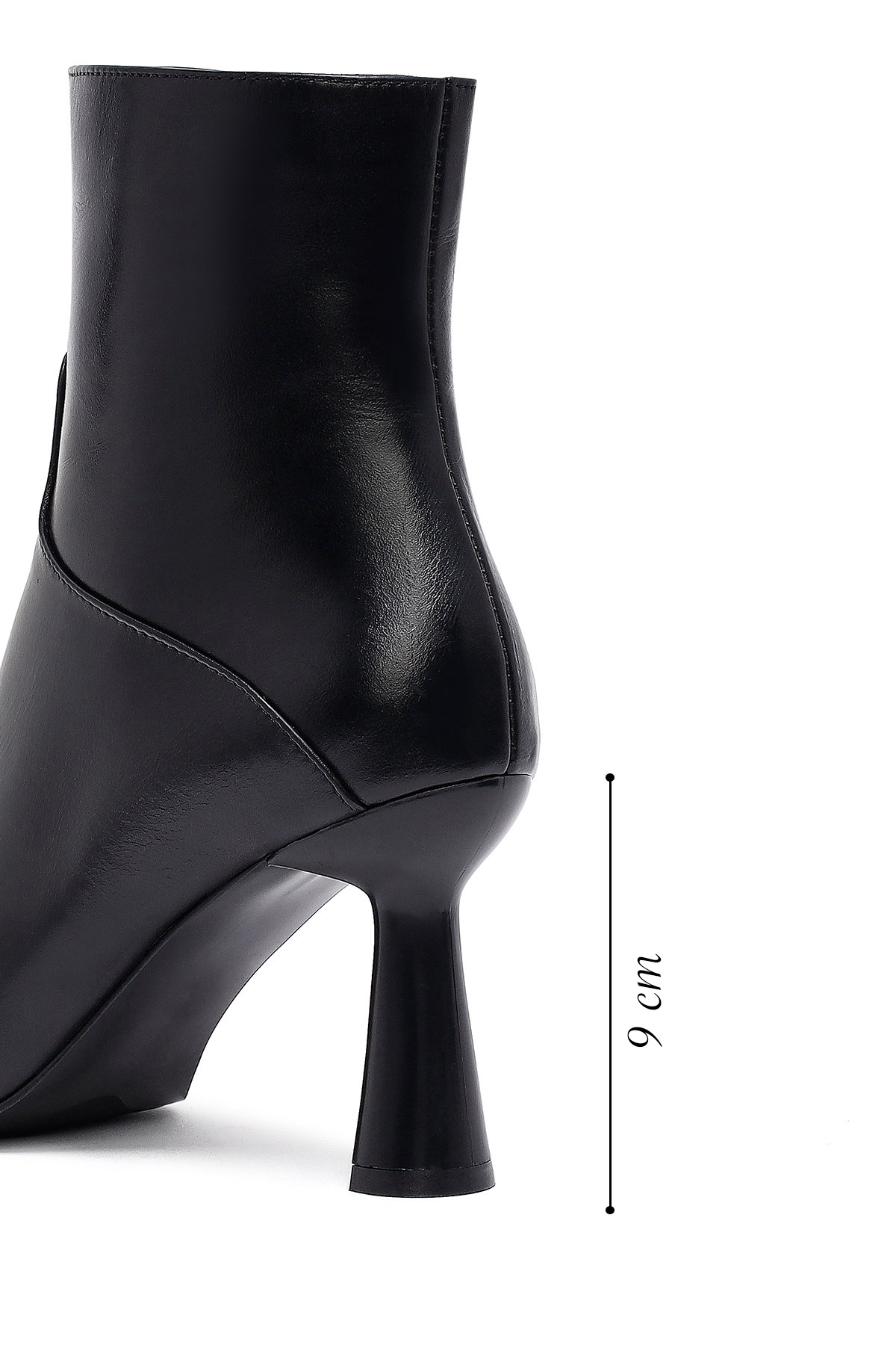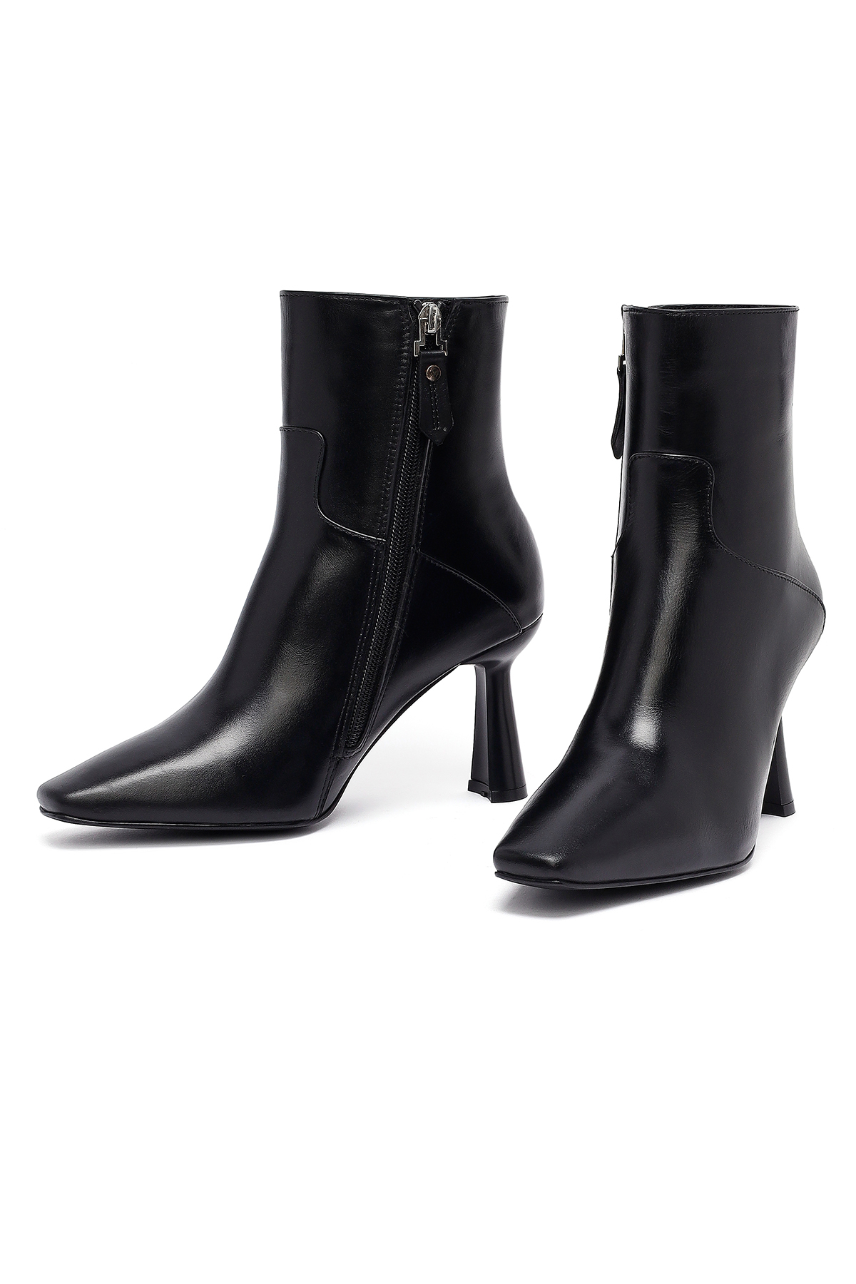 چکمههای چرمی پاشنهدار مشکی زنانه زیپدار، دارای چرم گاوی هستند.