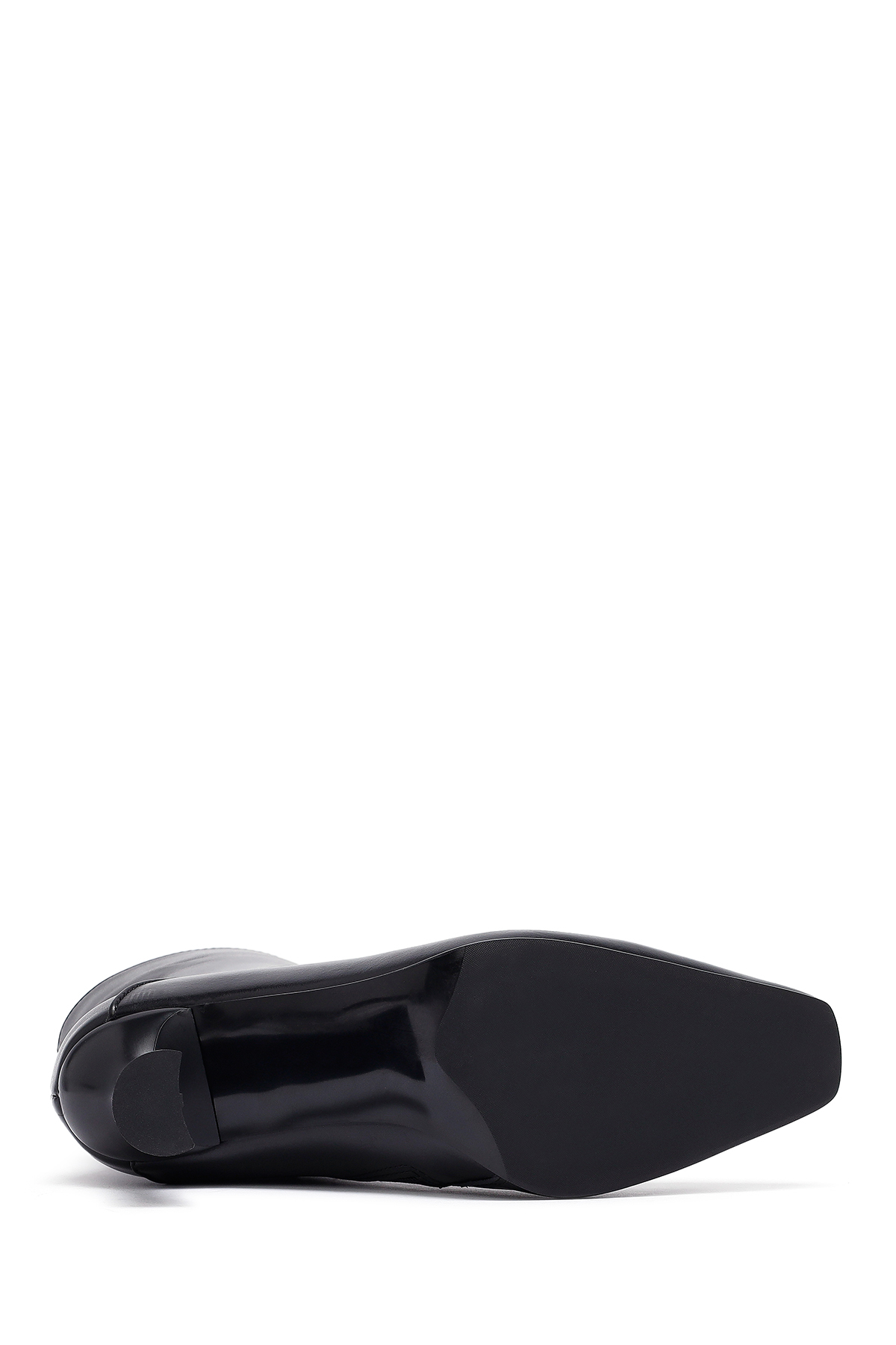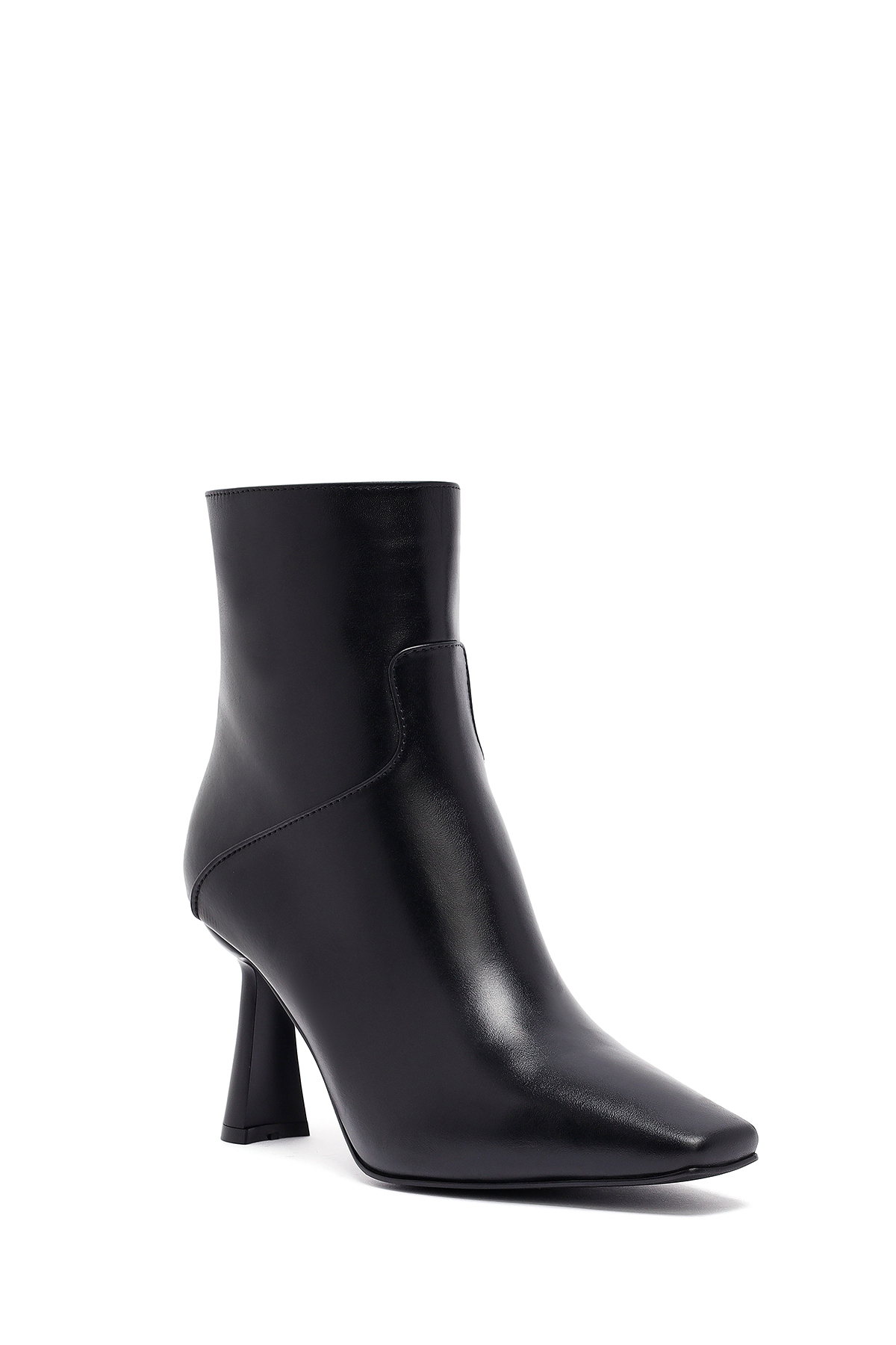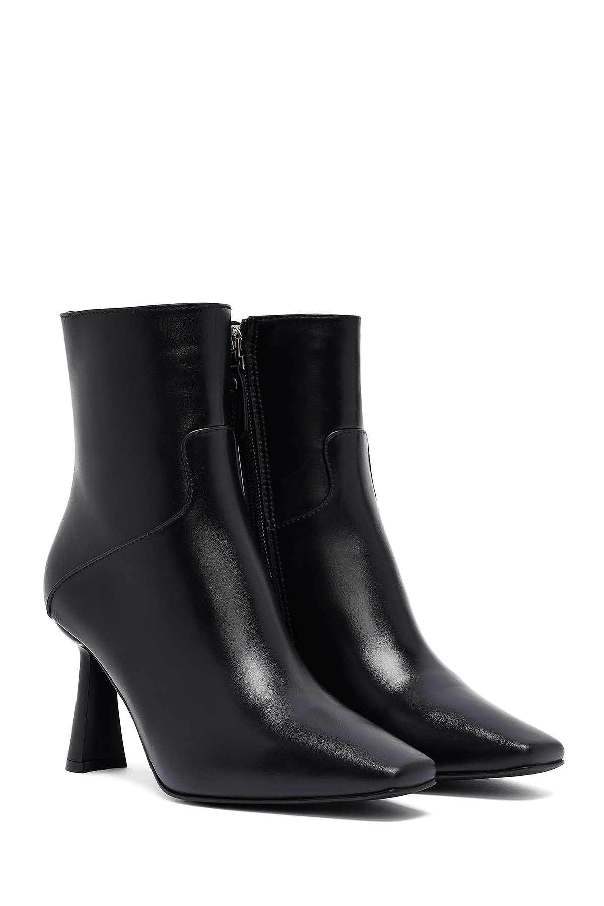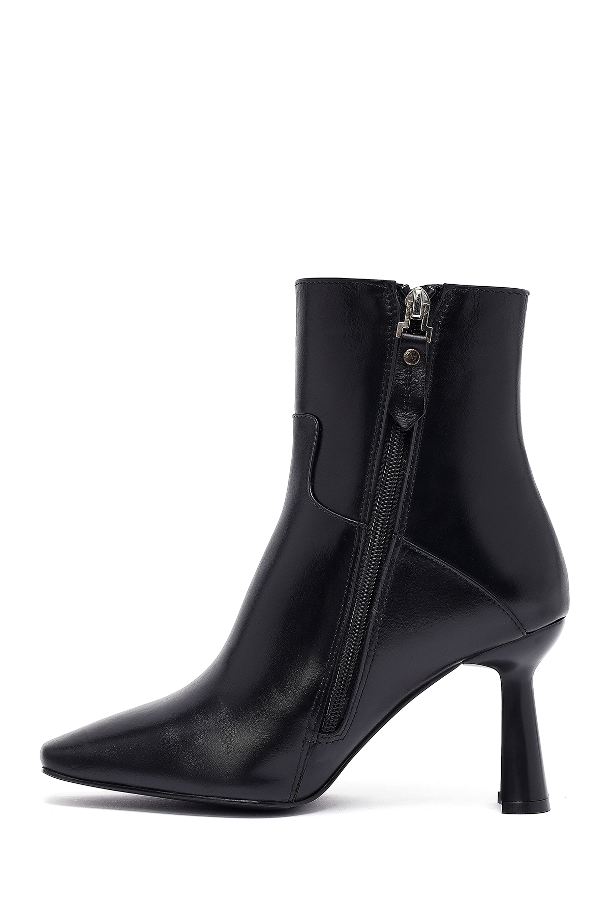 چکمه پاشنهدار چرمی زنانه مشکی زیپدار 25WFD133318