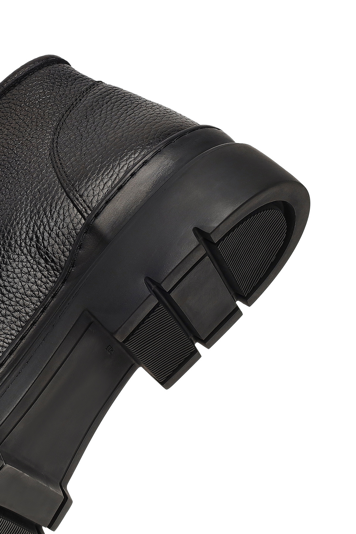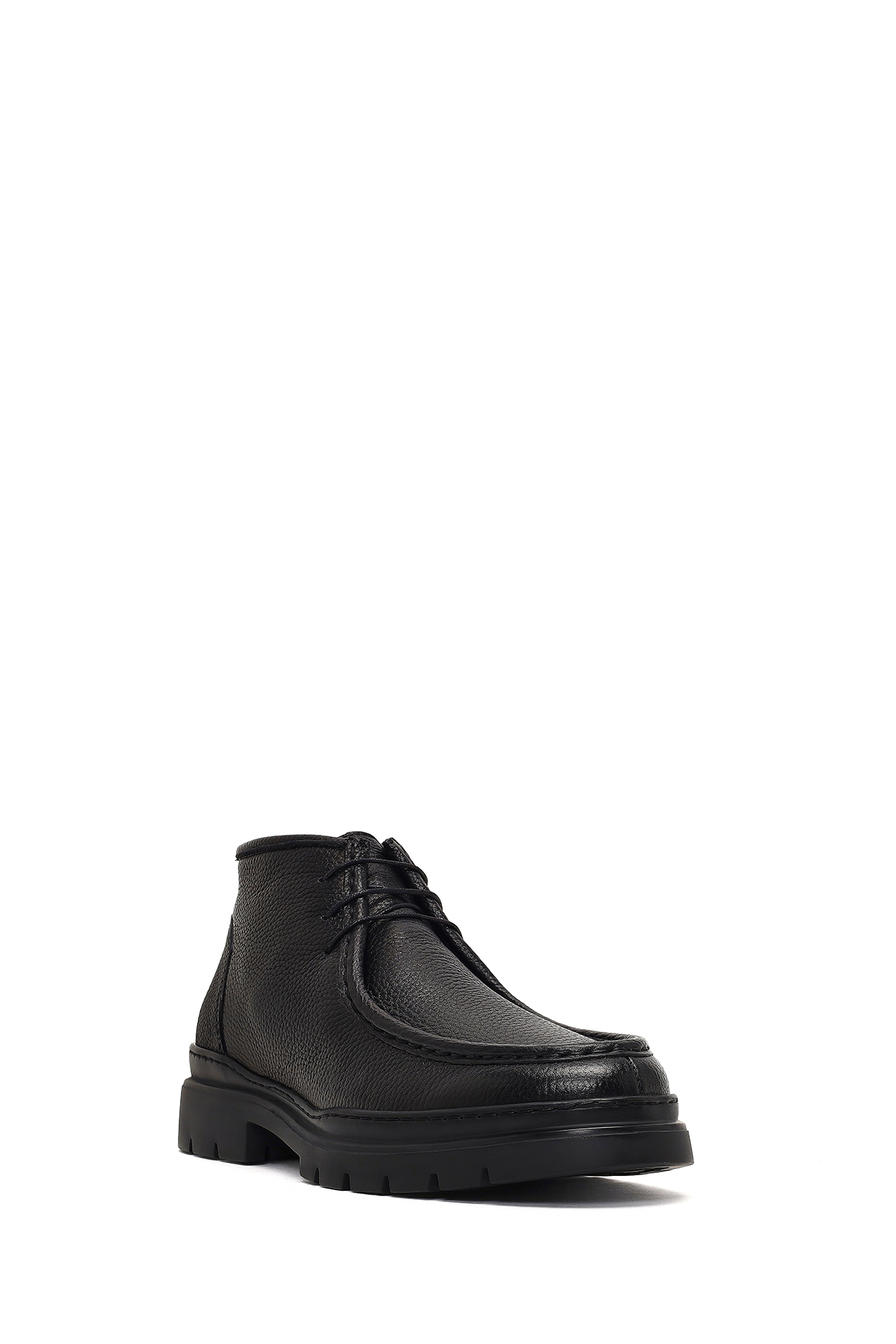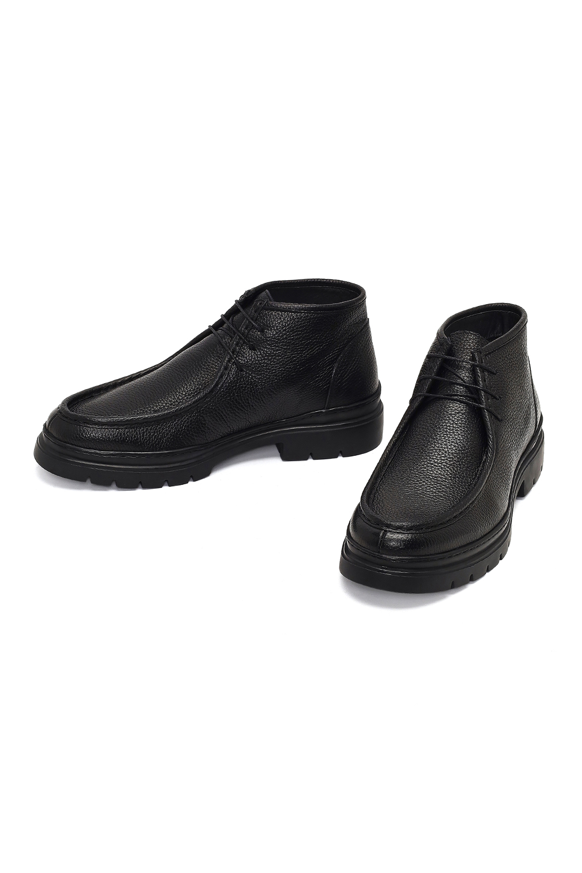 چکمههای چرمی مردانه مشکی بنددار غیررسمی دارای چرم گاوی هستند.