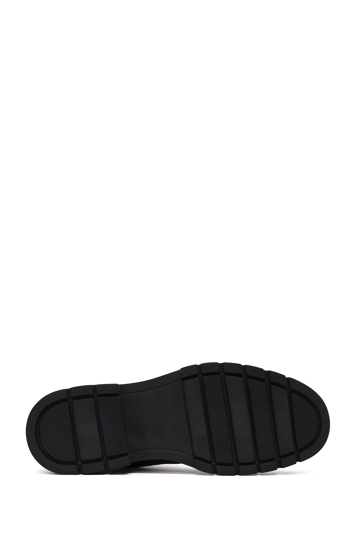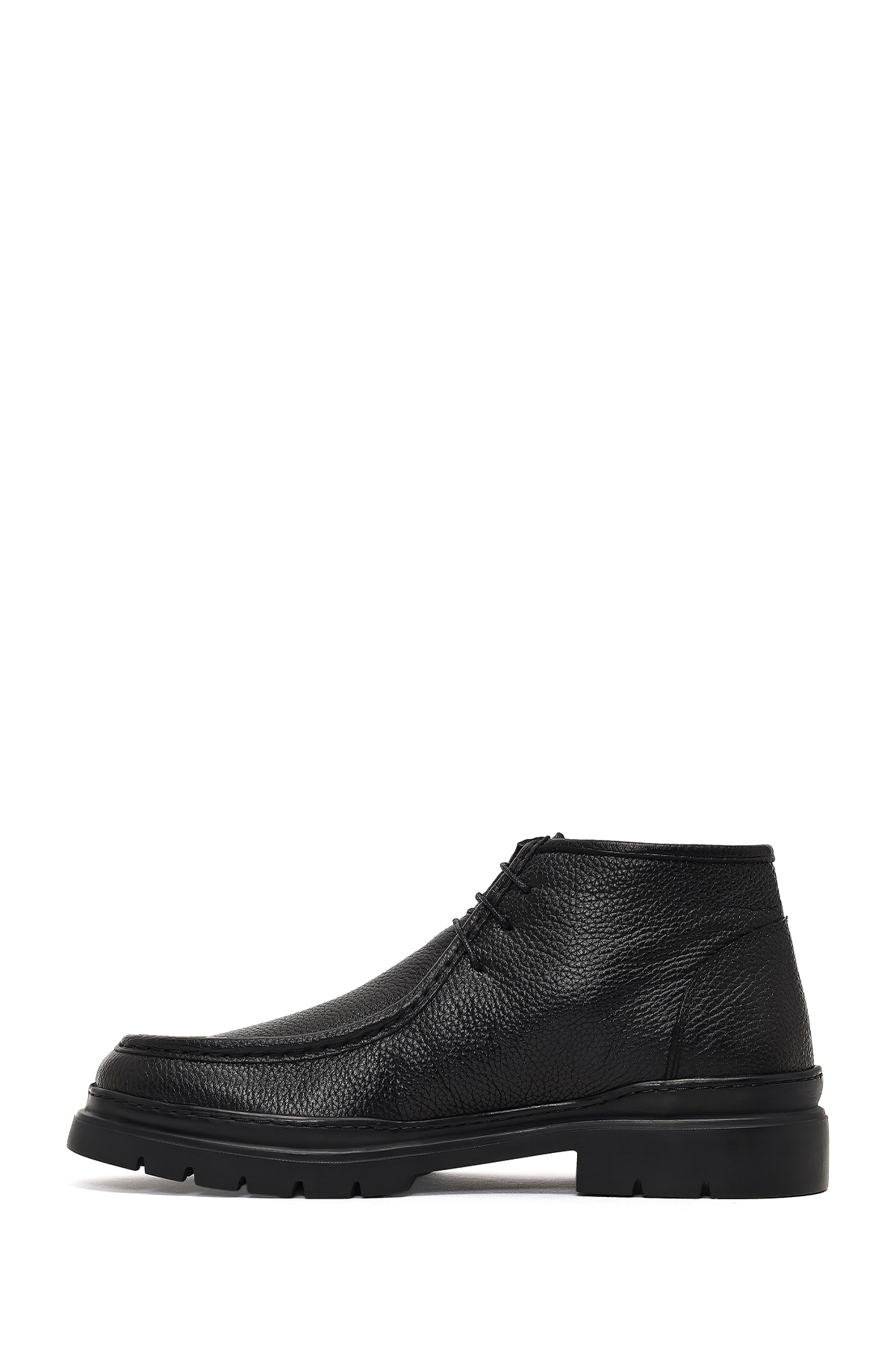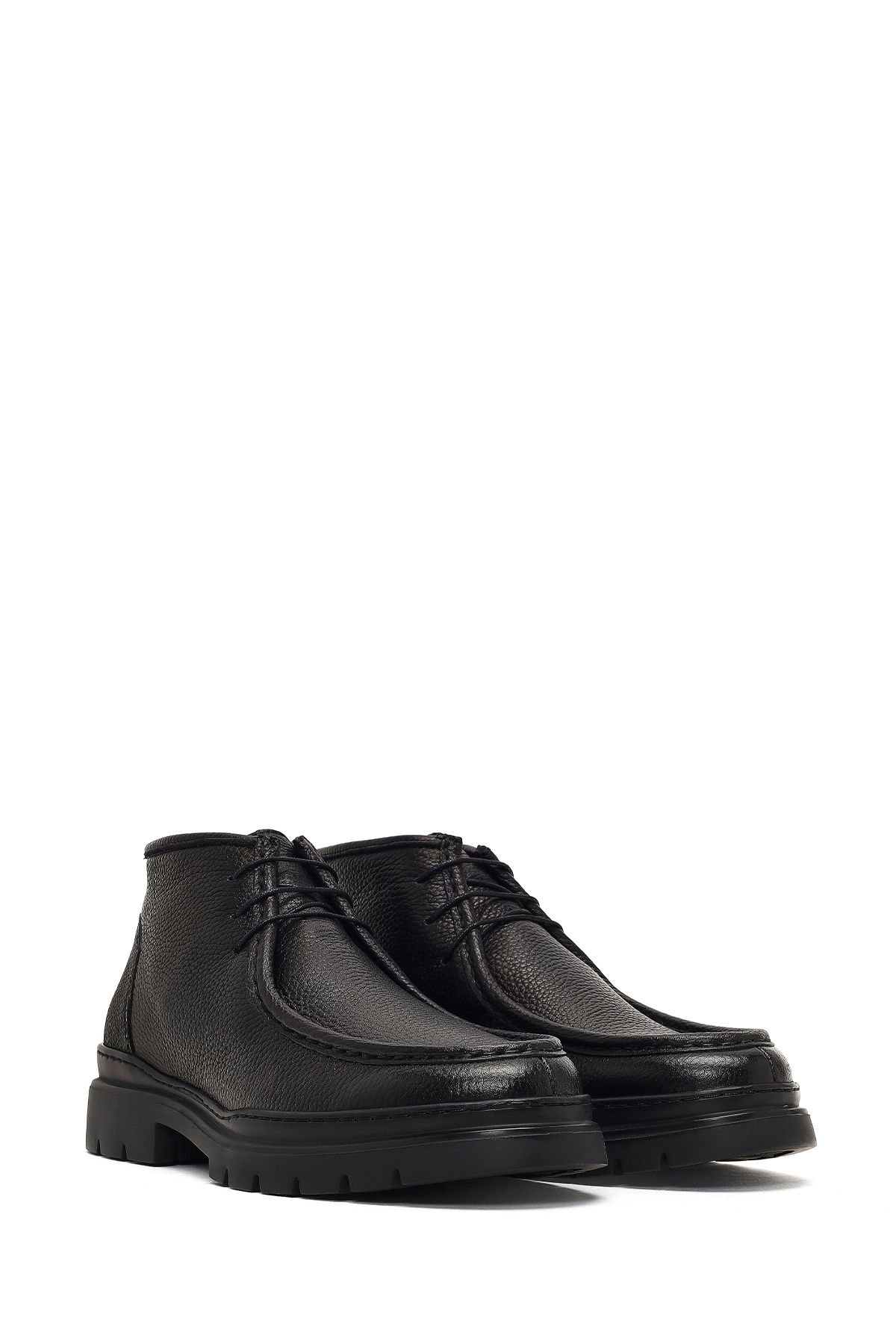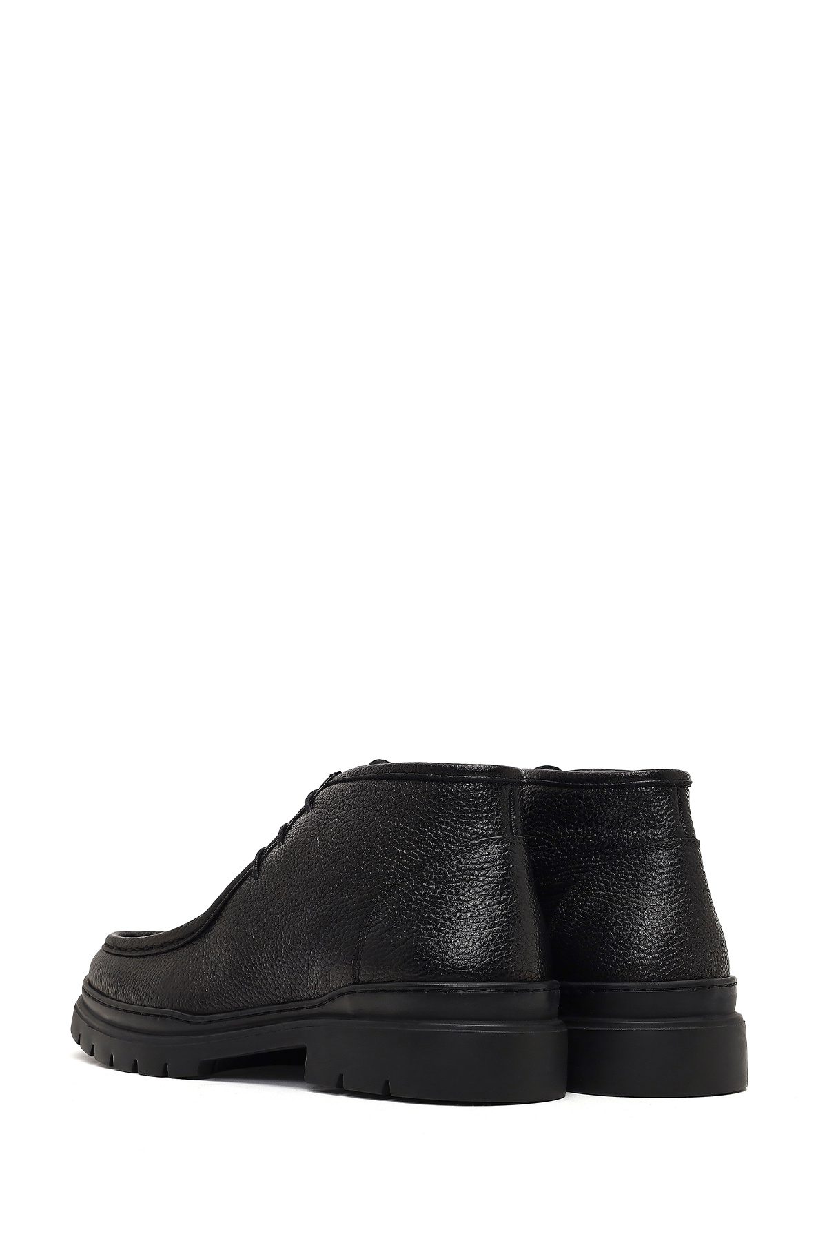 چکمههای چرمی مردانه مشکی بنددار غیررسمی دارای چرم گاوی هستند.