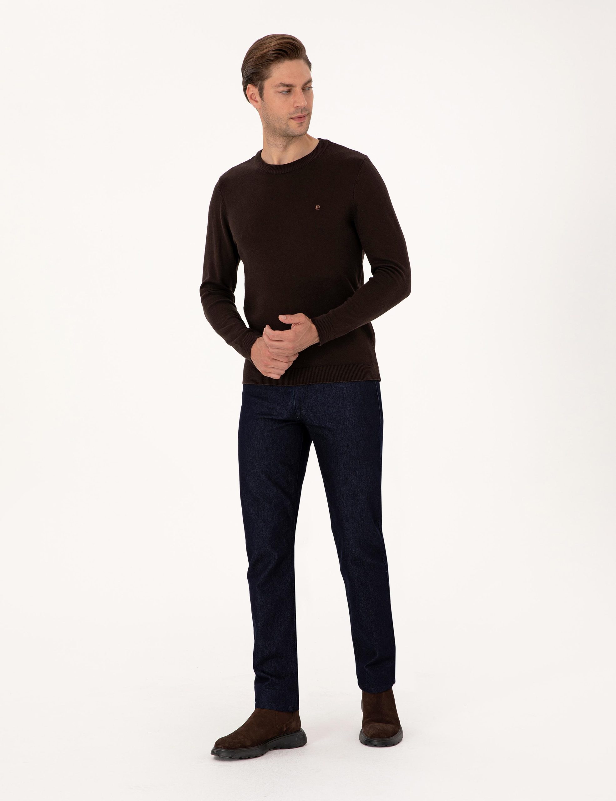 ژاکت تریکو بیسیک یقه گرد اسلیم فیت رنگ قهوه ای تیره پیرکاردین