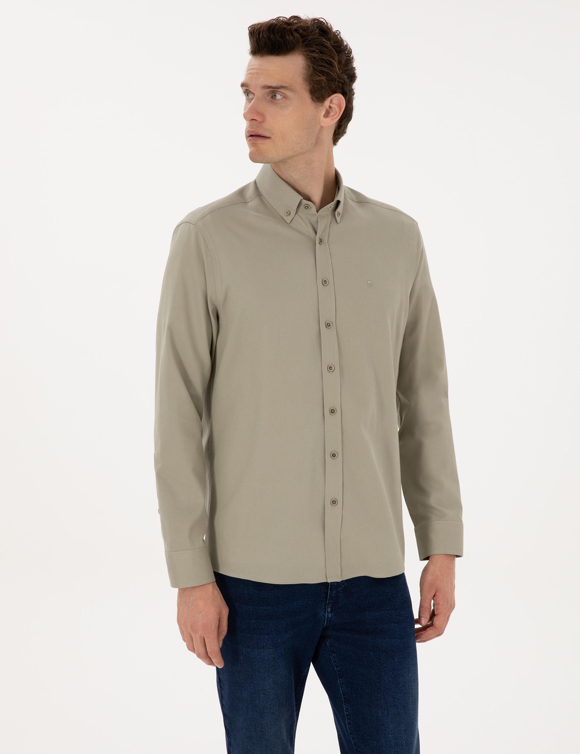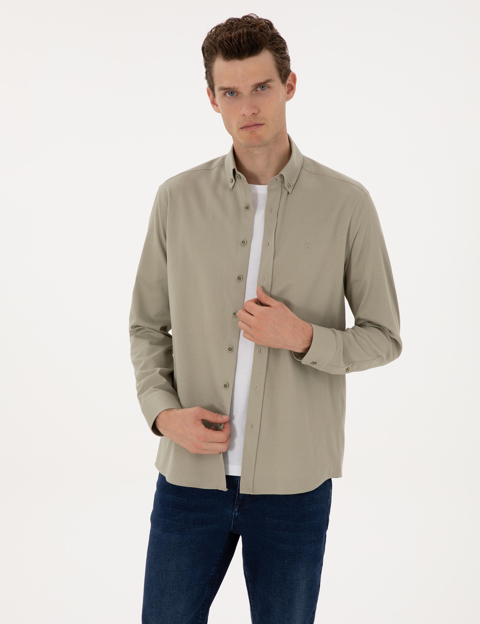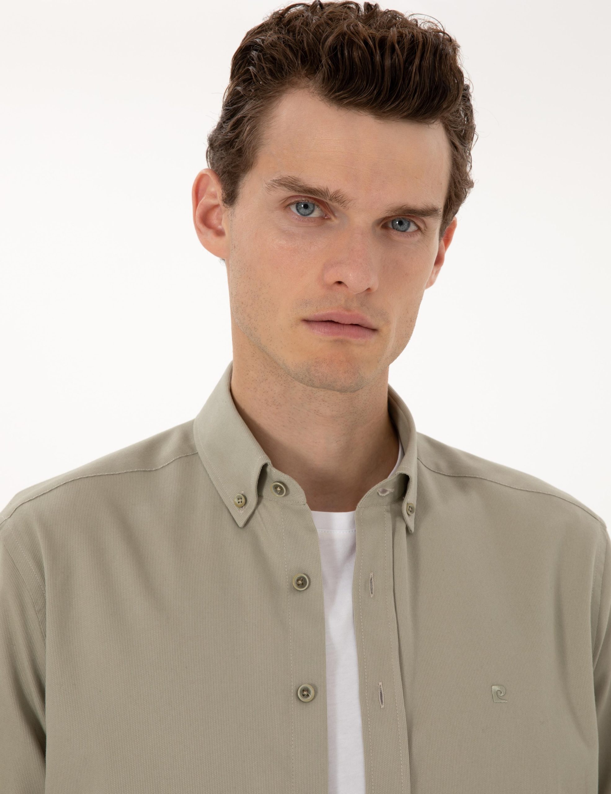پیراهن آستین بلند سبز آبی رگولار فیت پیر کاردین