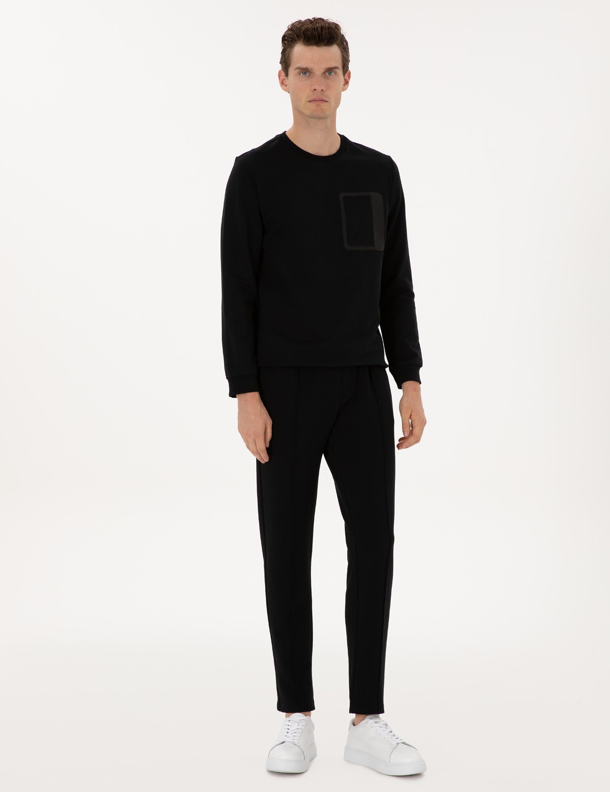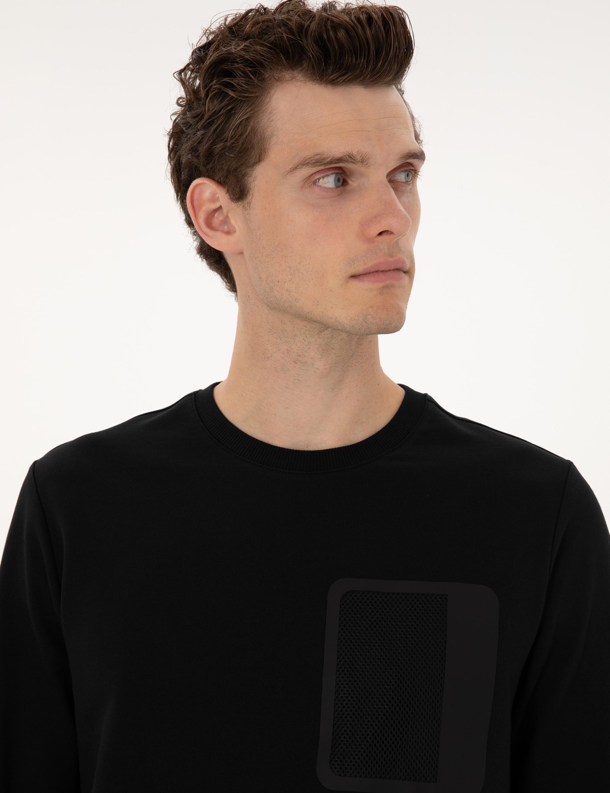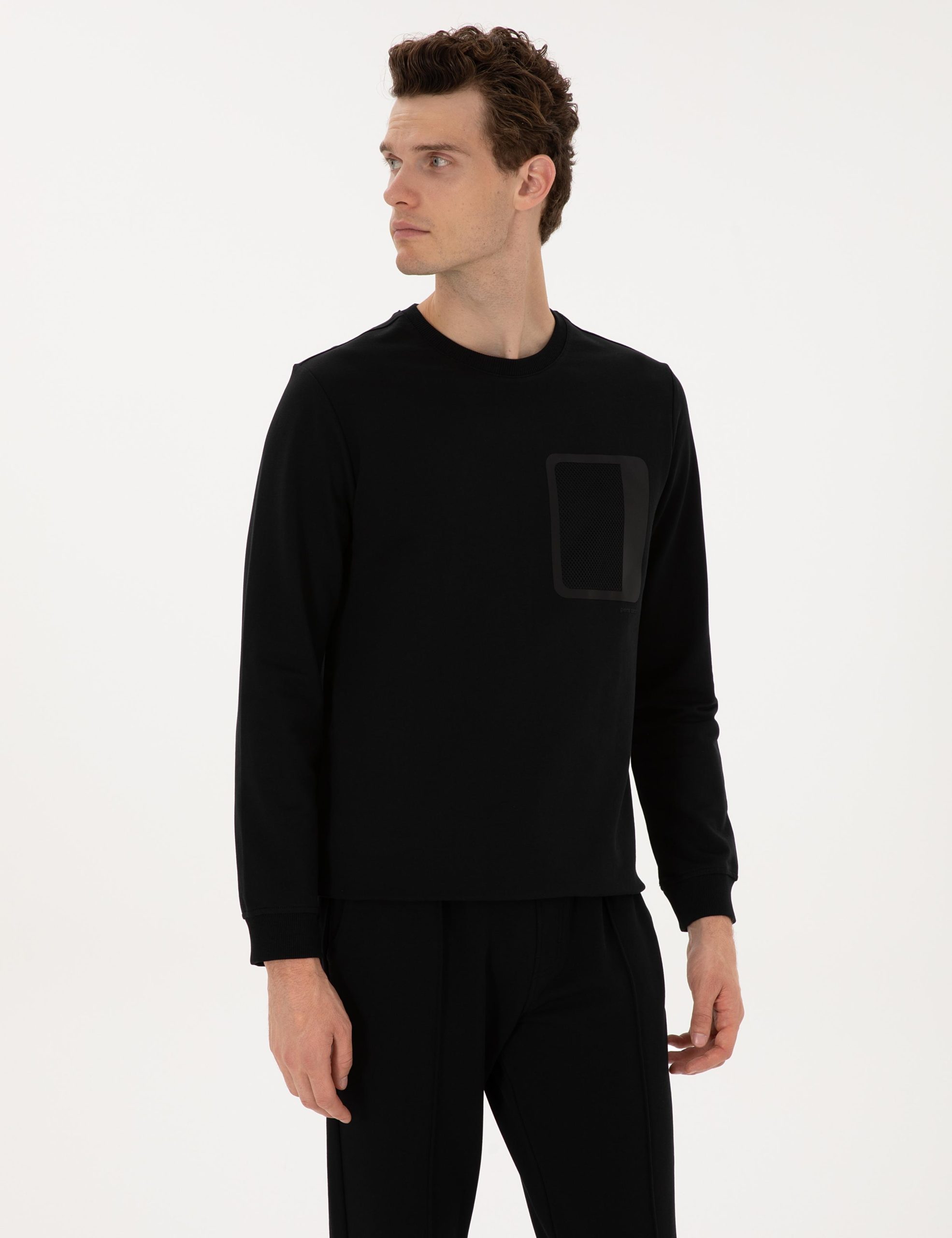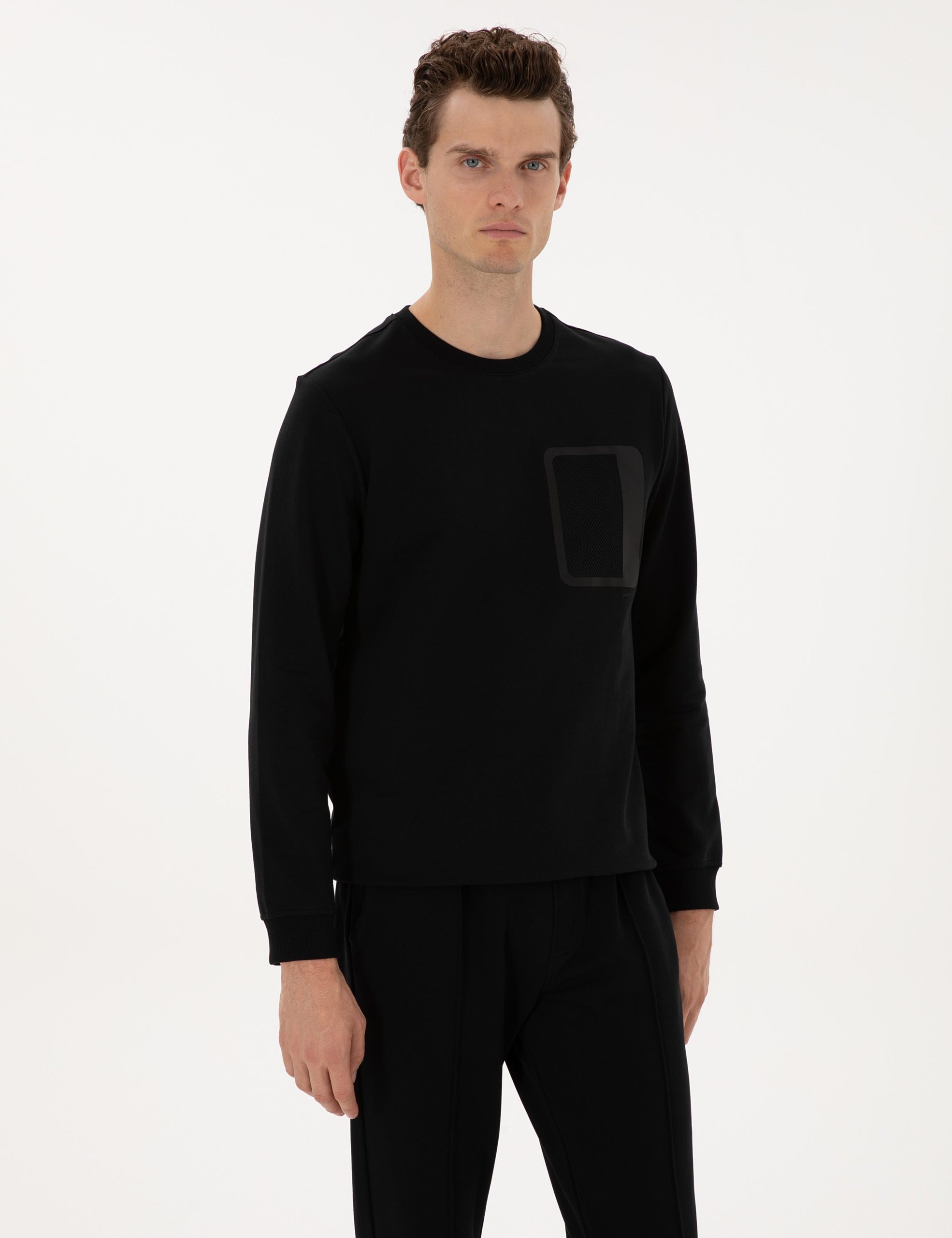 سویشرت مشکی رگولار فیت یقه گرد پیر کاردین