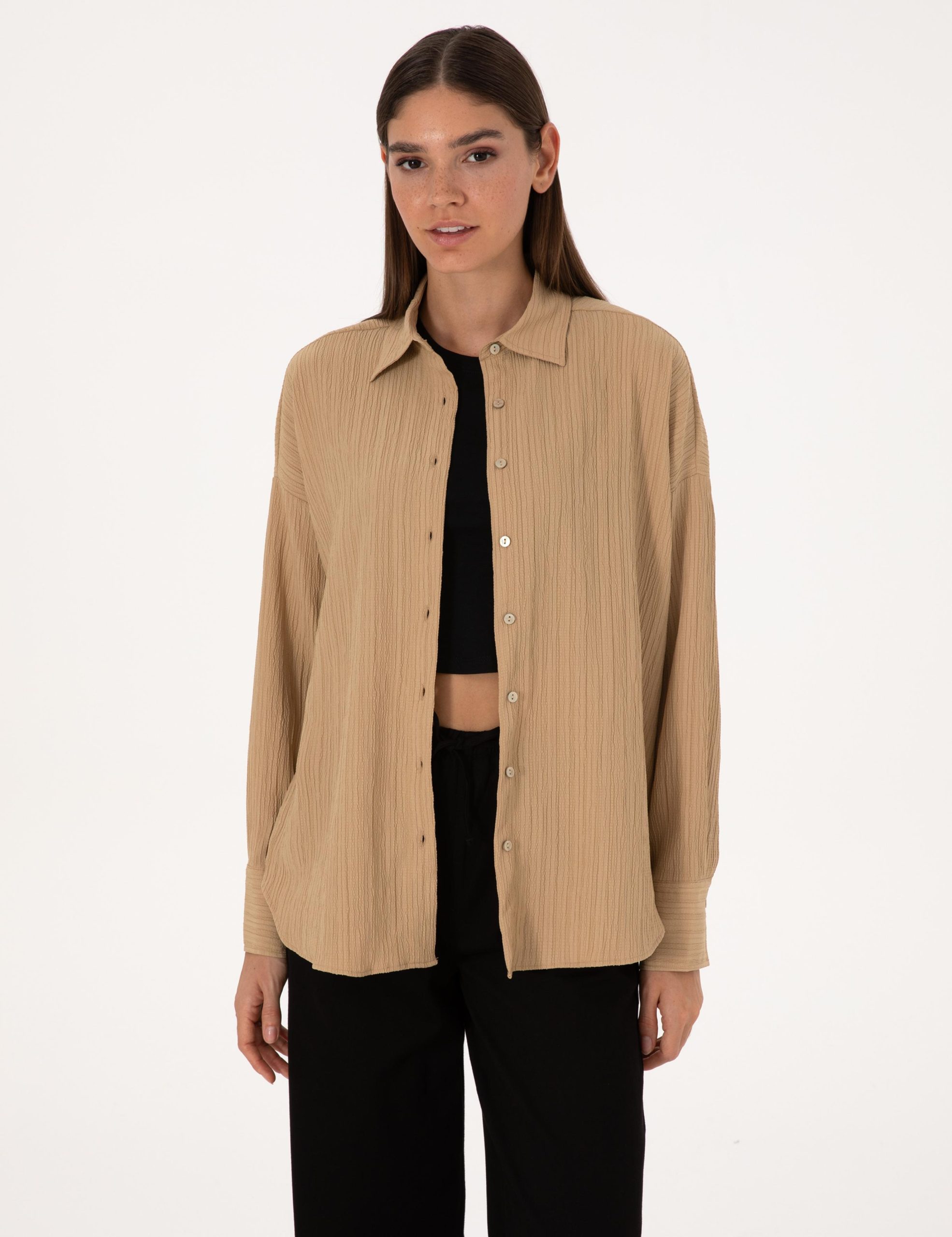پیراهن آستین بلند بژ تیره گشاد پیر کاردین