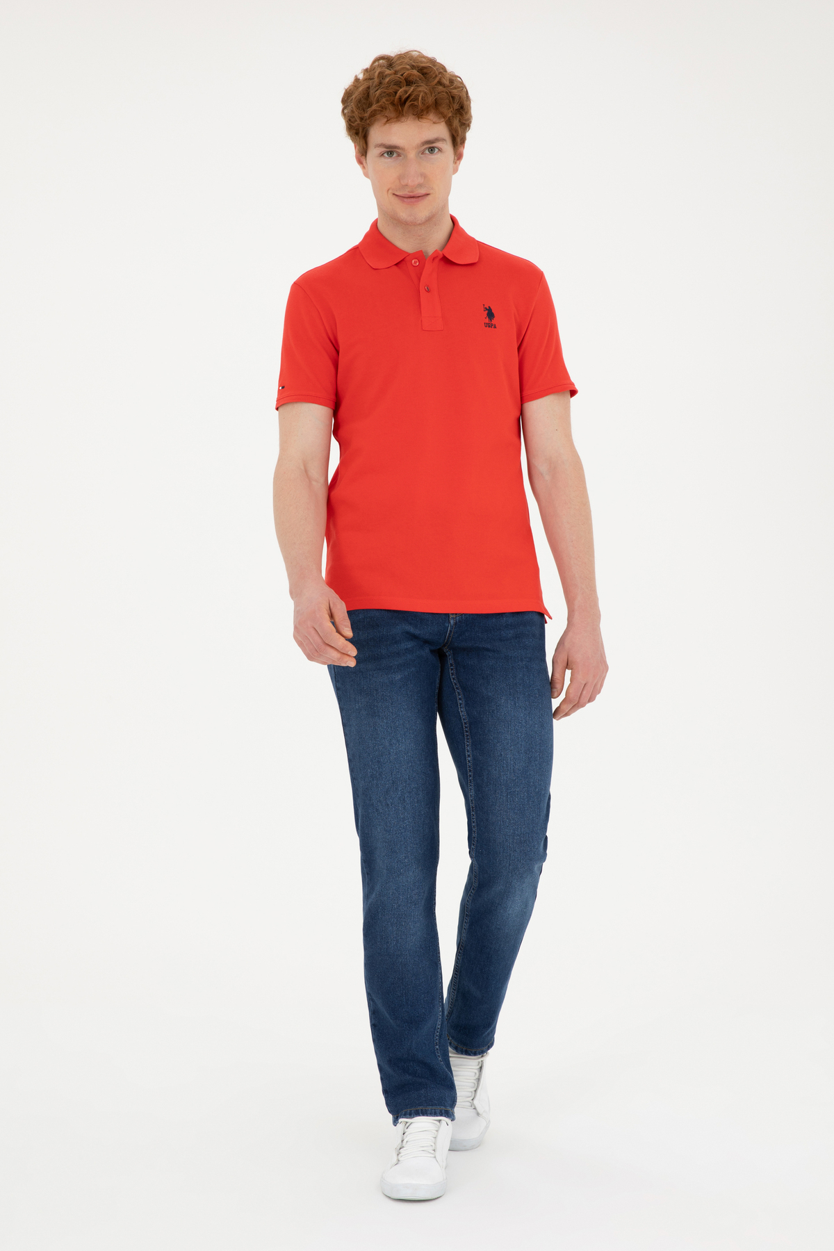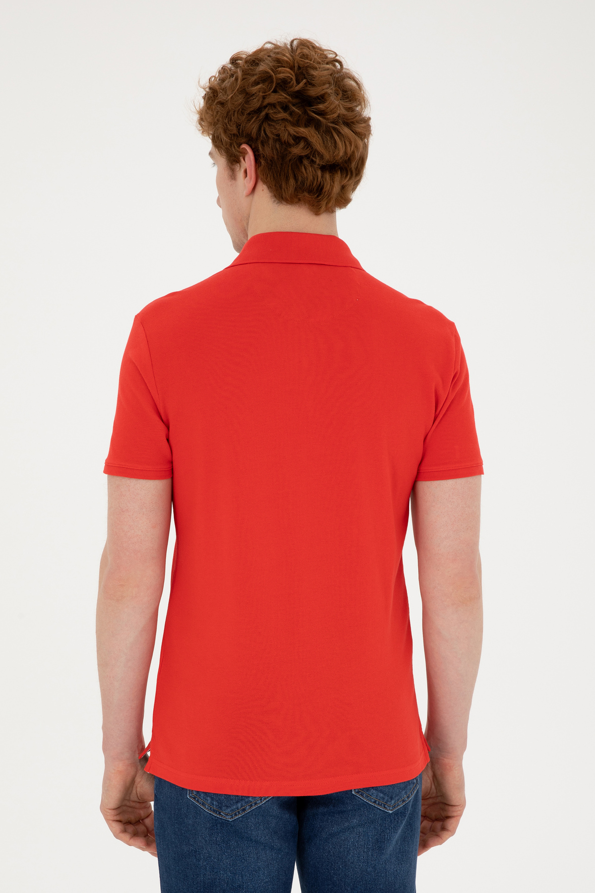 تی شرت مردانه یقه پولو اسلیم فیت قرمز طرح بیسیک برند یو اس پولو کد:(50279613-VR030)