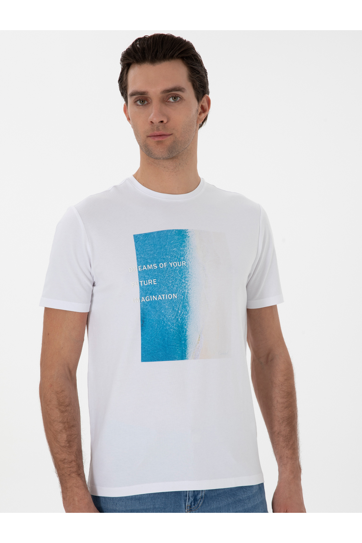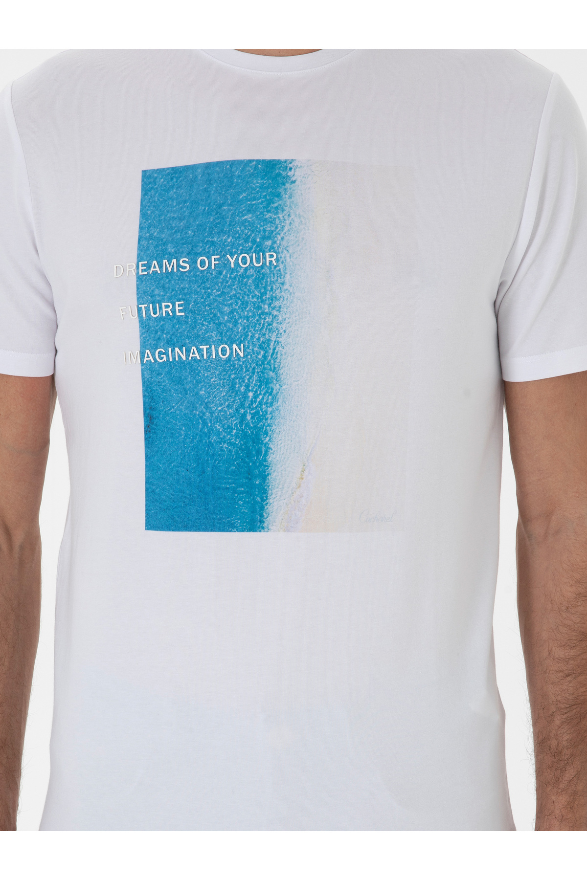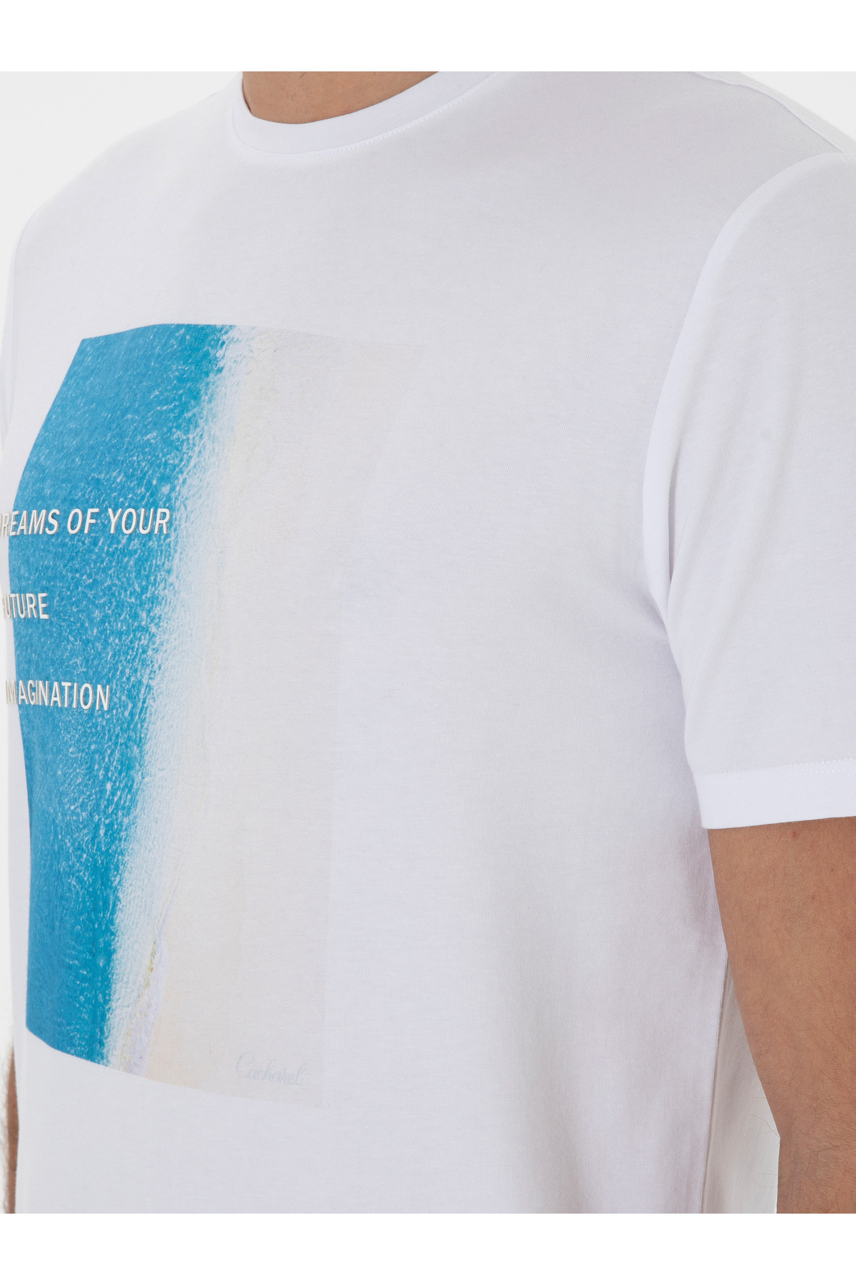 تیشرت طرحدار یقه گرد سفید معمولی فیت برند کاشارل کد:(50301946-VR013)