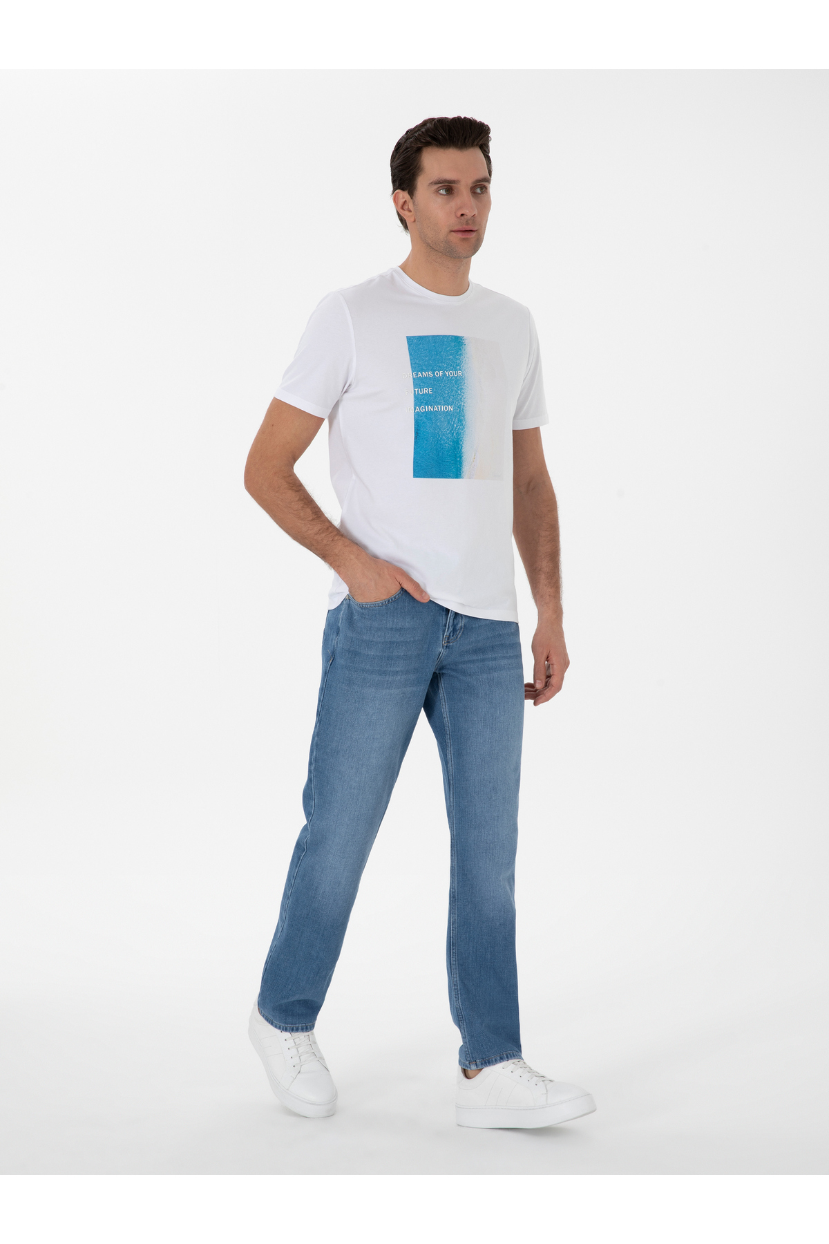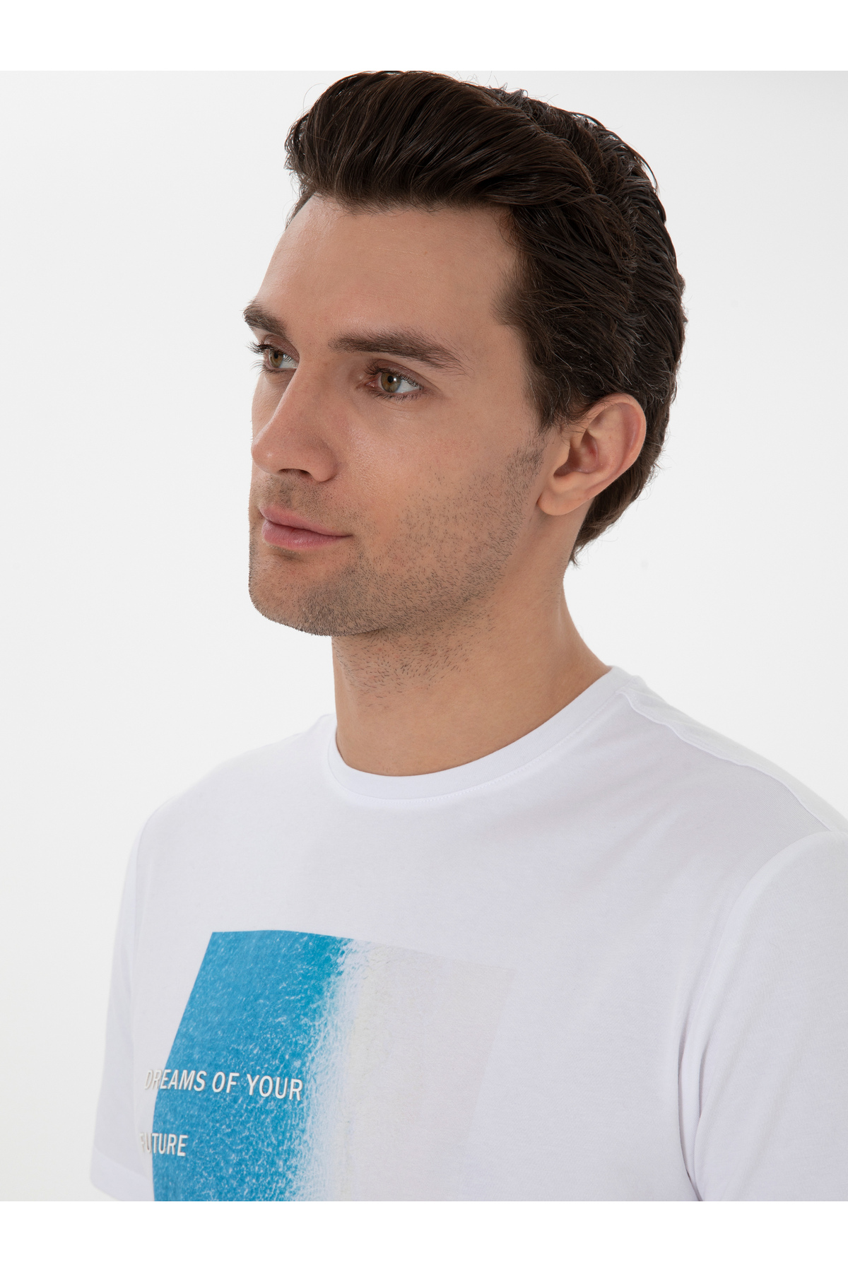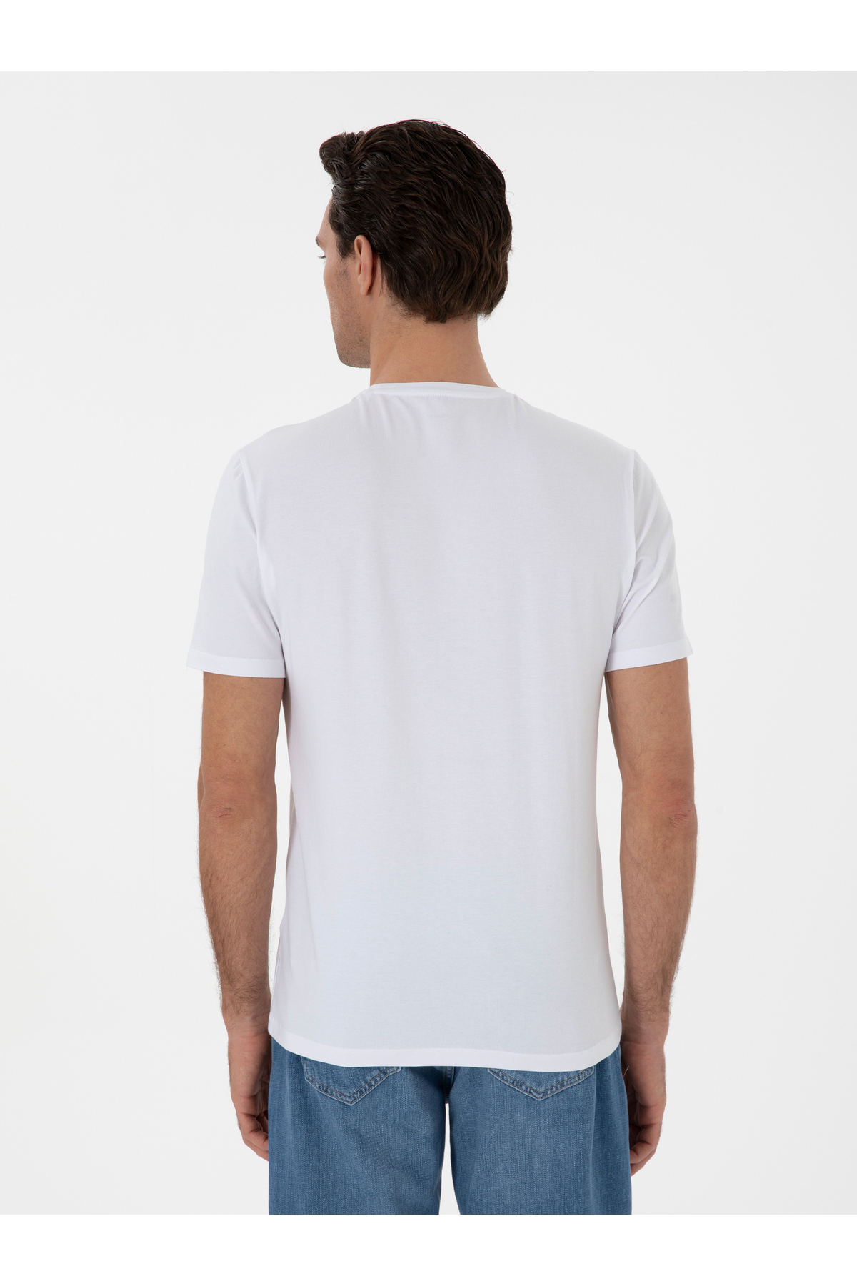 تیشرت طرحدار یقه گرد سفید معمولی فیت برند کاشارل کد:(50301946-VR013)