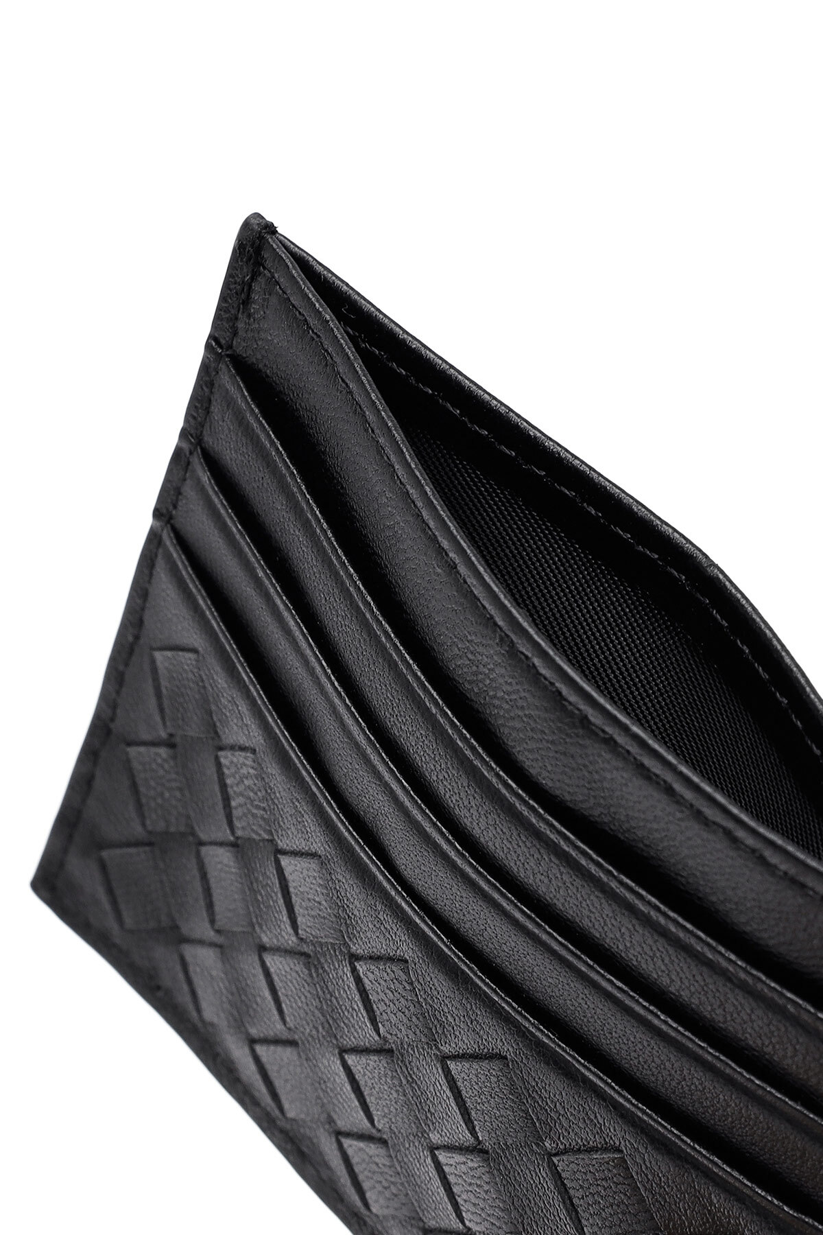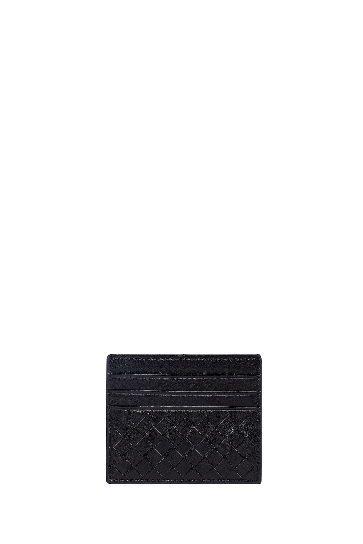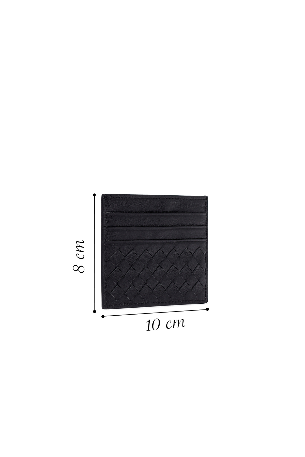 جا کارتی مردانه چرم بافته مشکی حاوی چرم گاوی است.