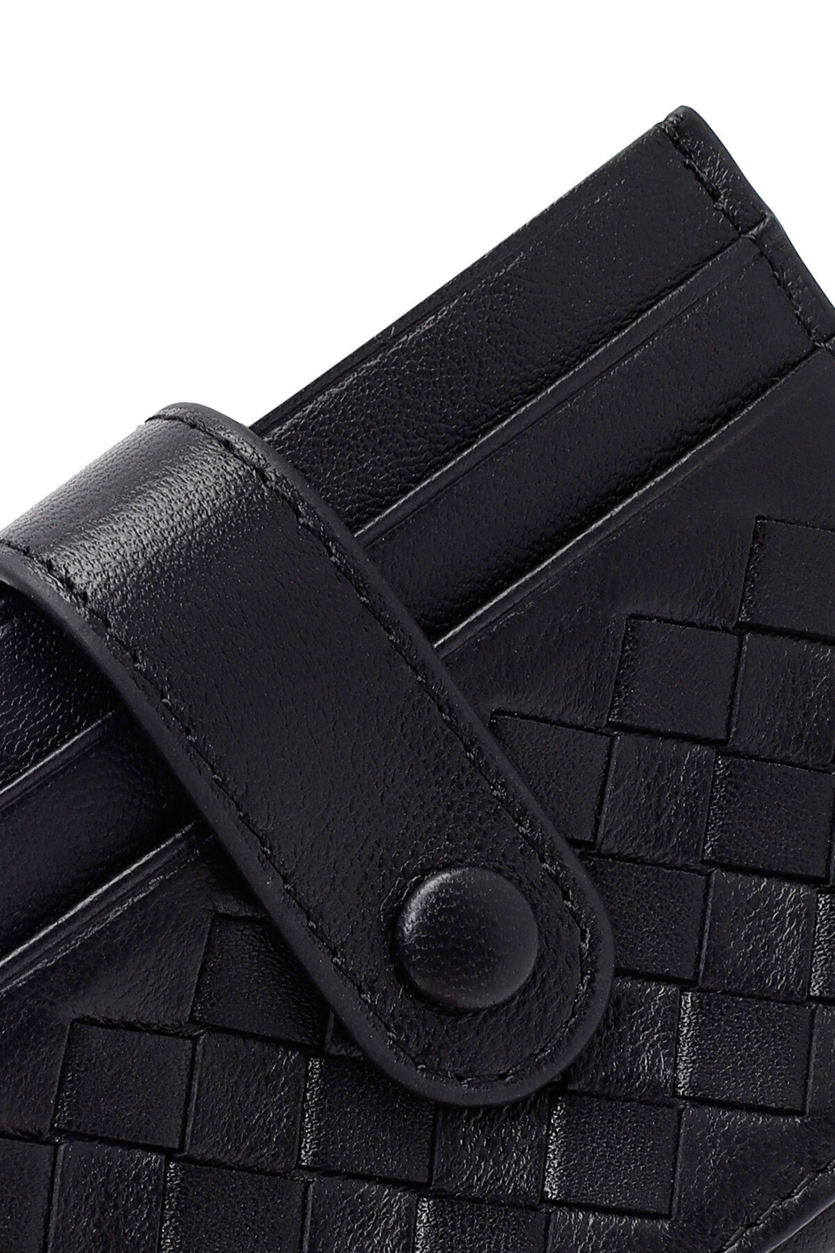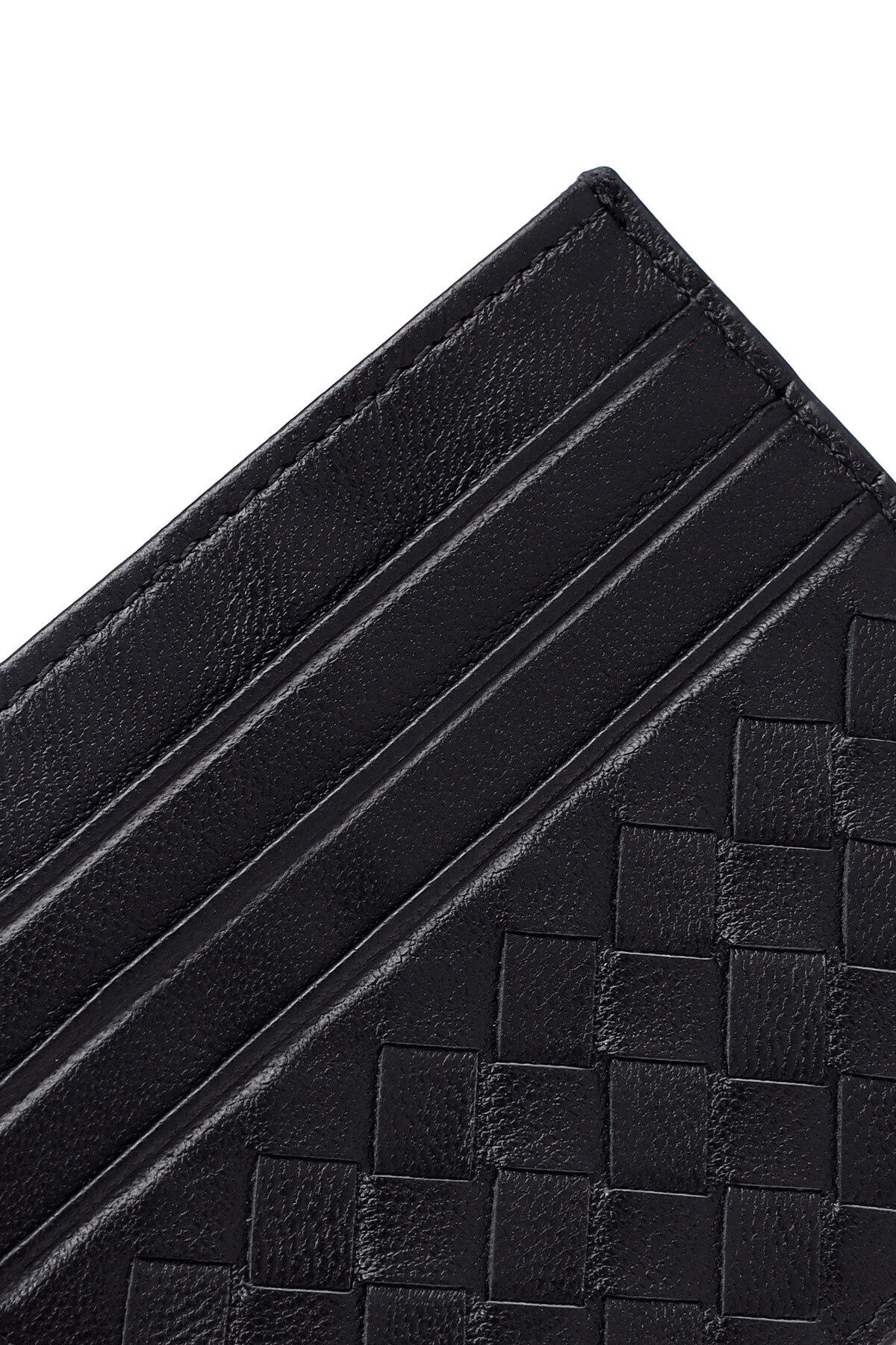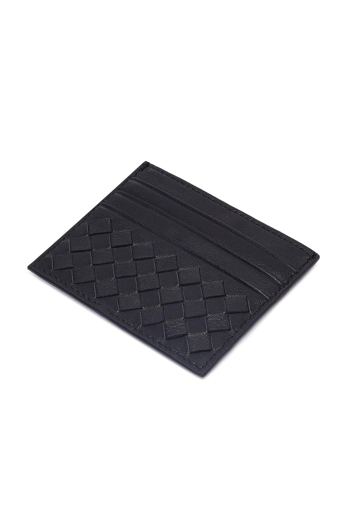 جا کارتی مردانه چرم بافته مشکی حاوی چرم گاوی است.