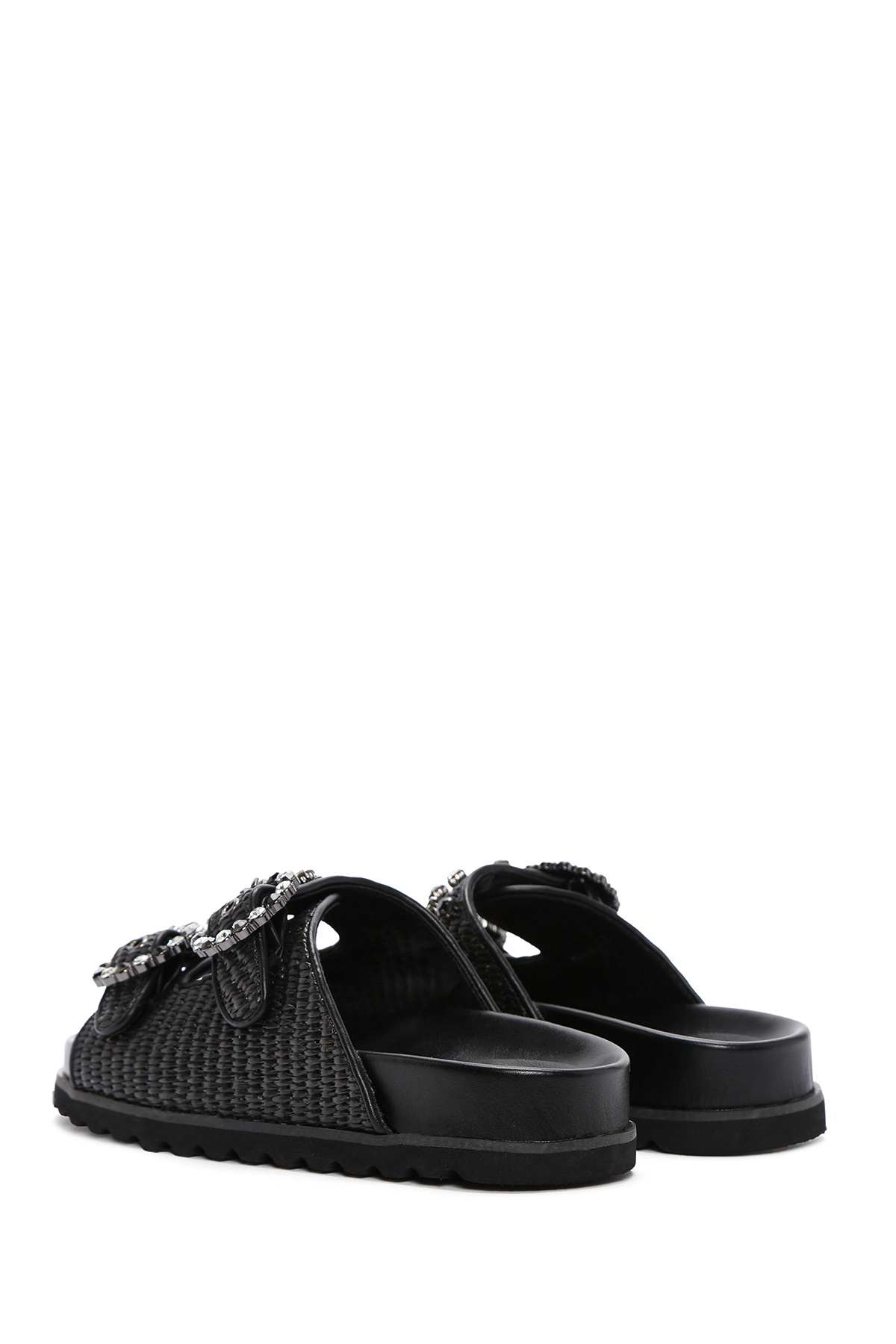 دمپایی زنانه مشکی طرح سنگ بافته شده کد 25SFD4403M7