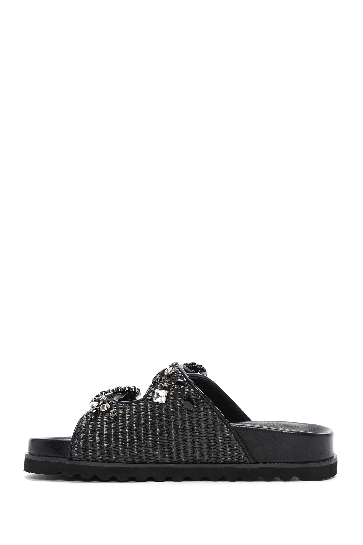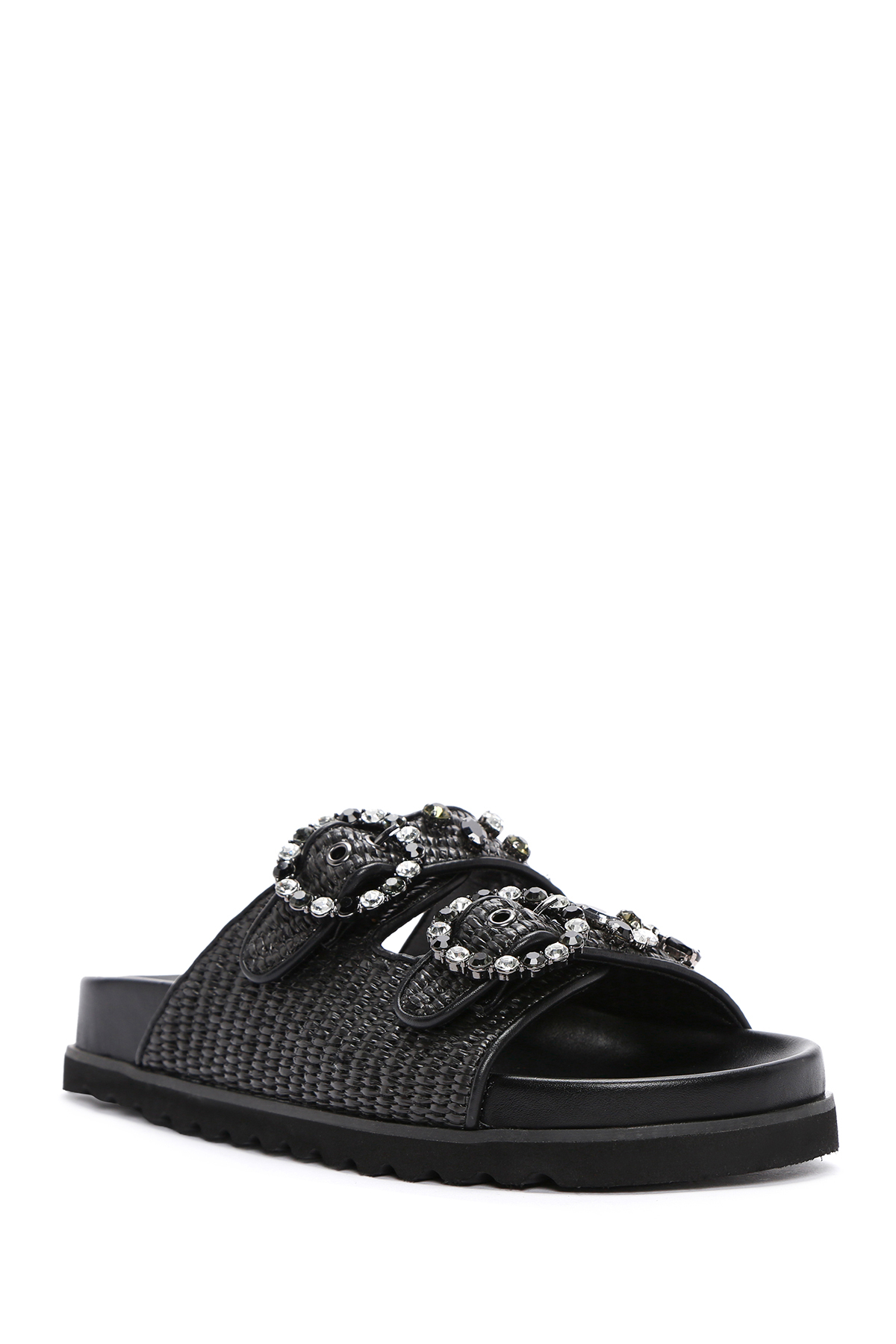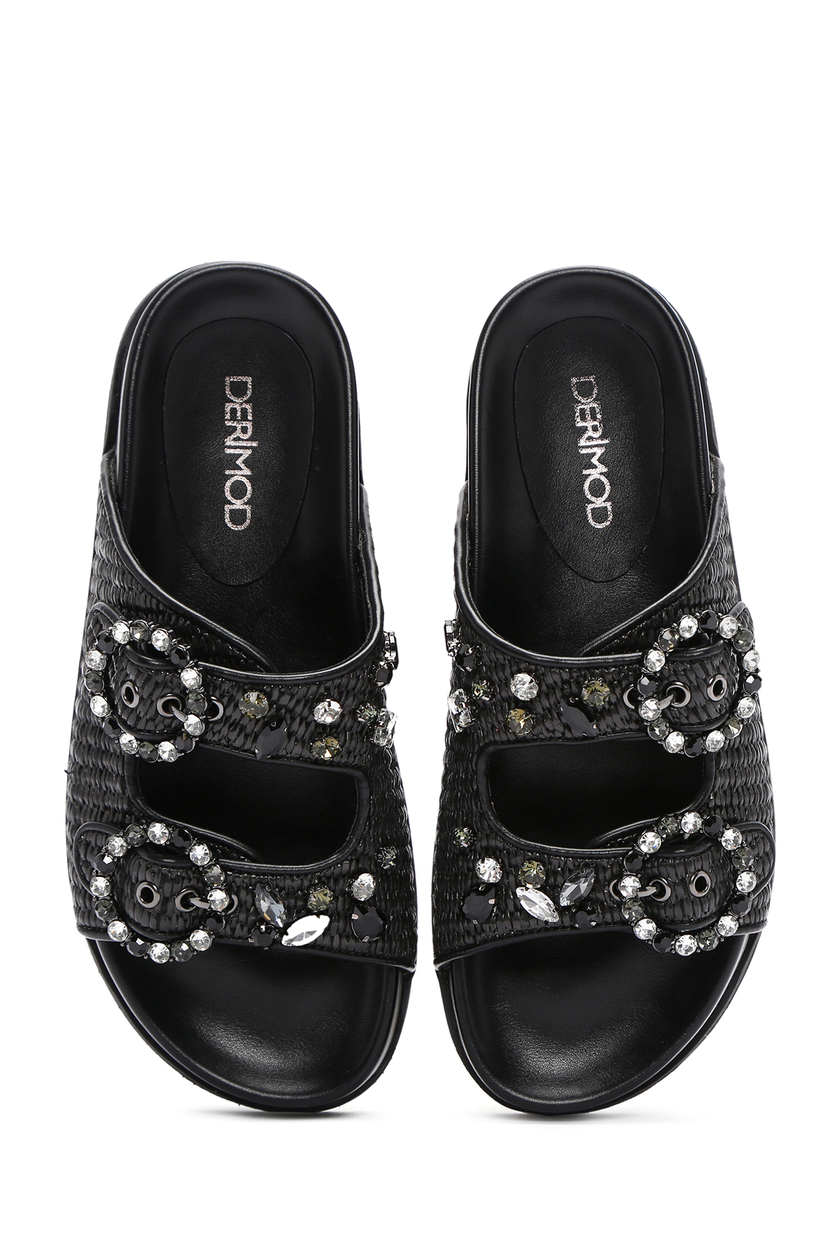 دمپایی زنانه مشکی بافته شده با سنگ تزیین شده