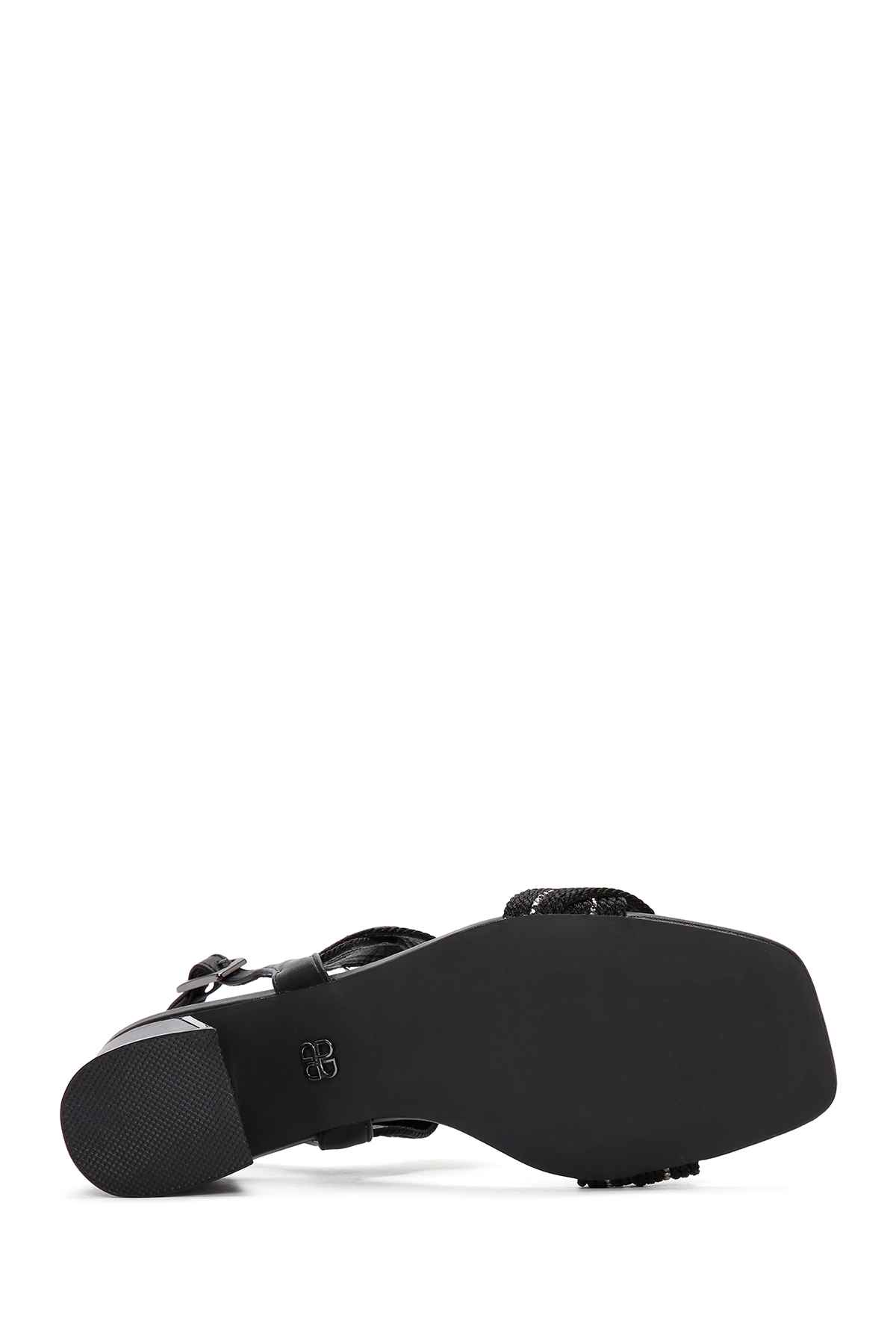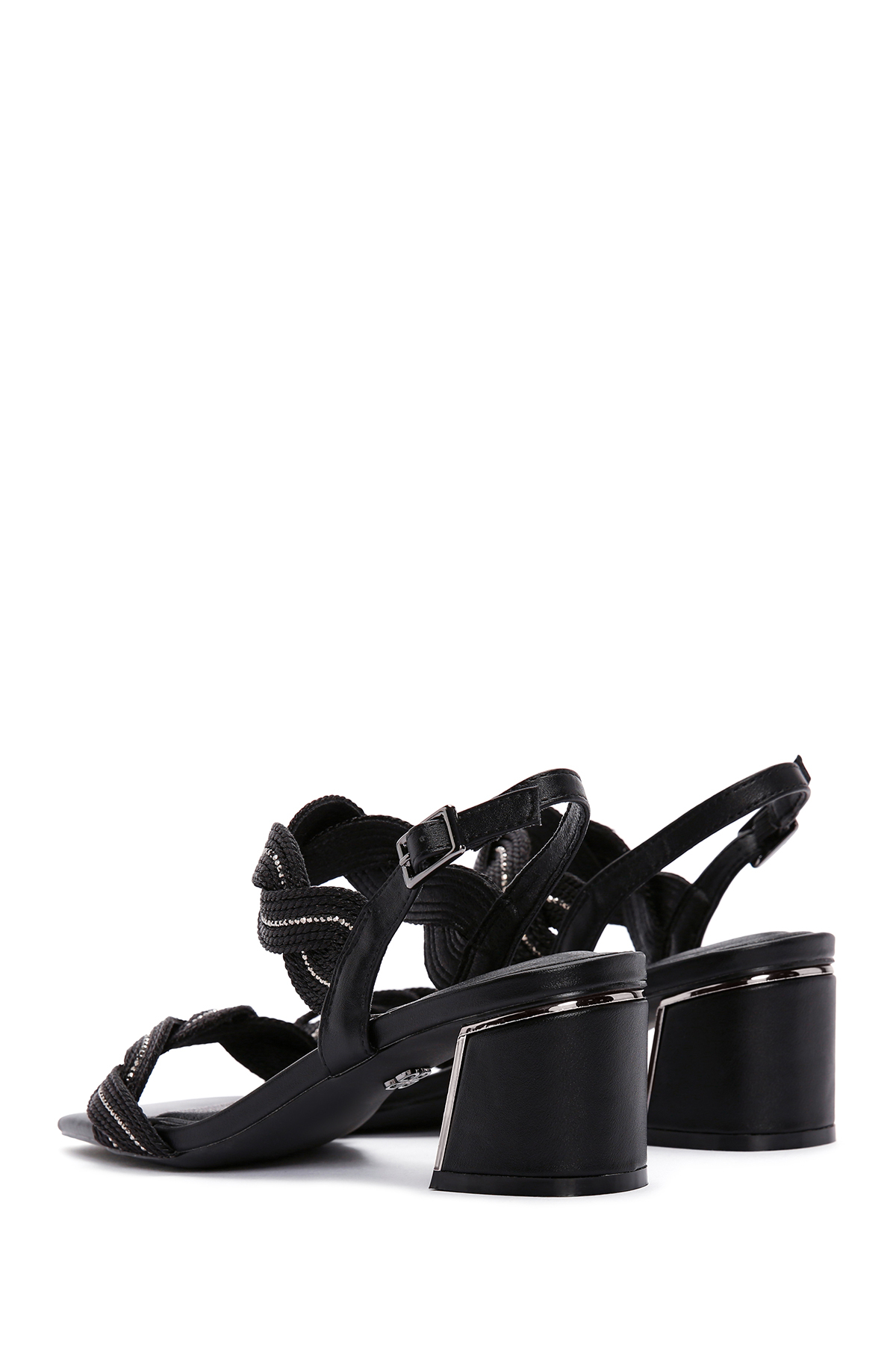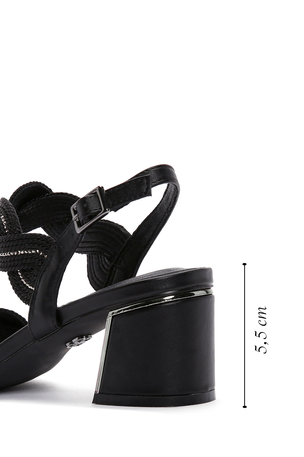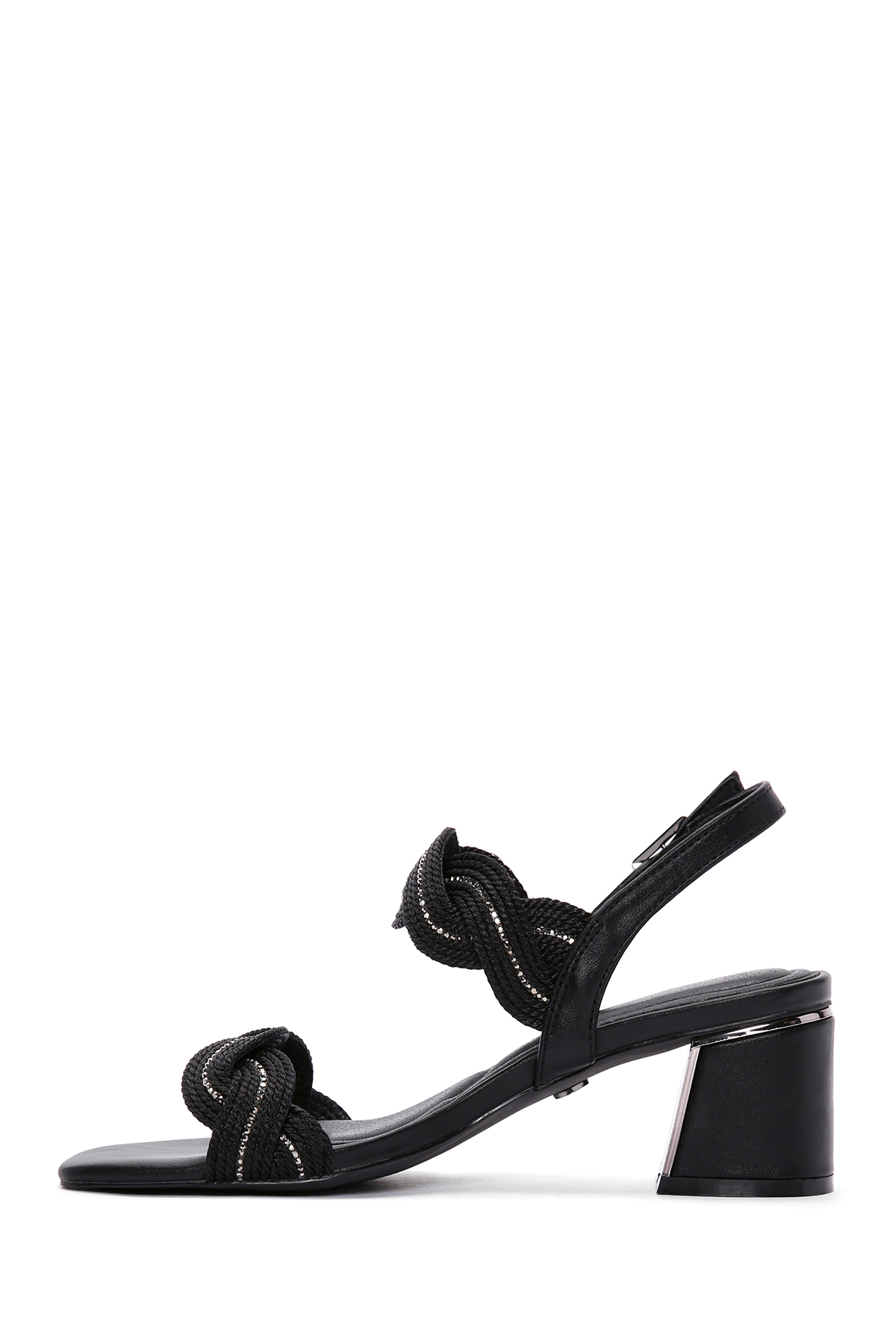 صندل زنانه پاشنه کوتاه ضخیم بافته شده مشکی 25SFD440714