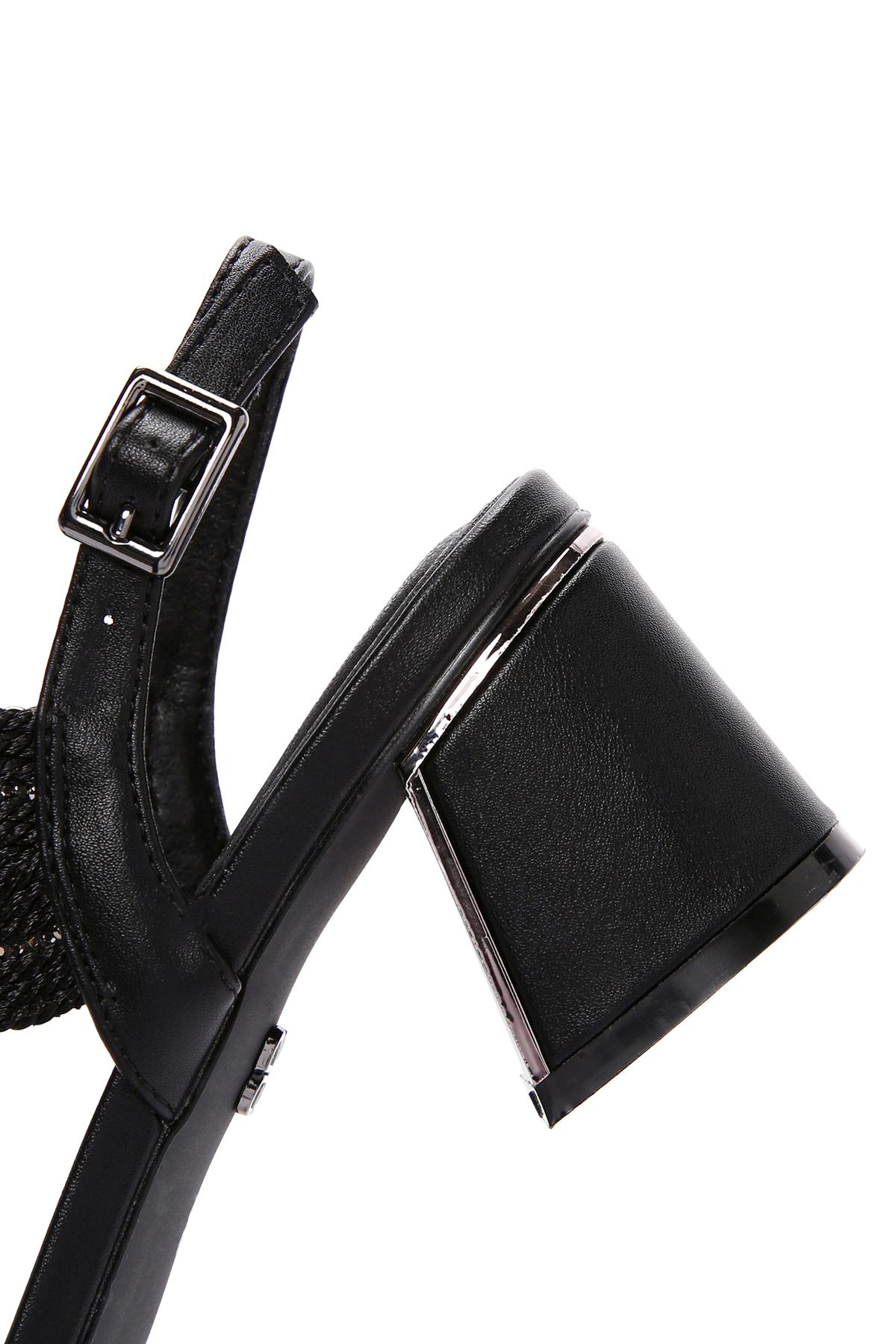 صندل پاشنه کوتاه ضخیم بافته شده مشکی زنانه
