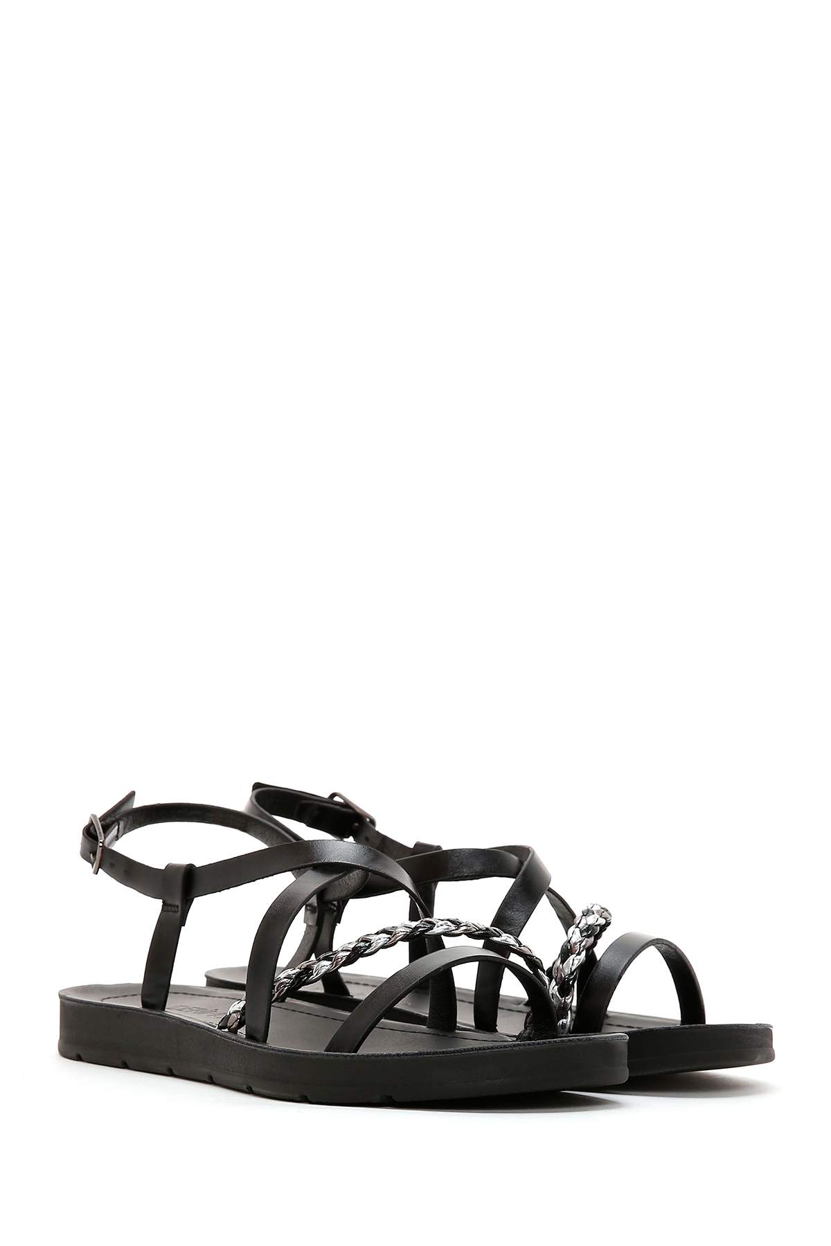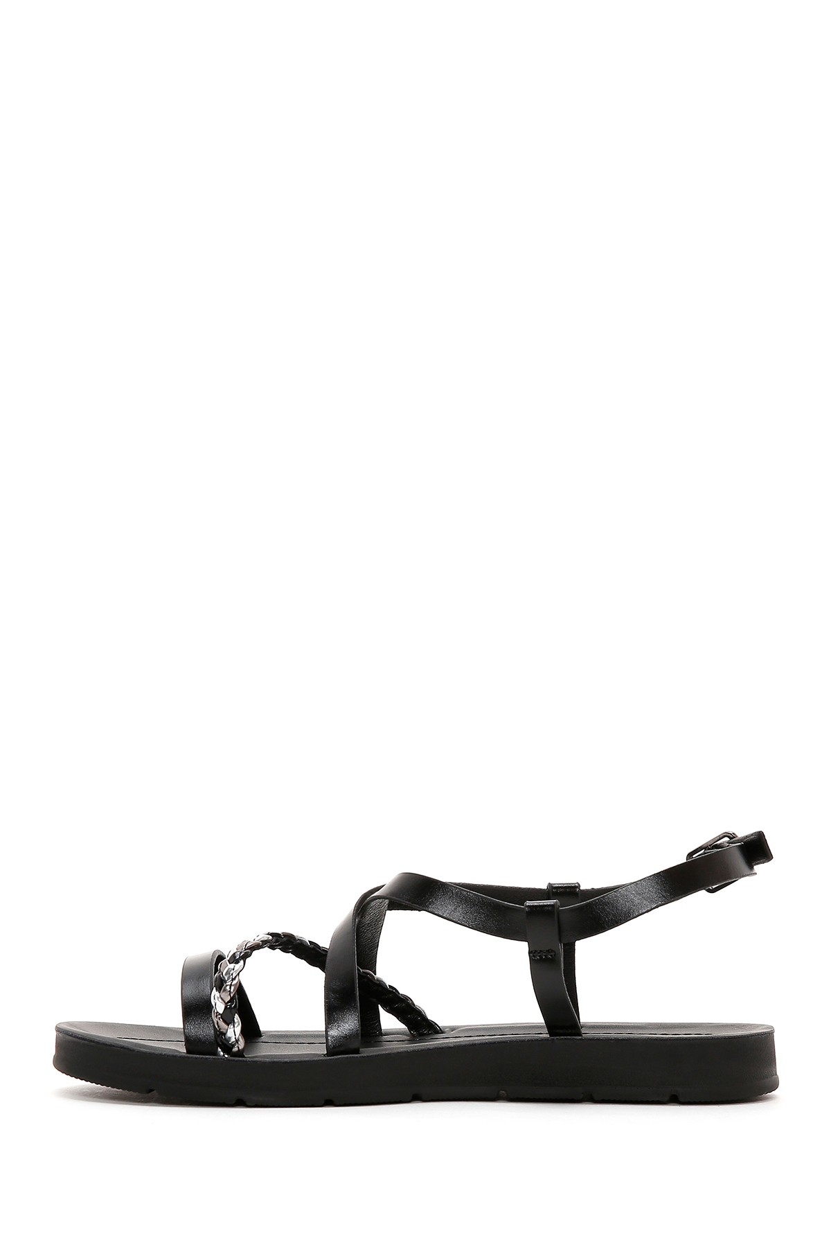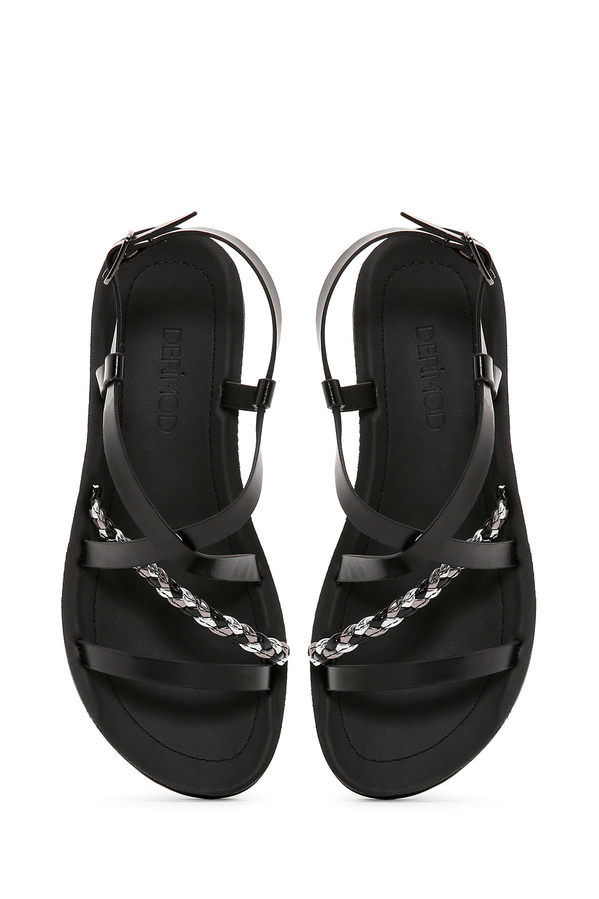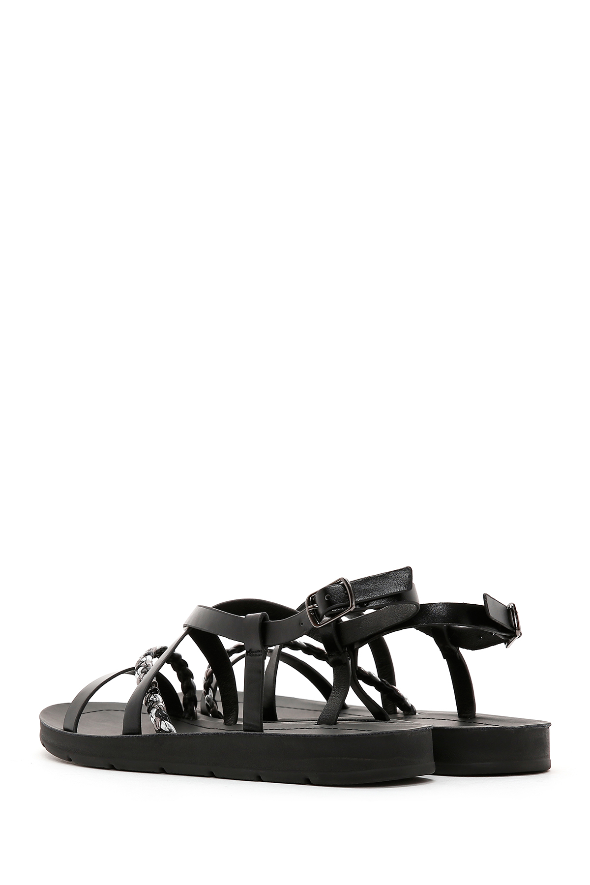 صندل زنانه مشکی با جزئیات بافتنی 25SFE461114