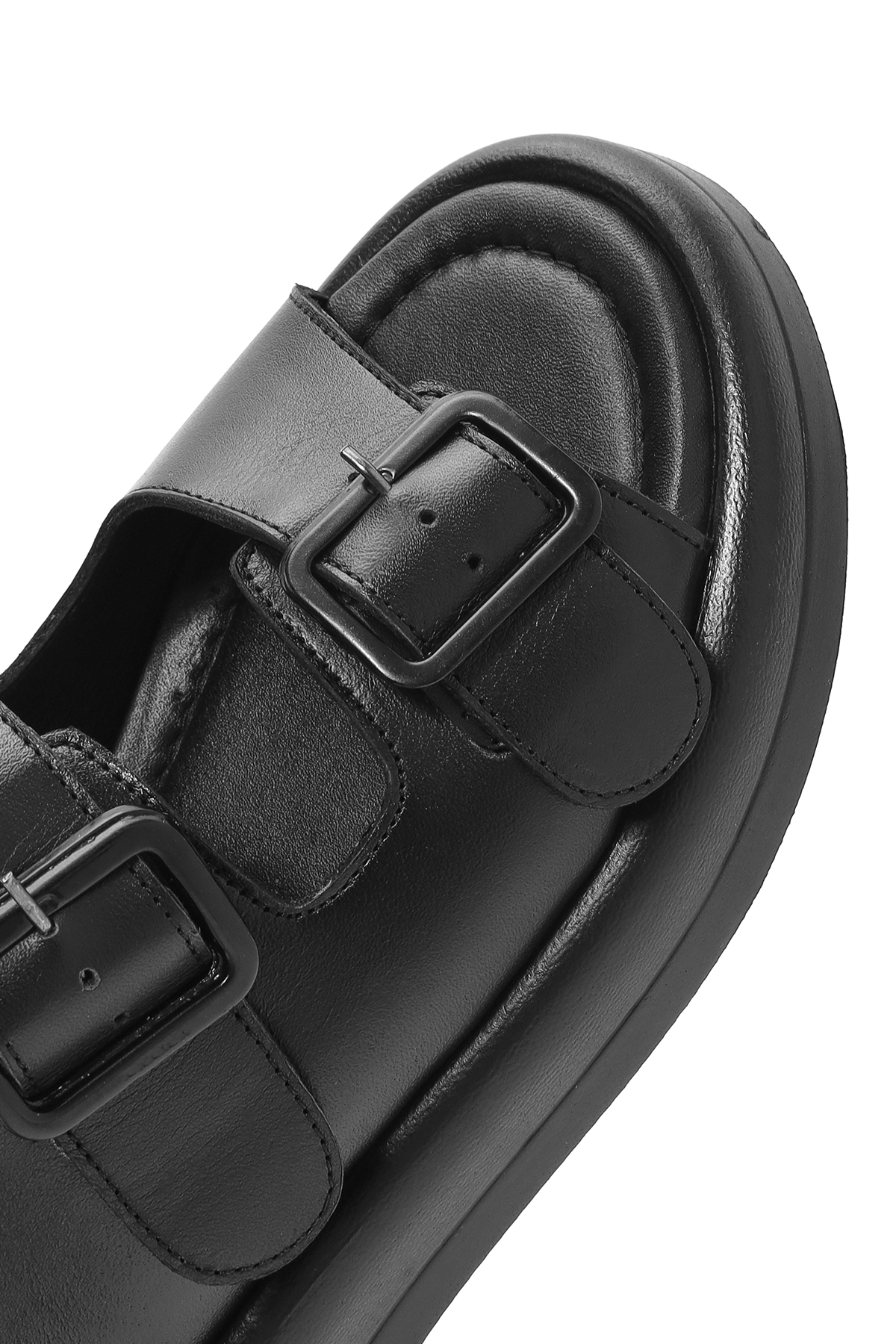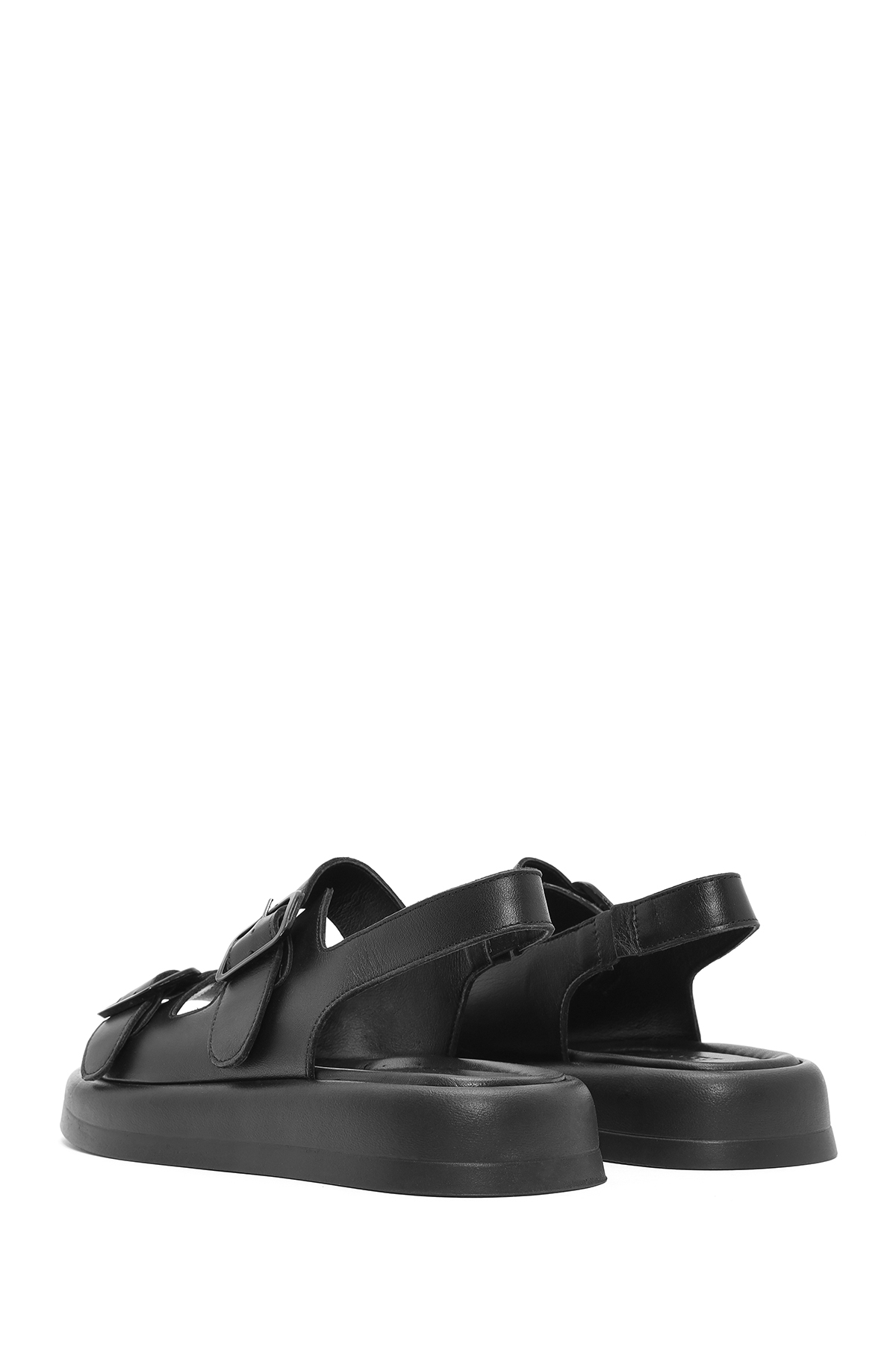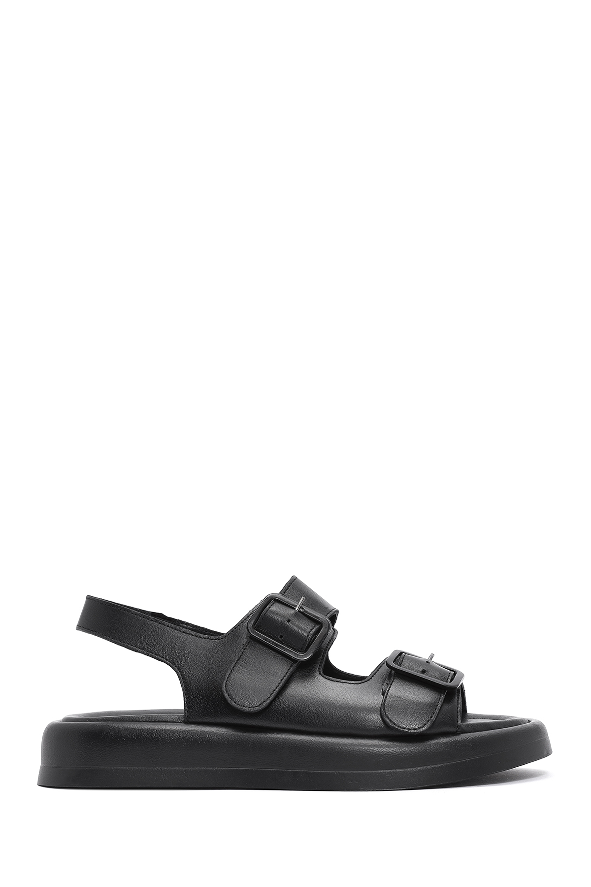 صندل زنانه چرم اصل مشکی ضخیم با زیره 25SFD362318