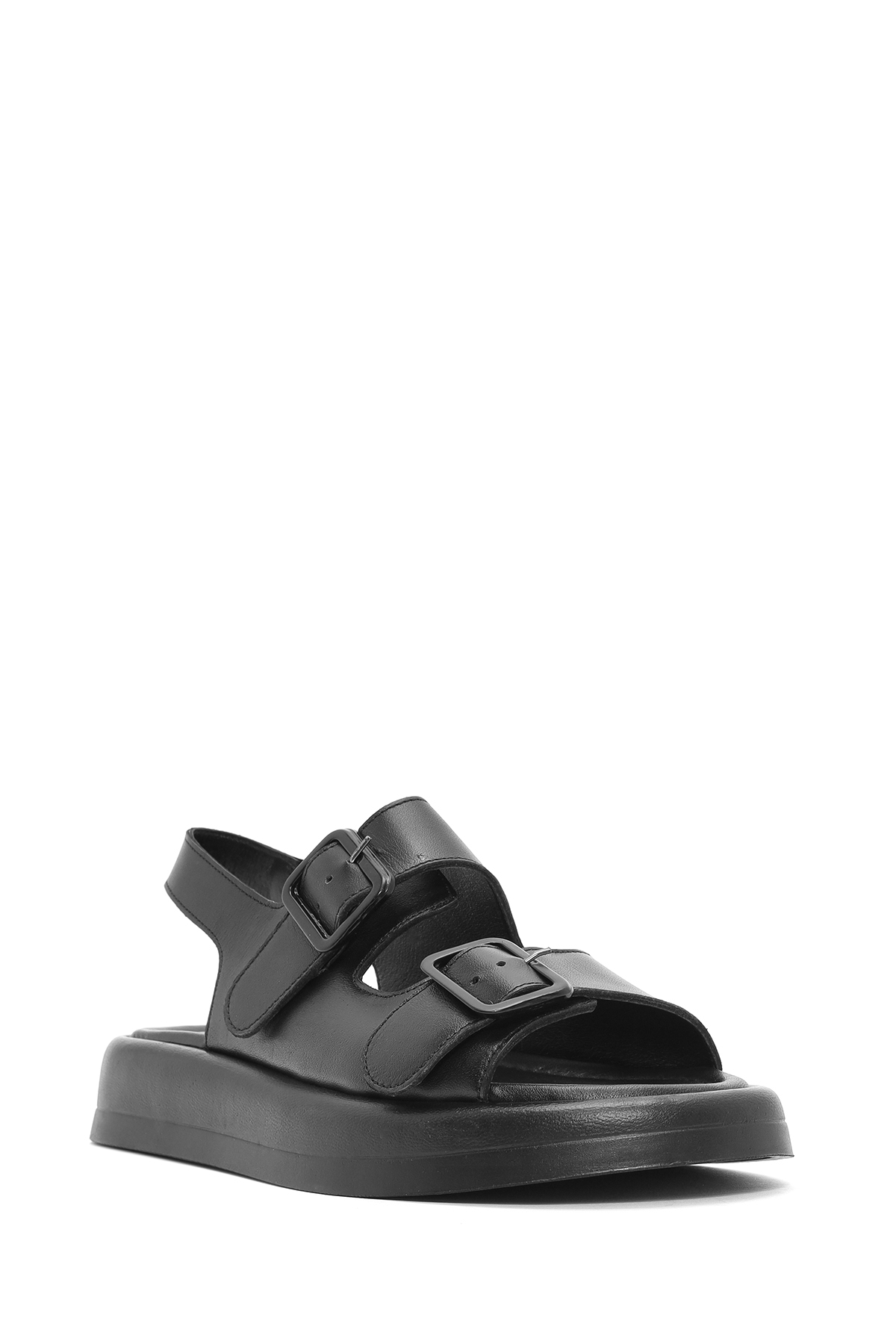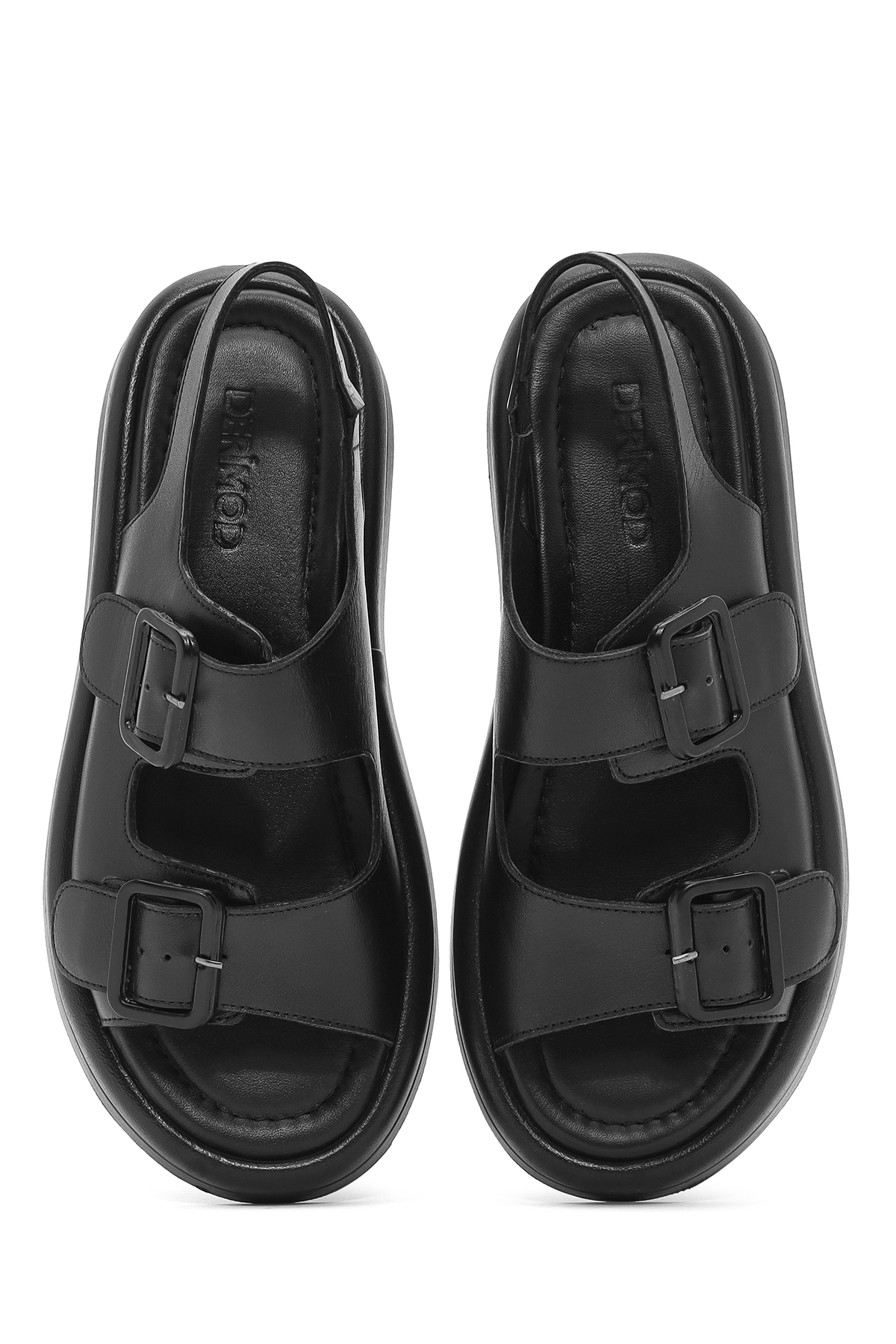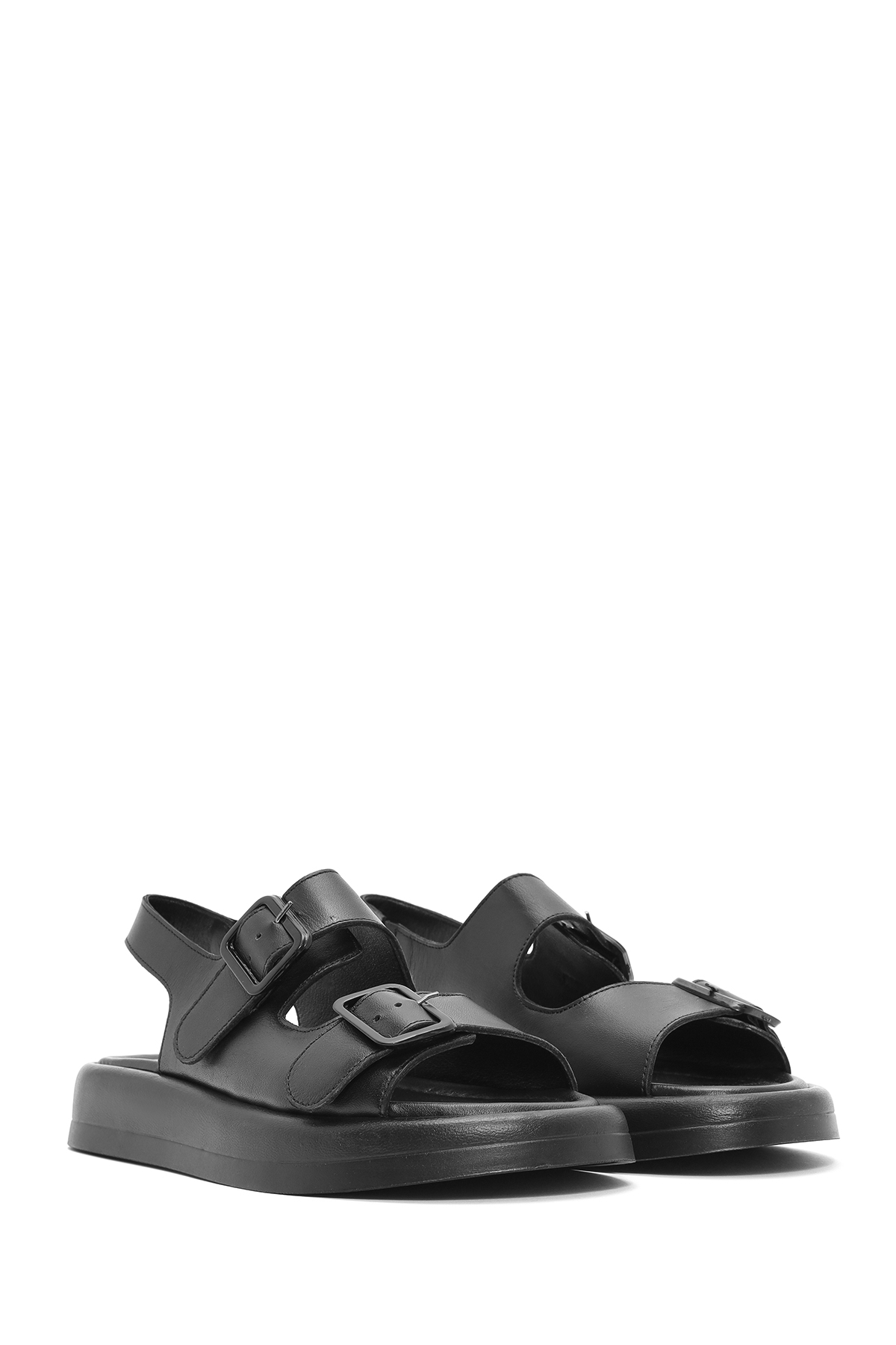 صندل زنانه چرم اصل مشکی ضخیم با زیره 25SFD362318