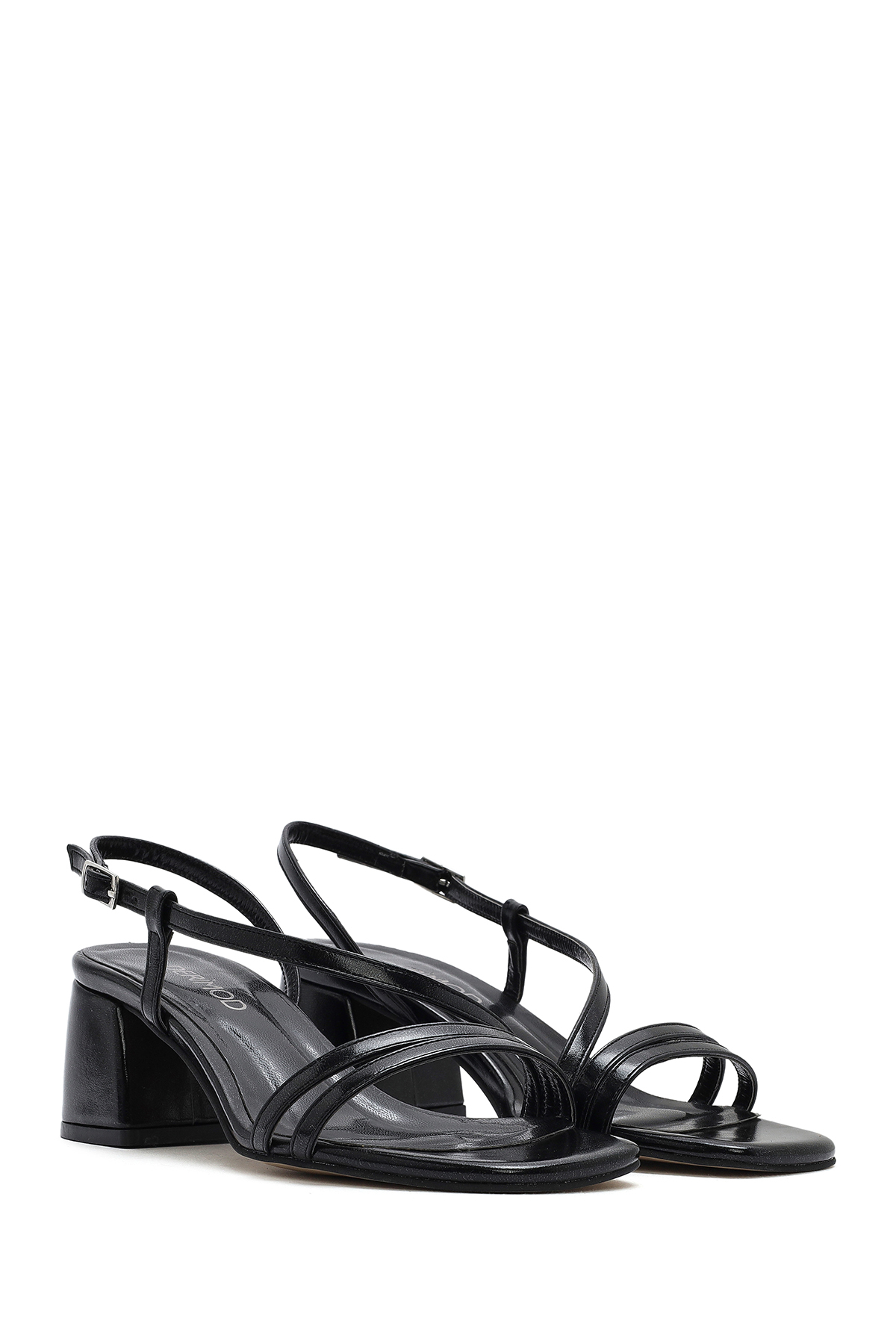 صندل زنانه پاشنه کوتاه و کلفت مشکی بنددار مچ پا کد 25SFE390618