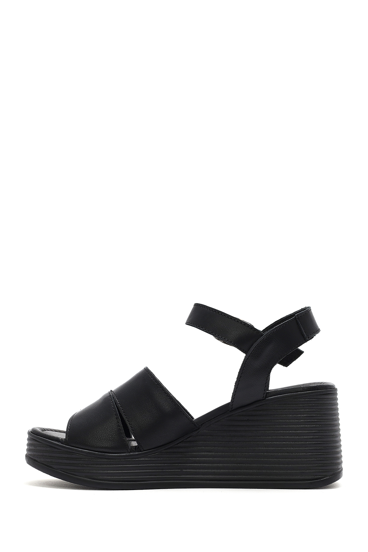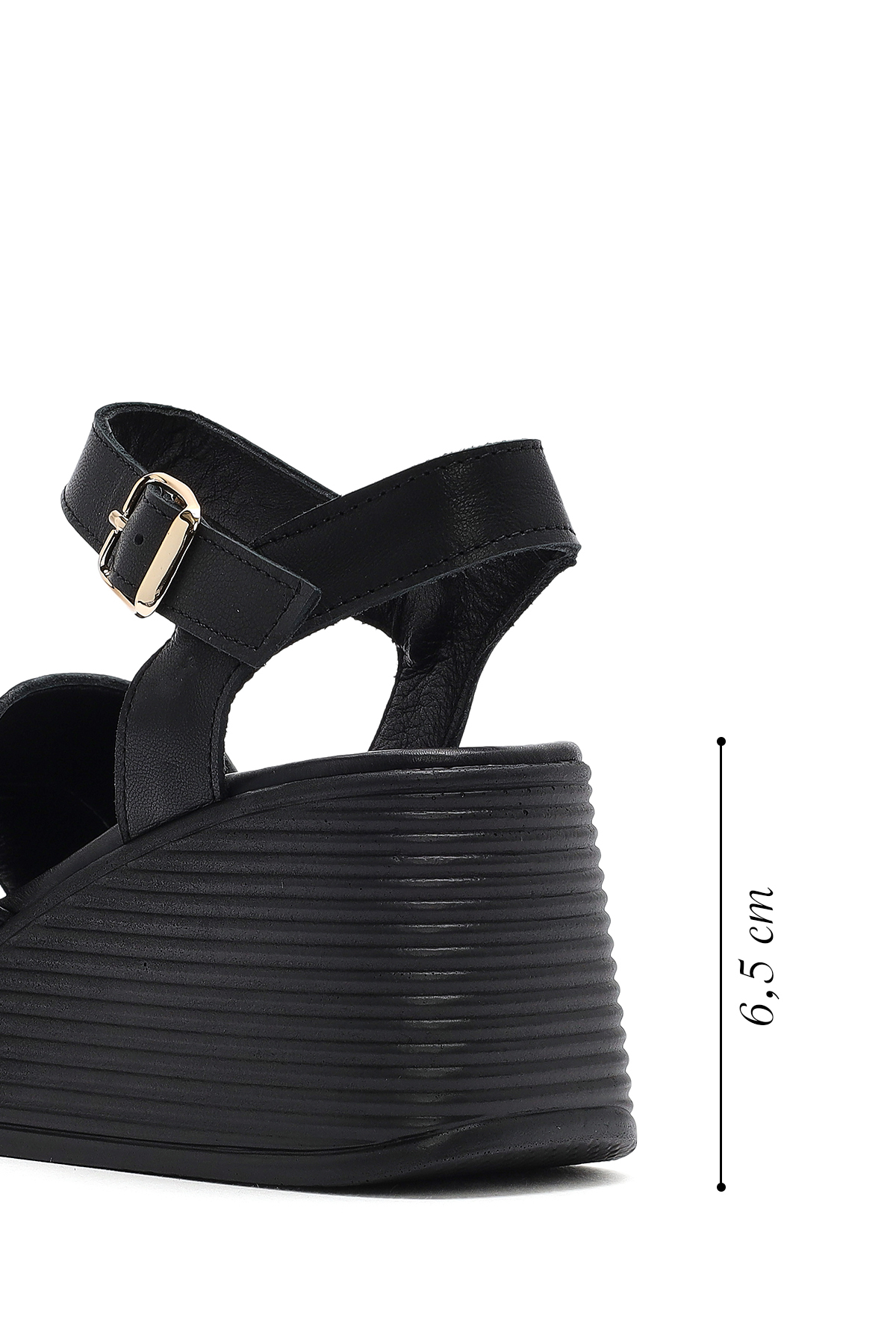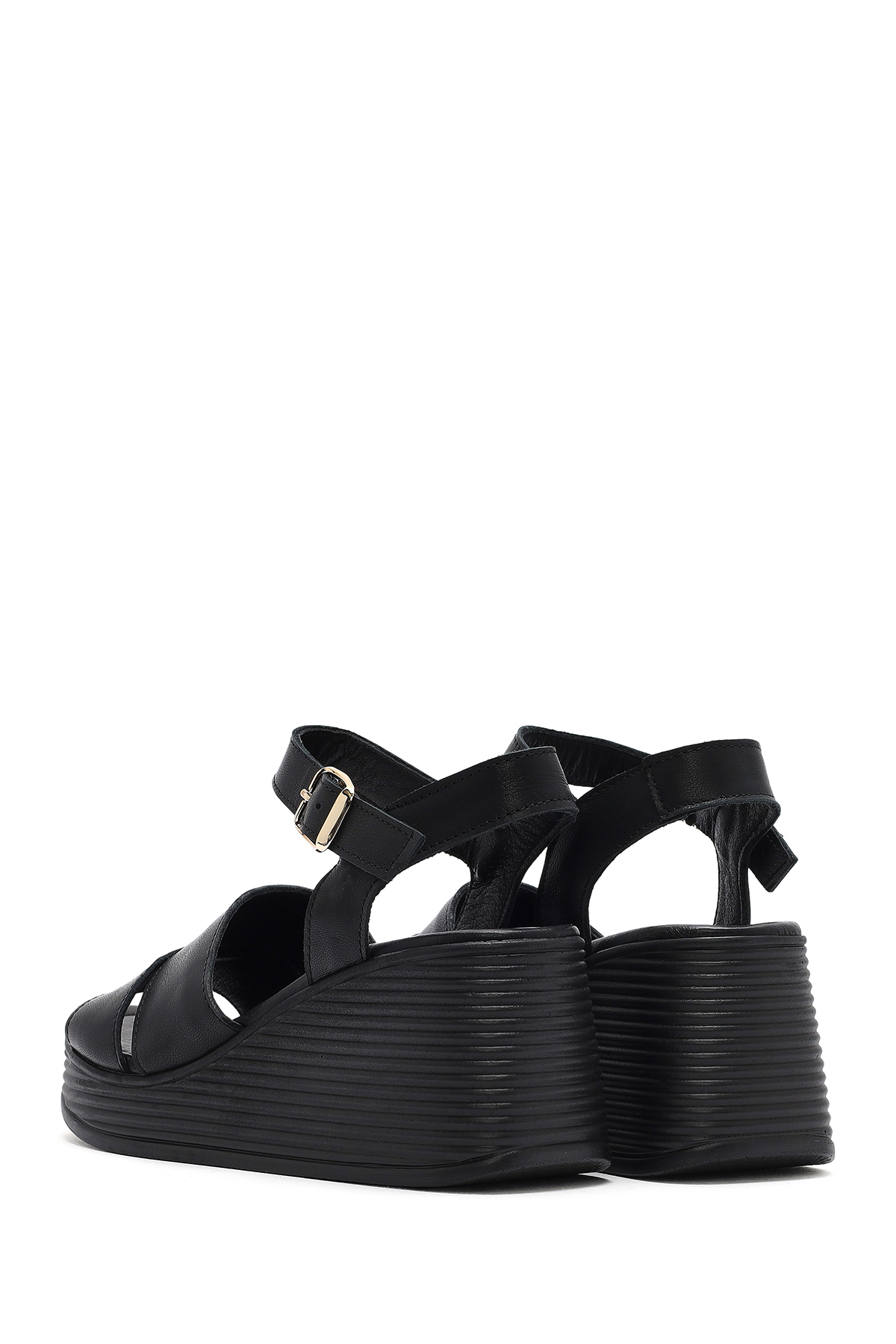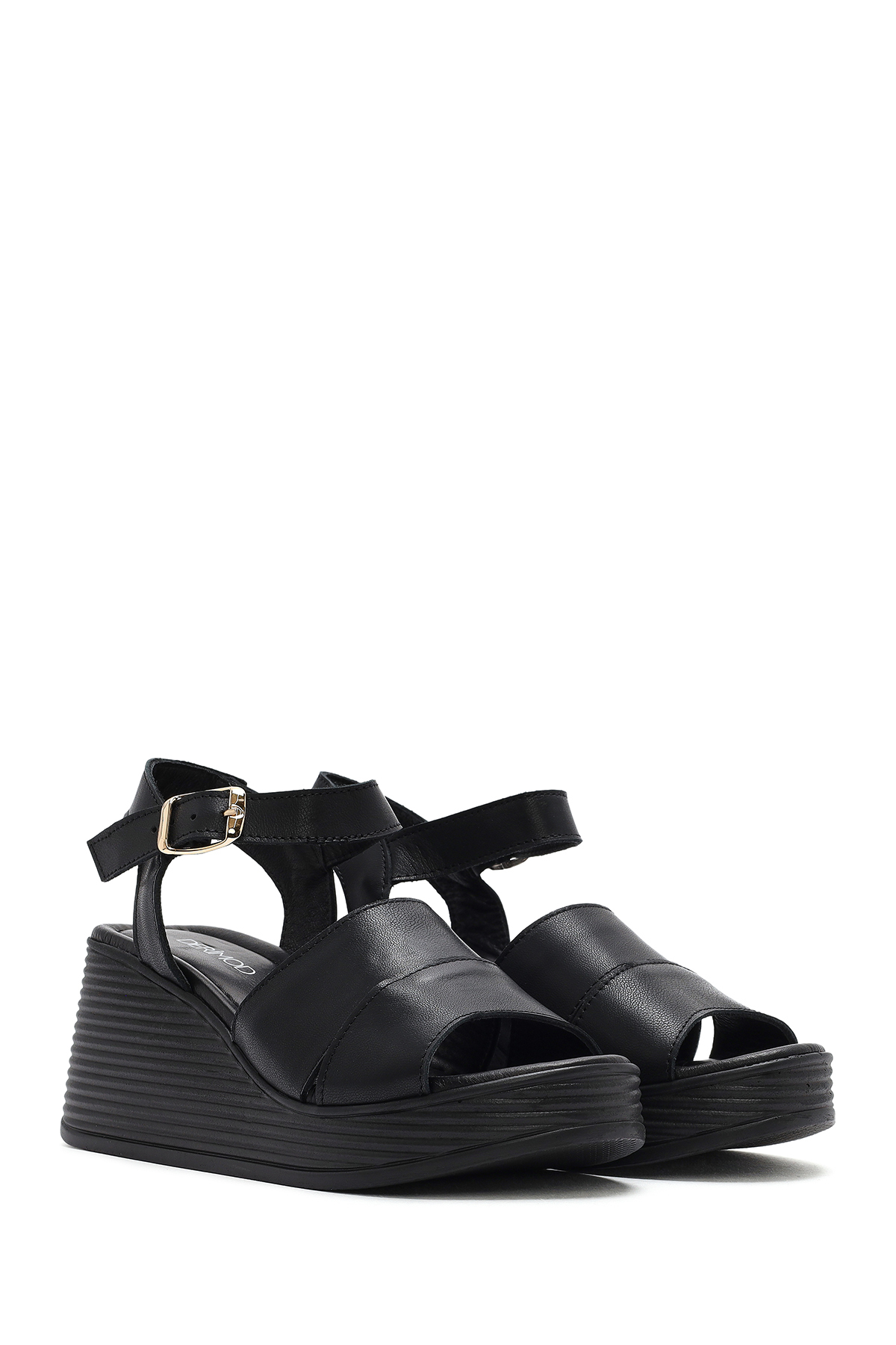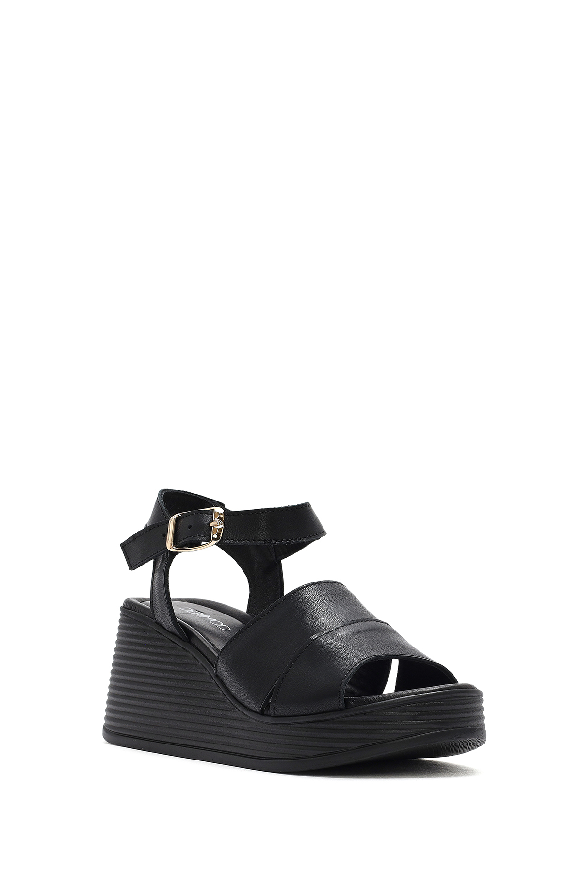 این صندلهای زنانهی چرمی مشکی بنددار، از جنس چرم گاوی هستند.