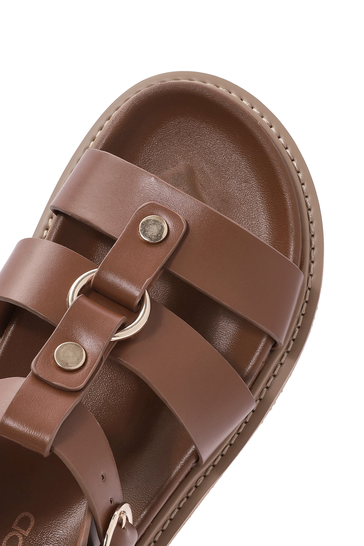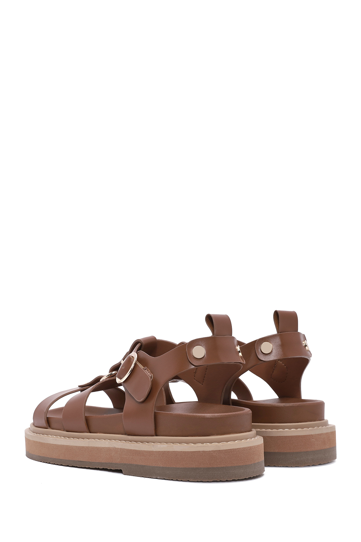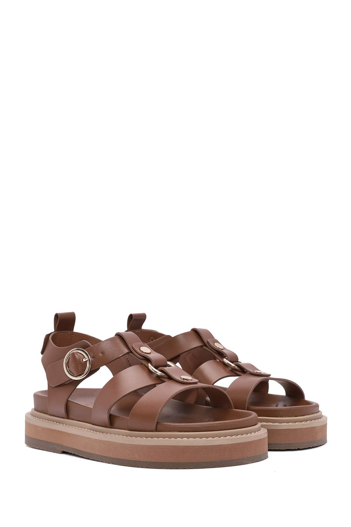 صندلهای زنانه با بند مچ پا و زیره ضخیم قهوهای مایل به زرد