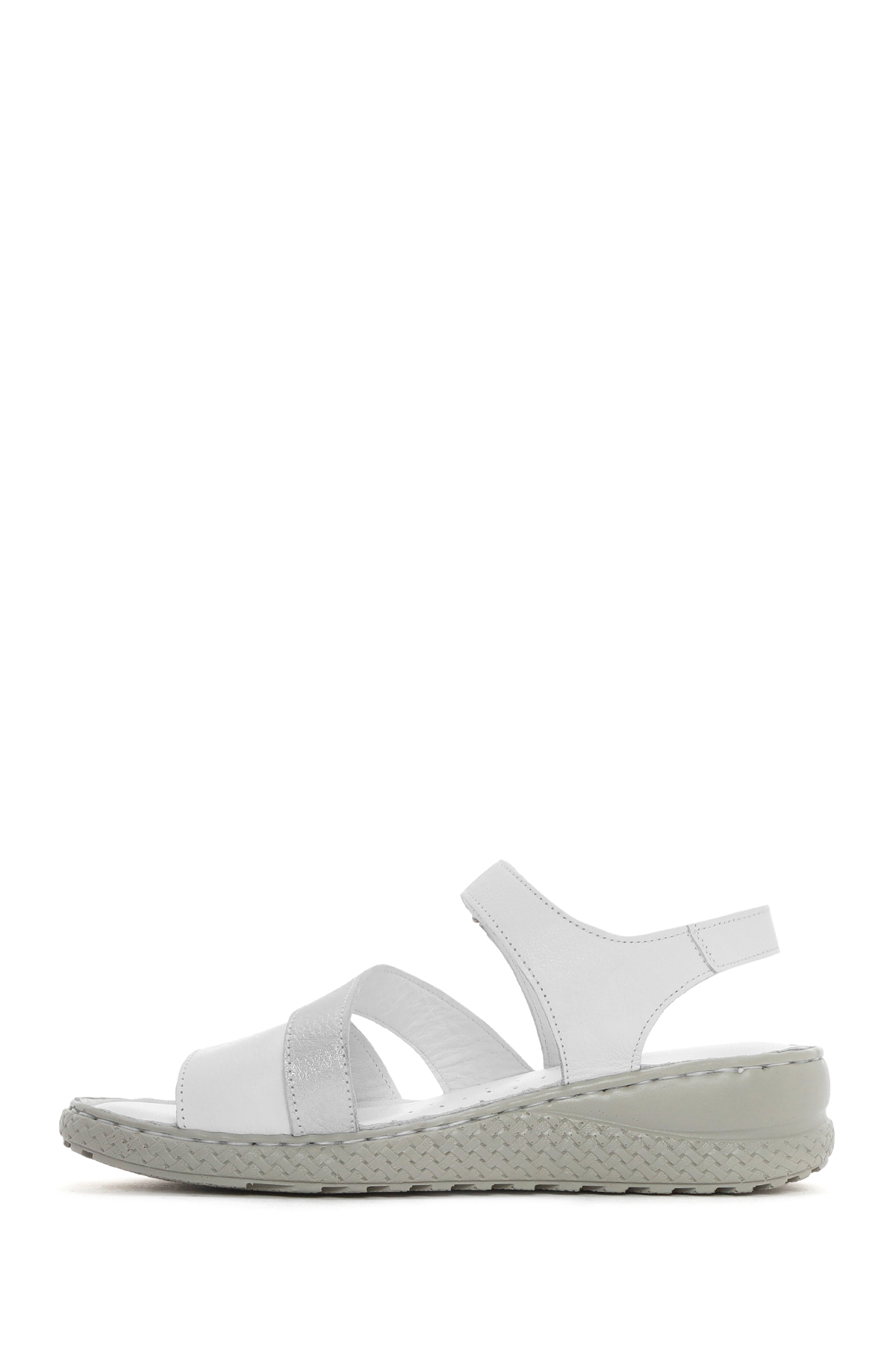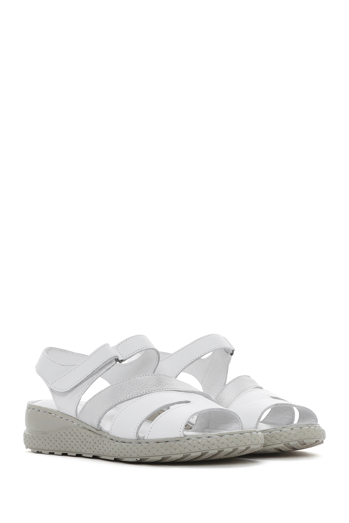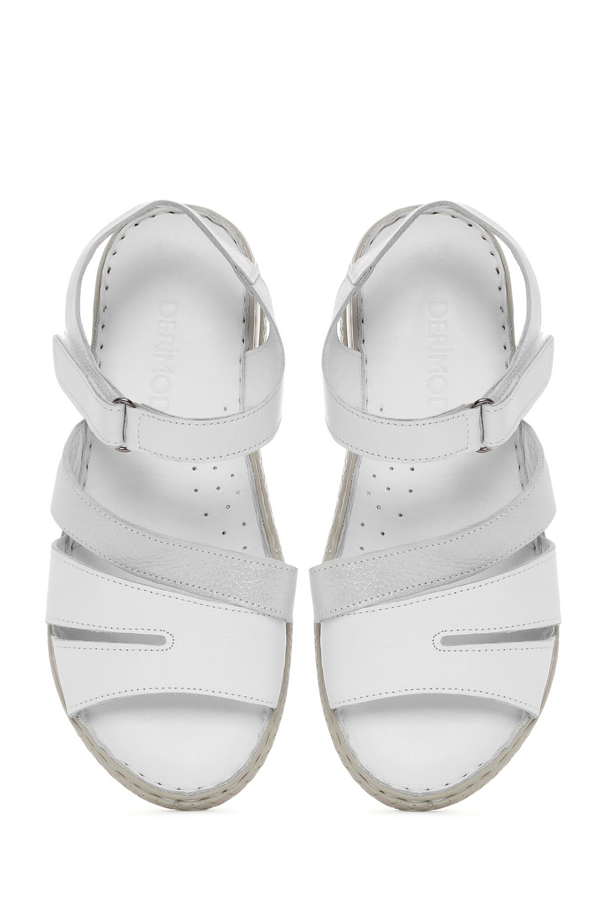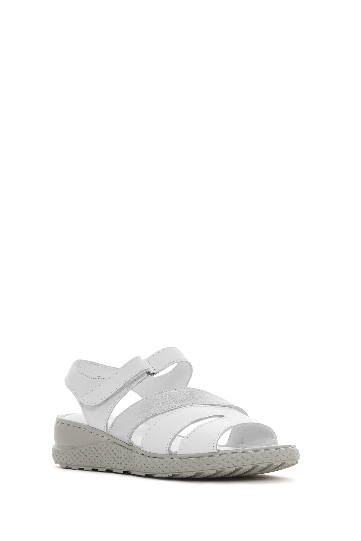 صندل راحتی زنانه چرم بند سفید دارای چرم گاوی است.