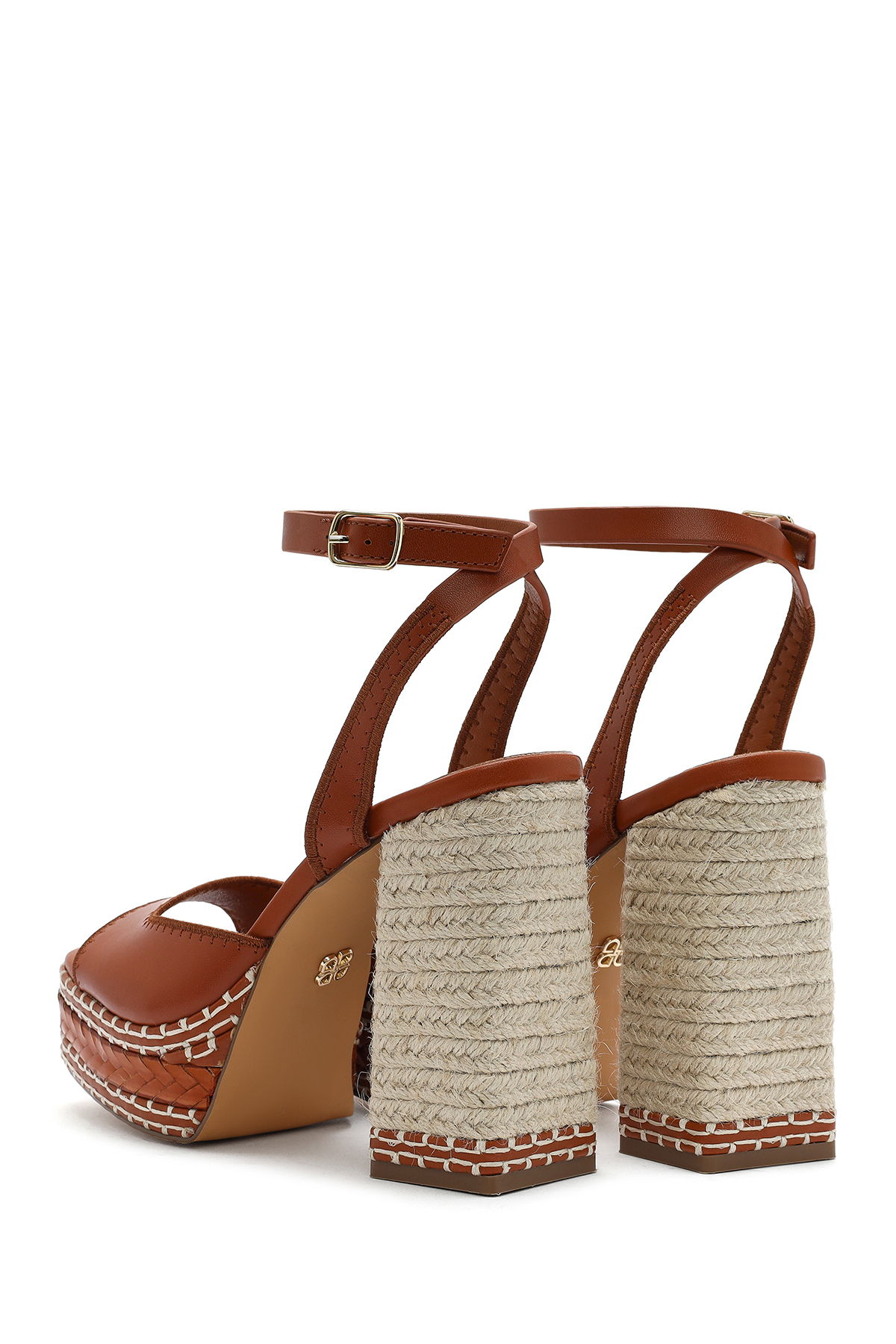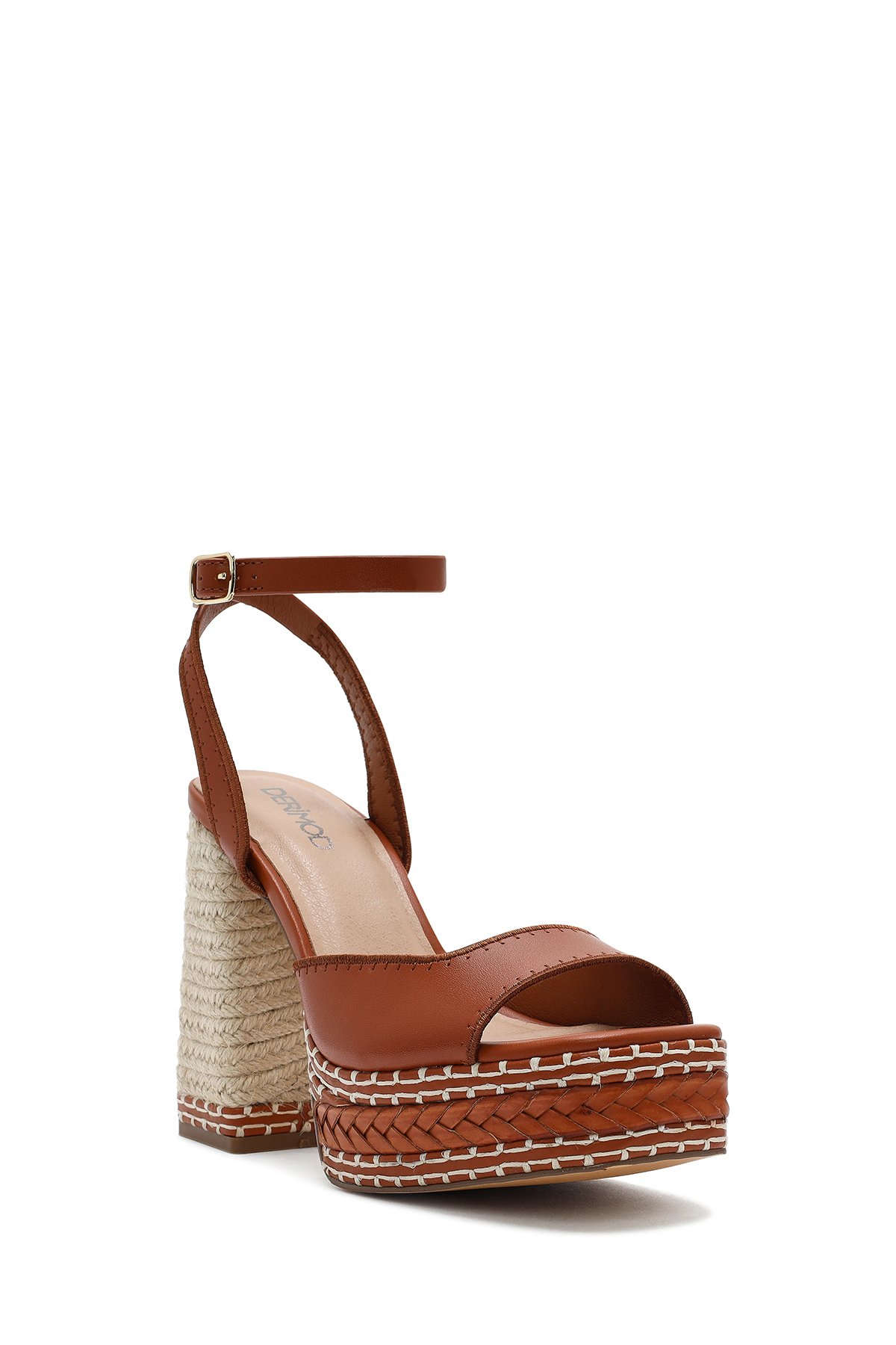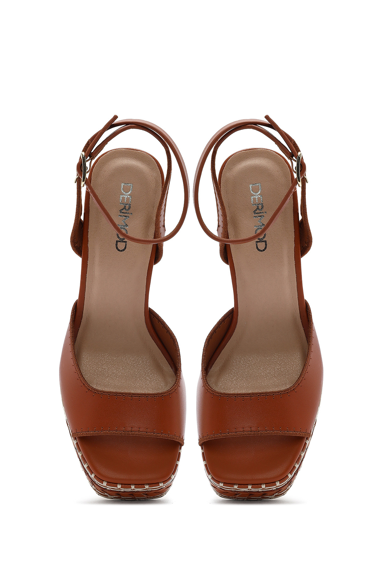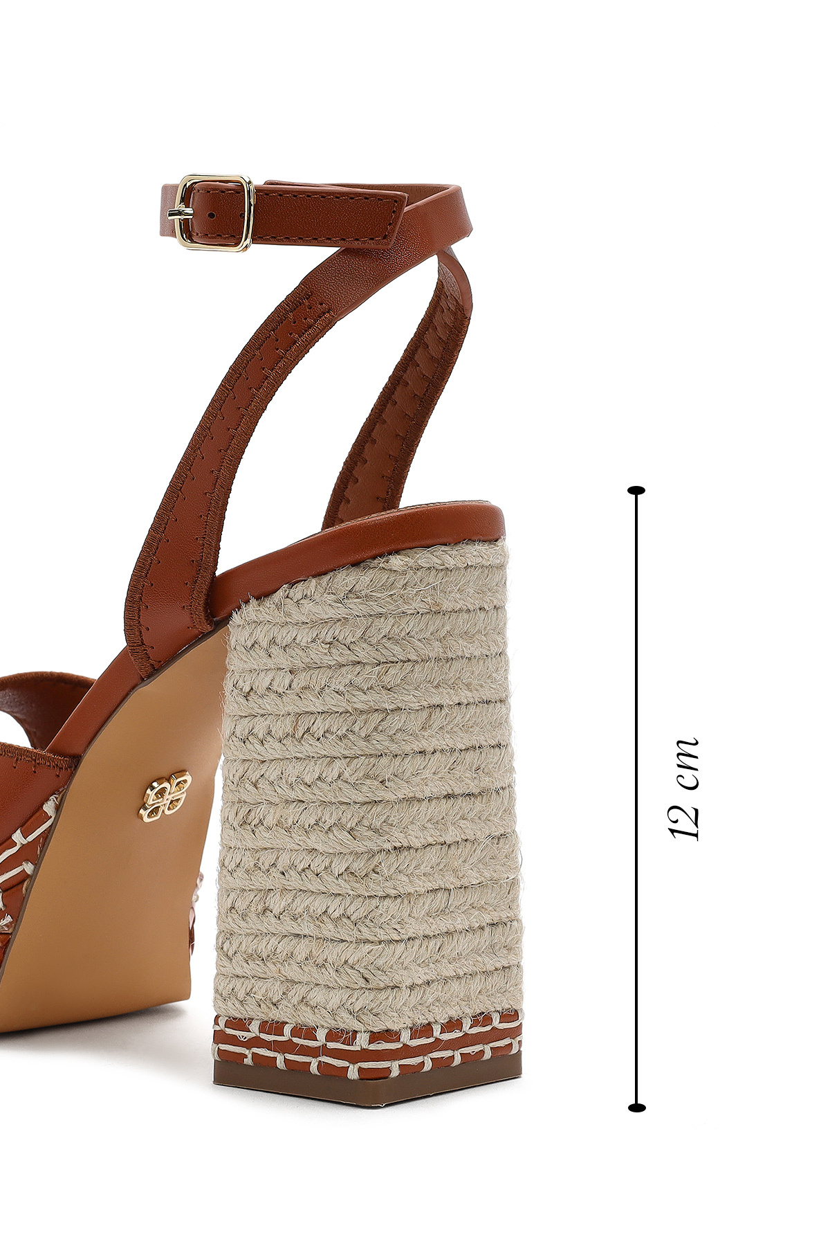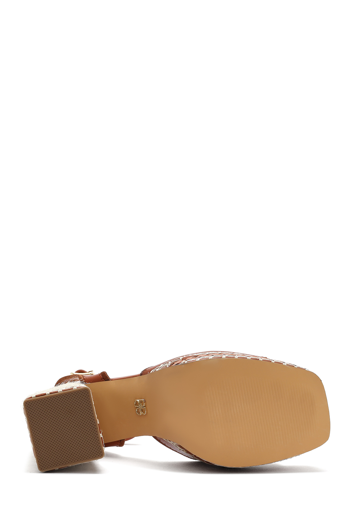 صندل پاشنه بلند زنانه با بند و سگک قهوهای مایل به زرد