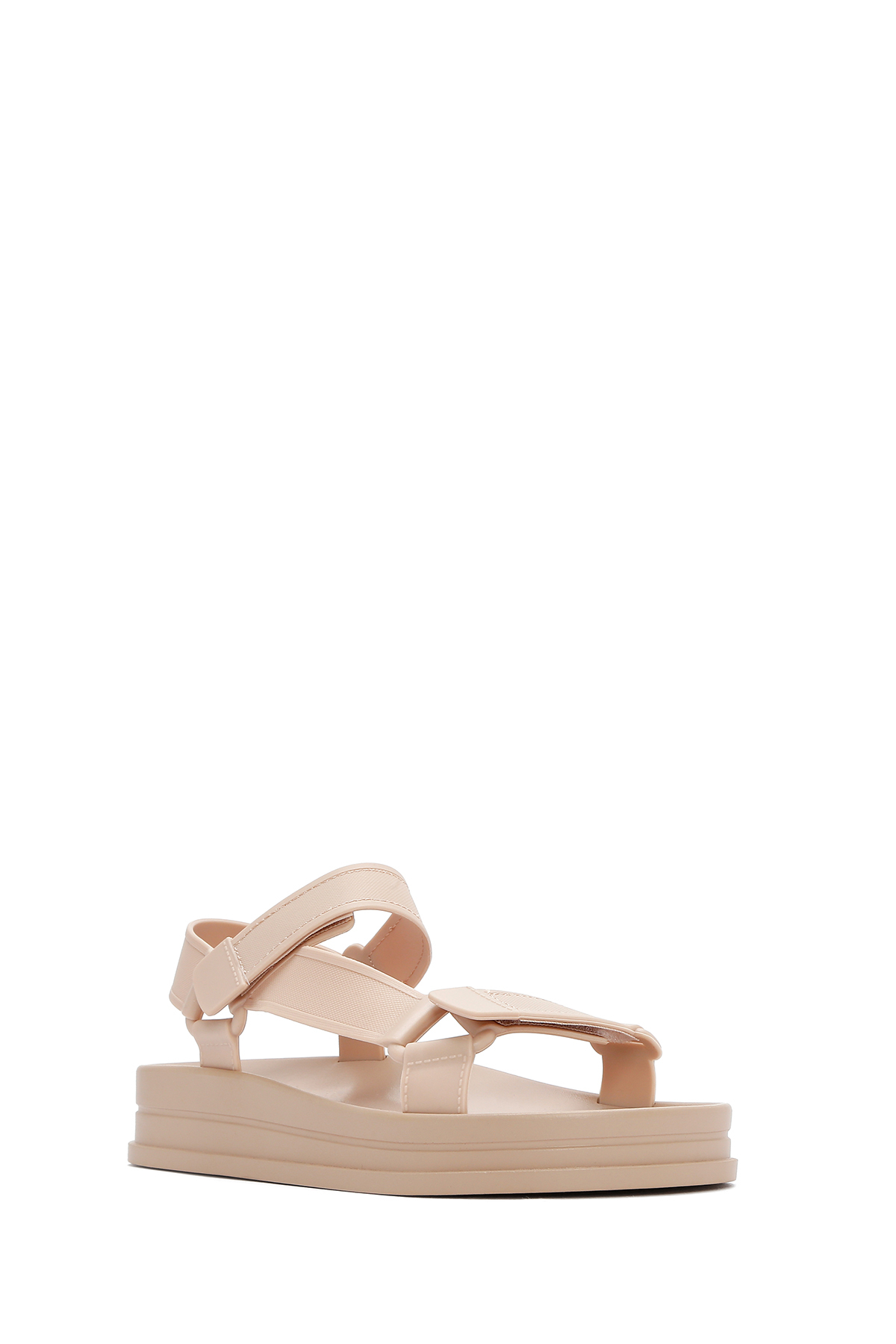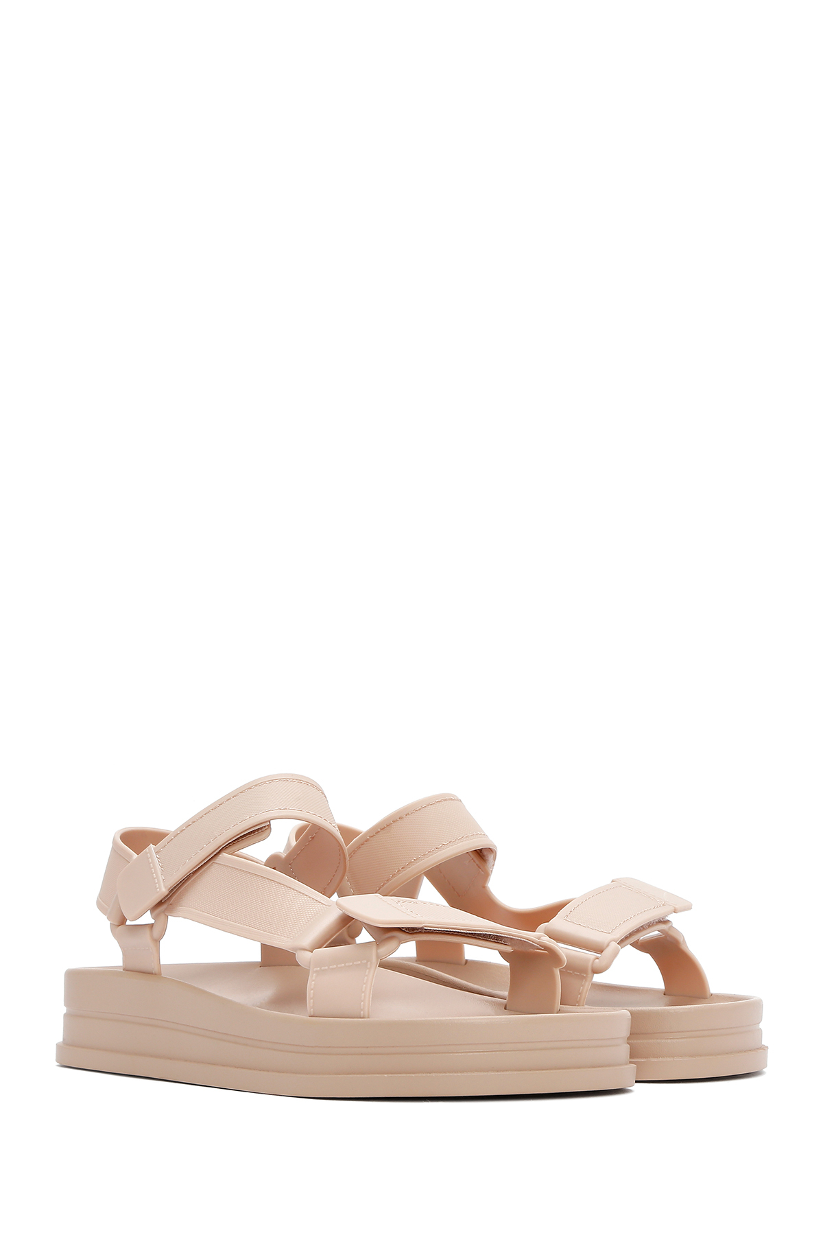 صندل ژله‌ای زنانه با کفی ضخیم و بنددار بژ، کد 25SFE4752PV
