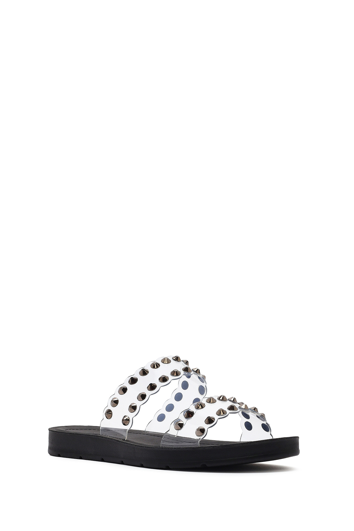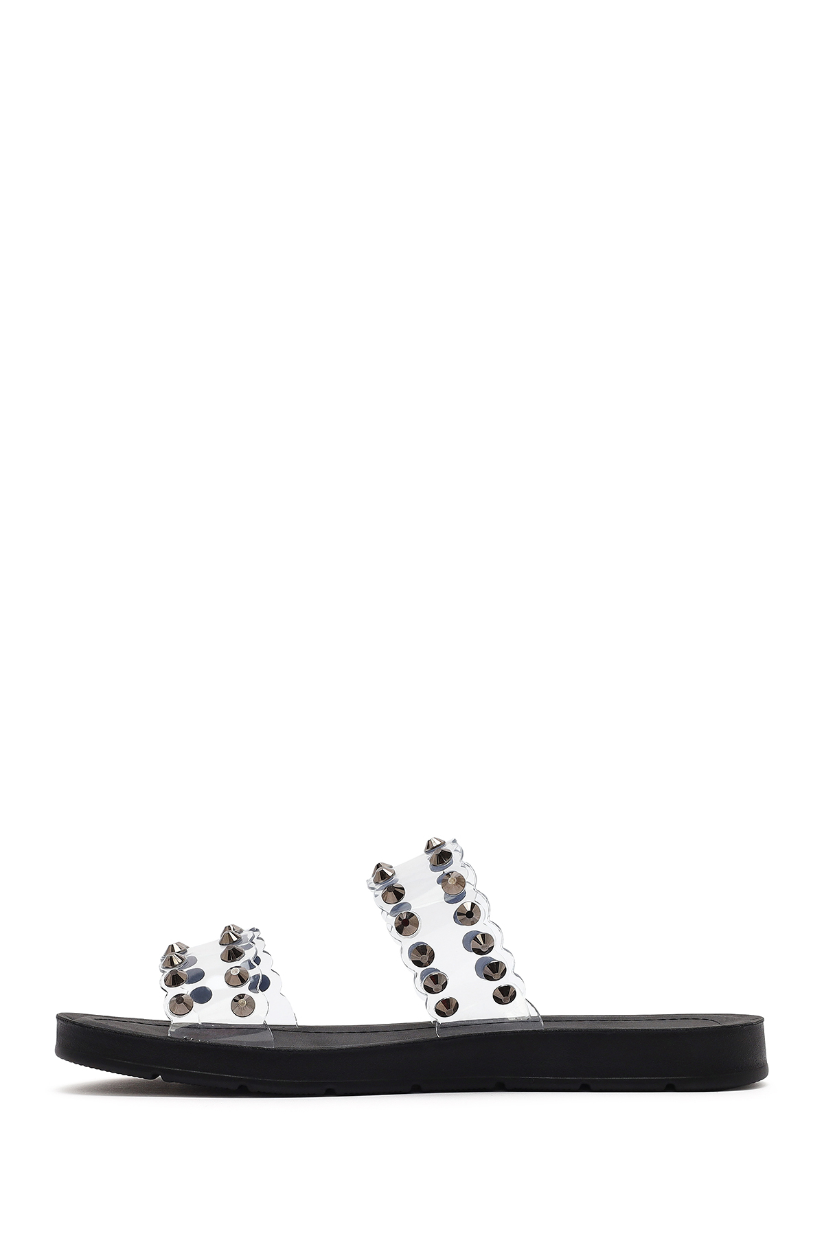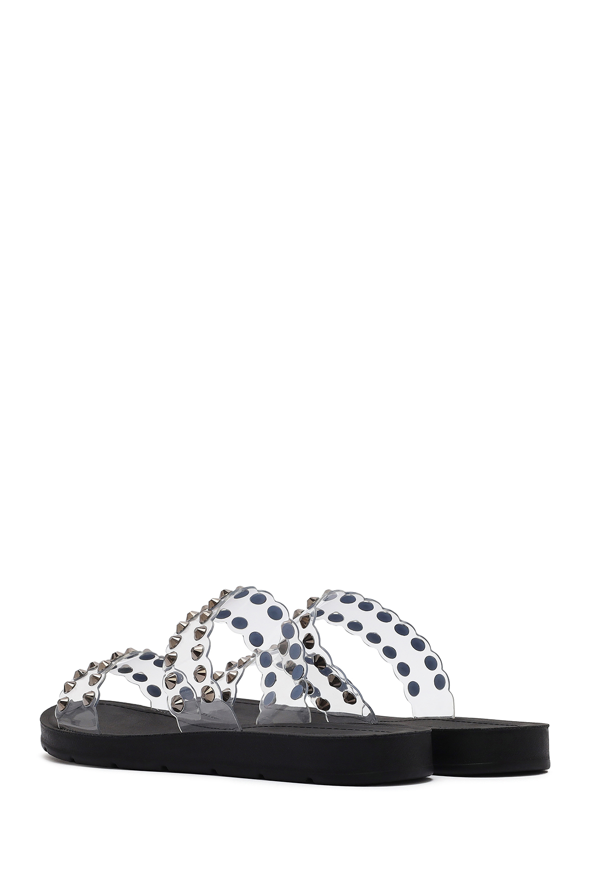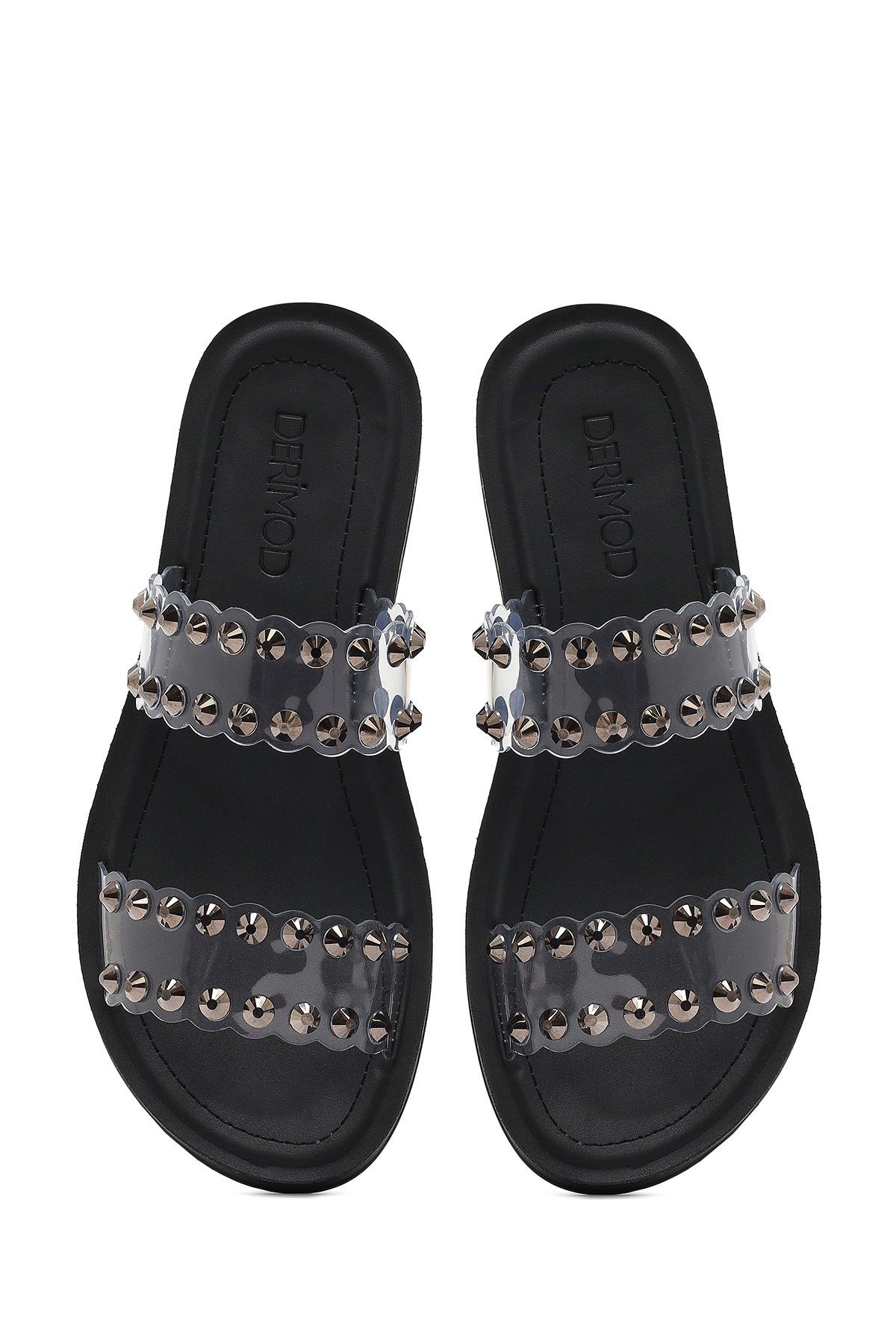 دمپایی زنانه مشکی شفاف با تزئینات سنگی