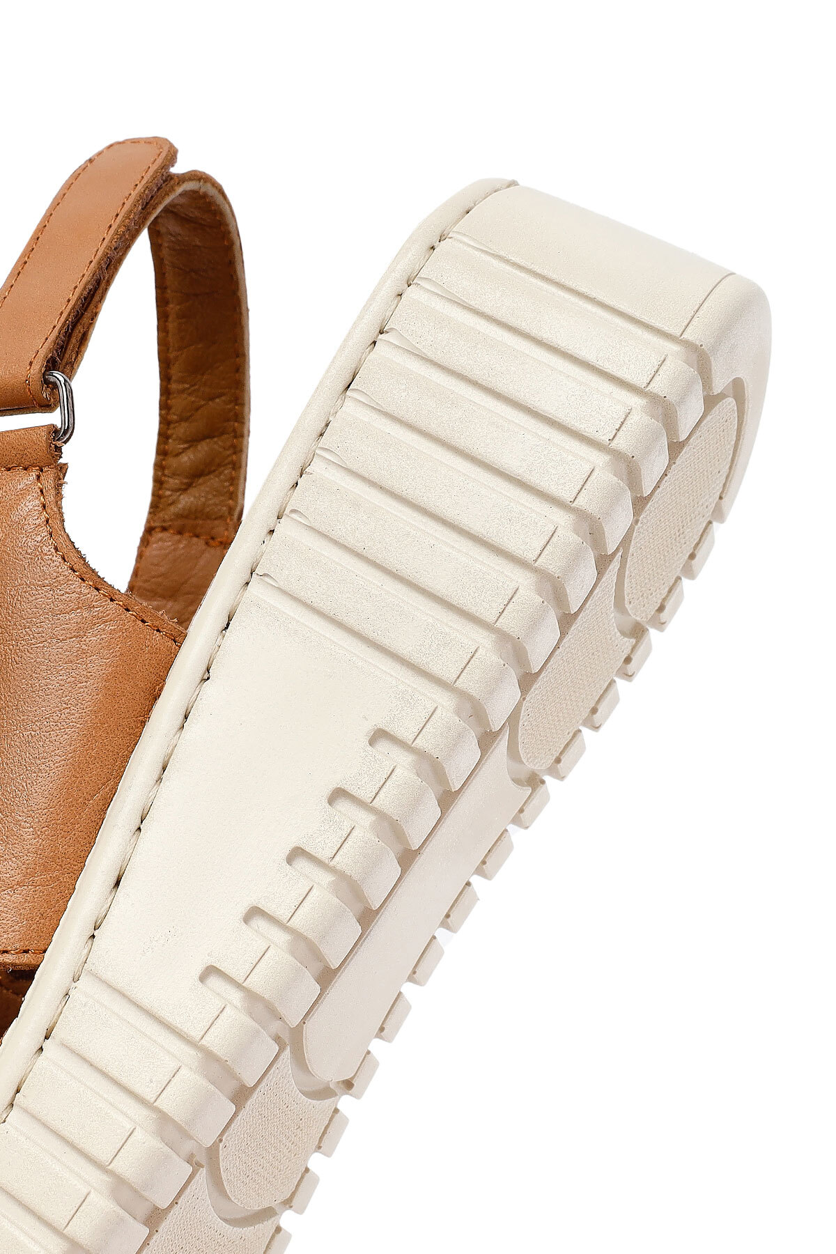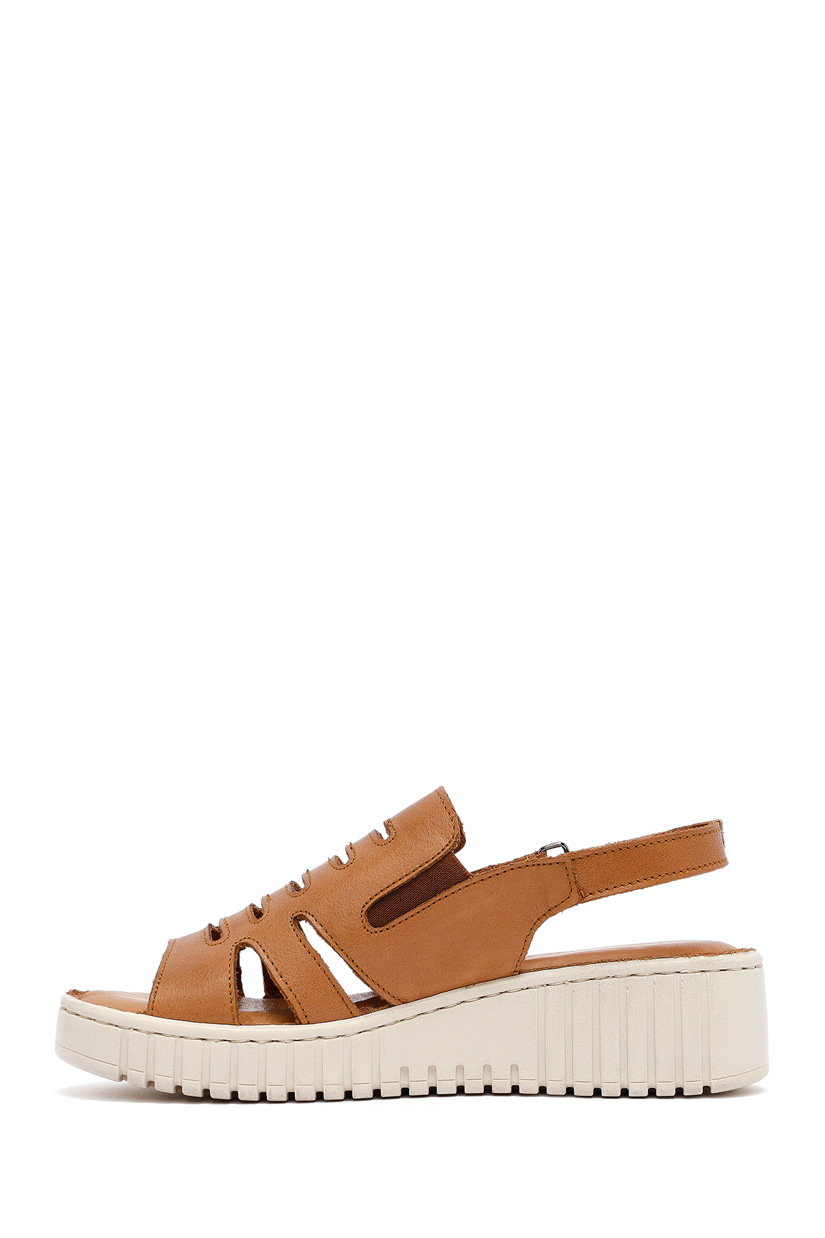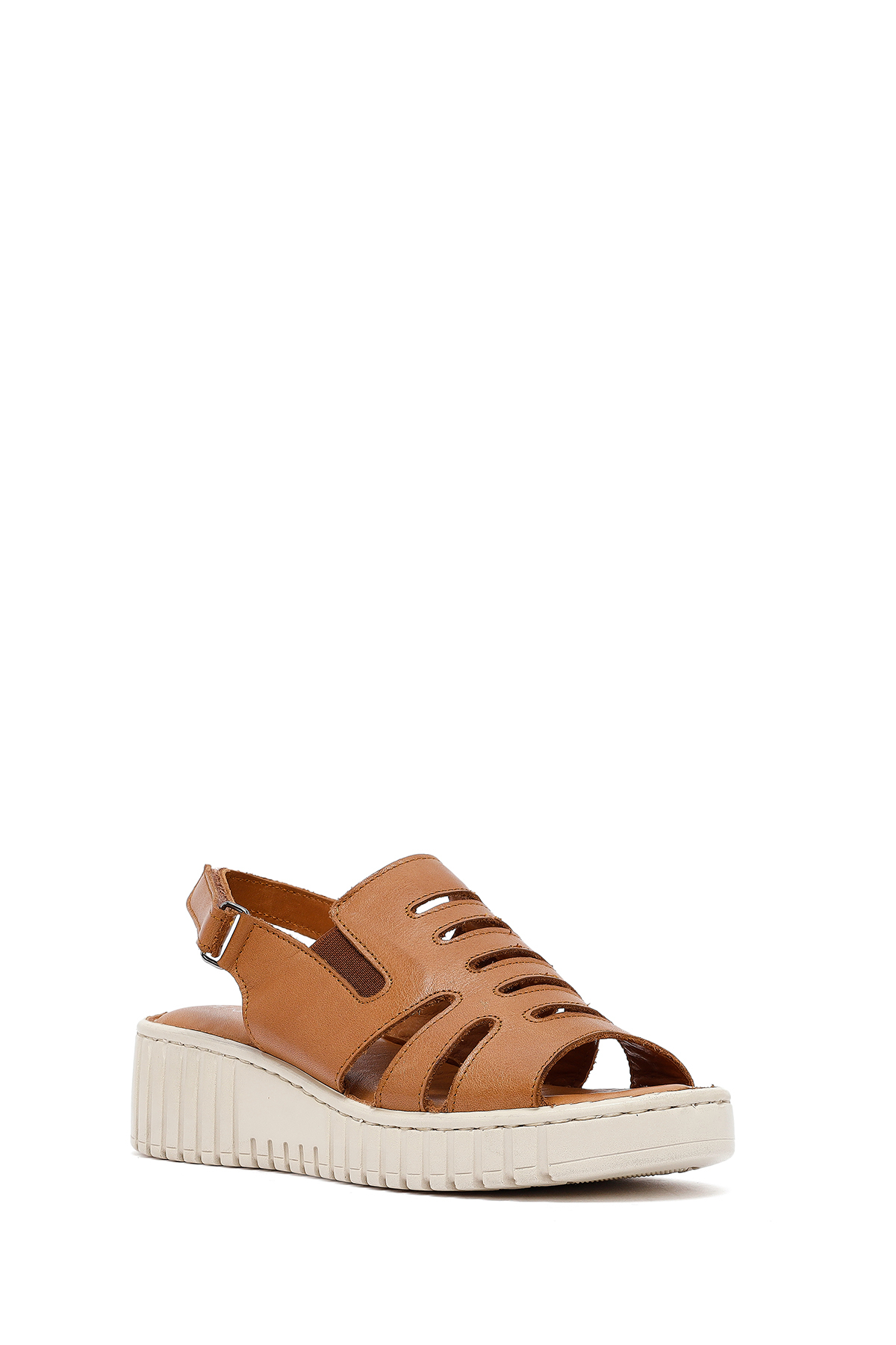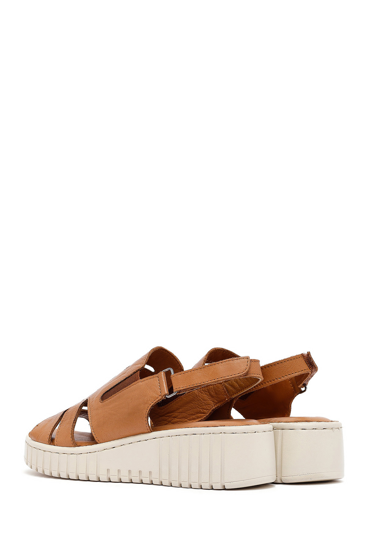 صندل راحتی زنانه چرم قهوهای روشن با کف ضخیم 25SFD410618