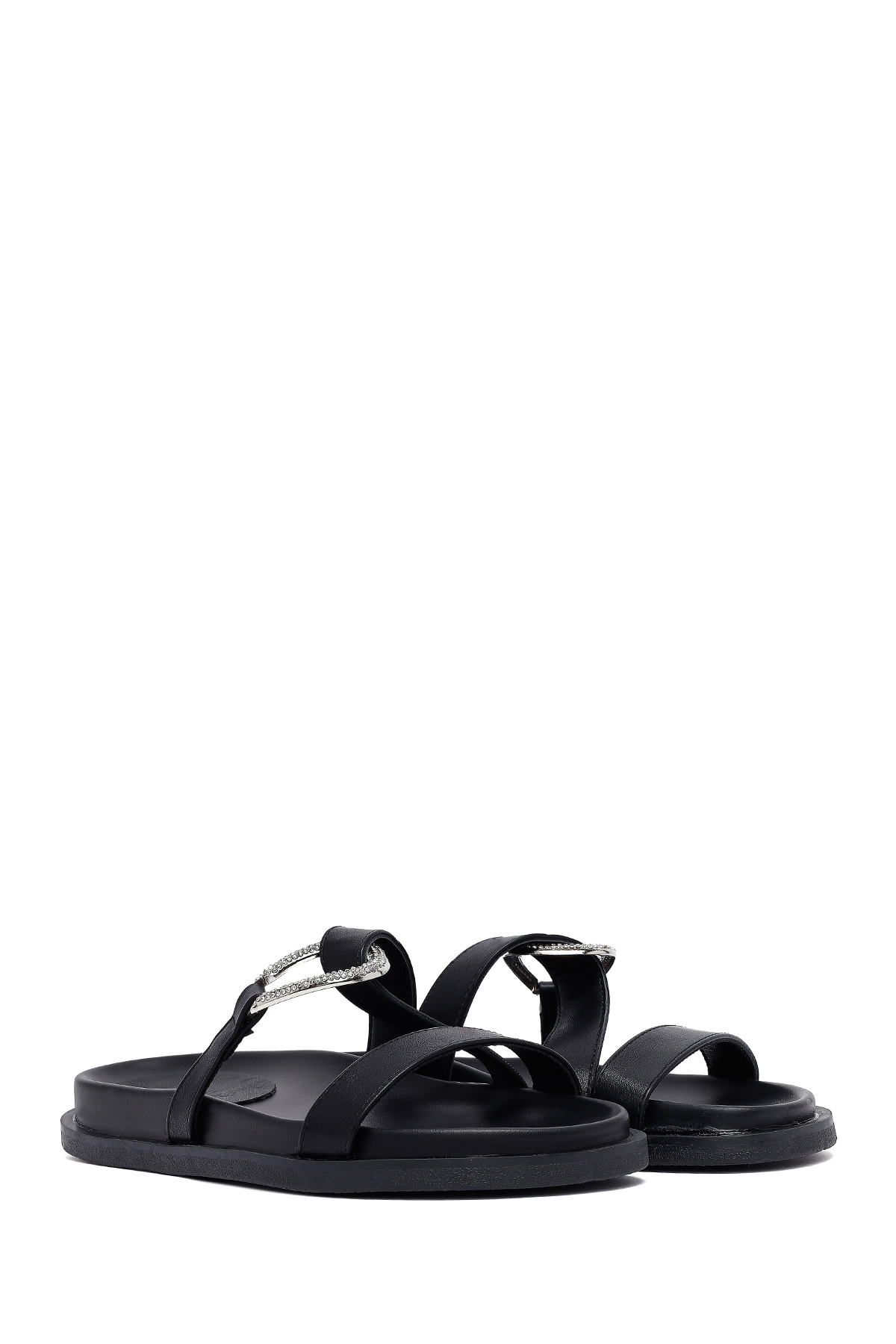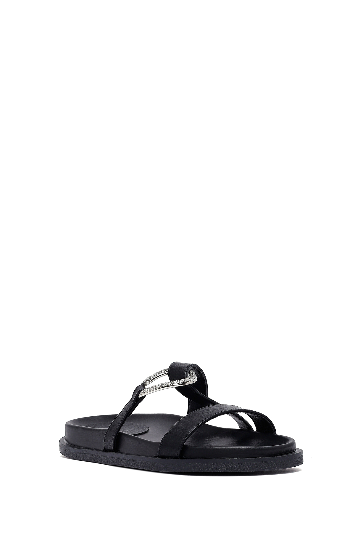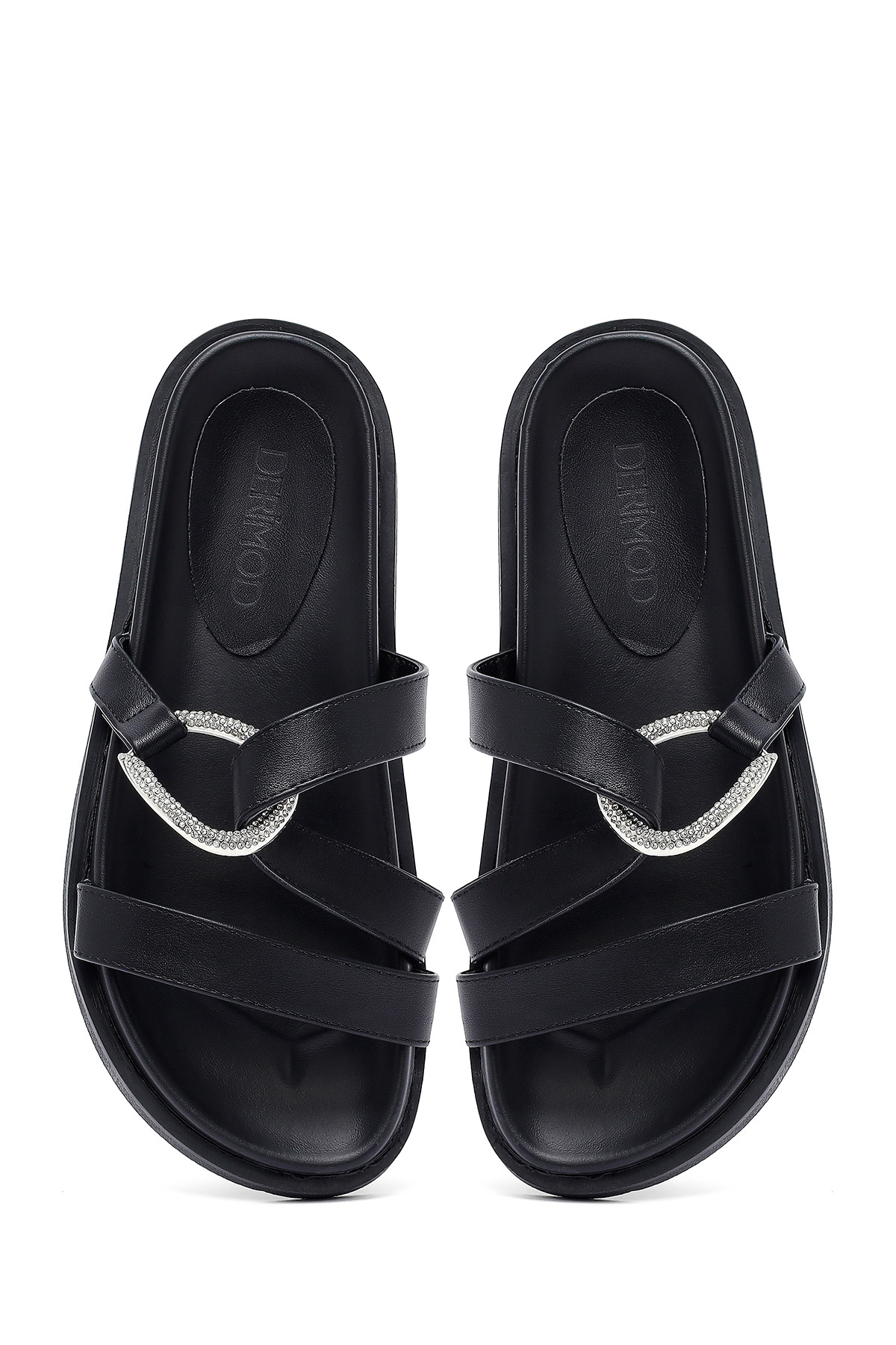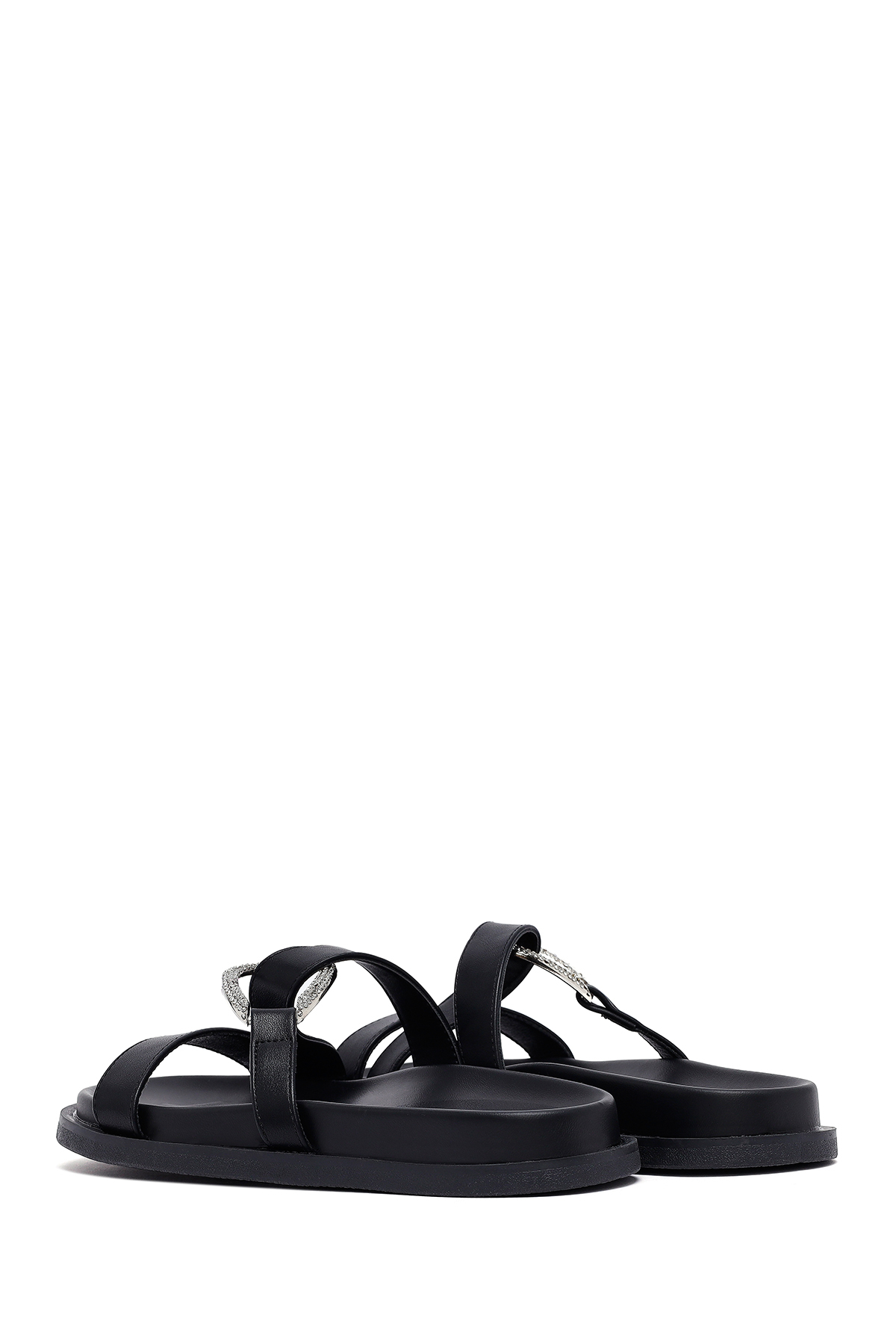 دمپایی زنانه با سنگ مشکی تزیین شده