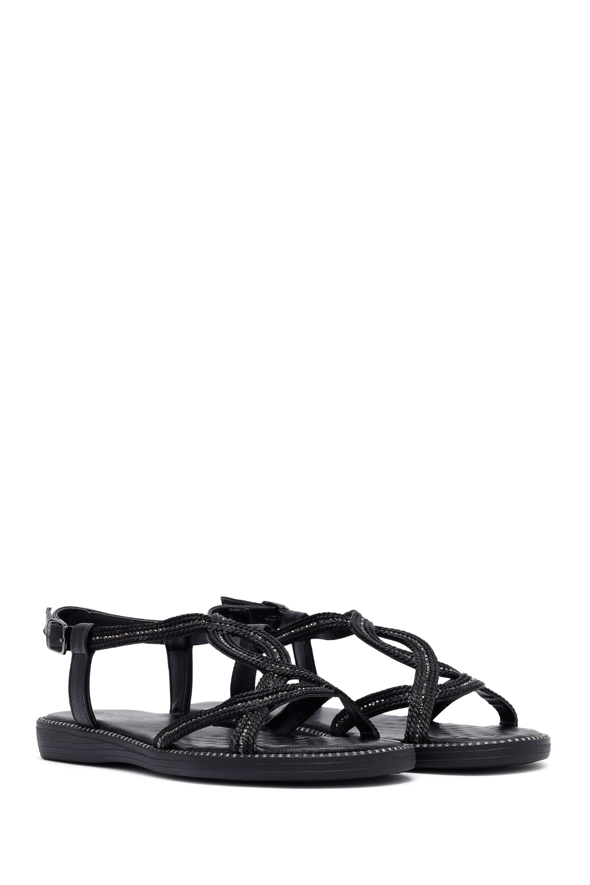 صندلهای زنانه با سنگ مشکی و تزئینات