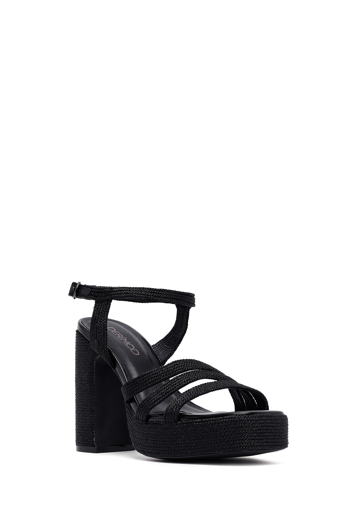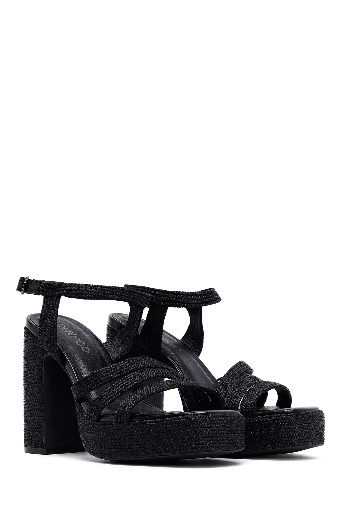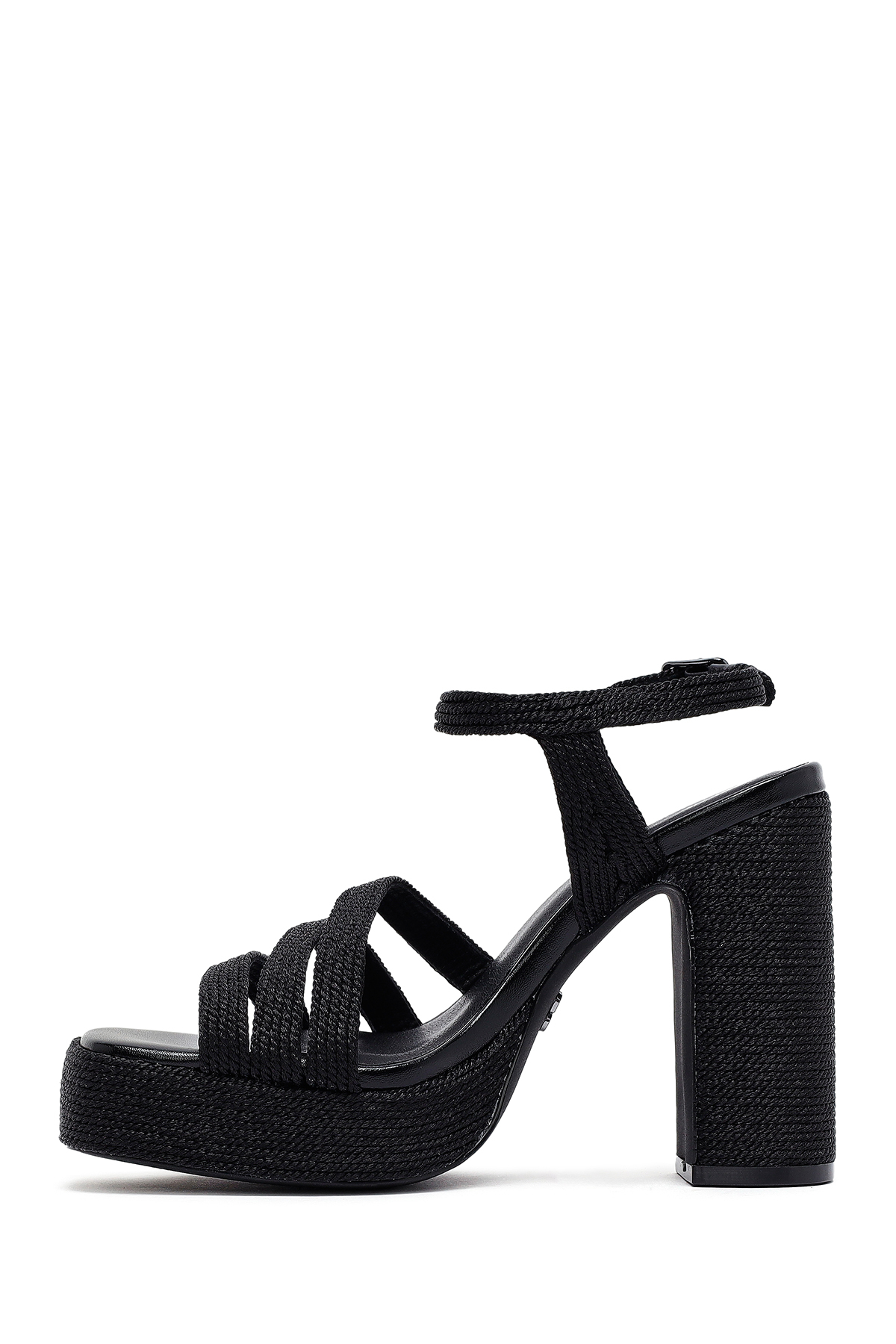 صندل زنانه پاشنه بلند، ضخیم، لژدار، مشکی، مدل 25SFD4433M7