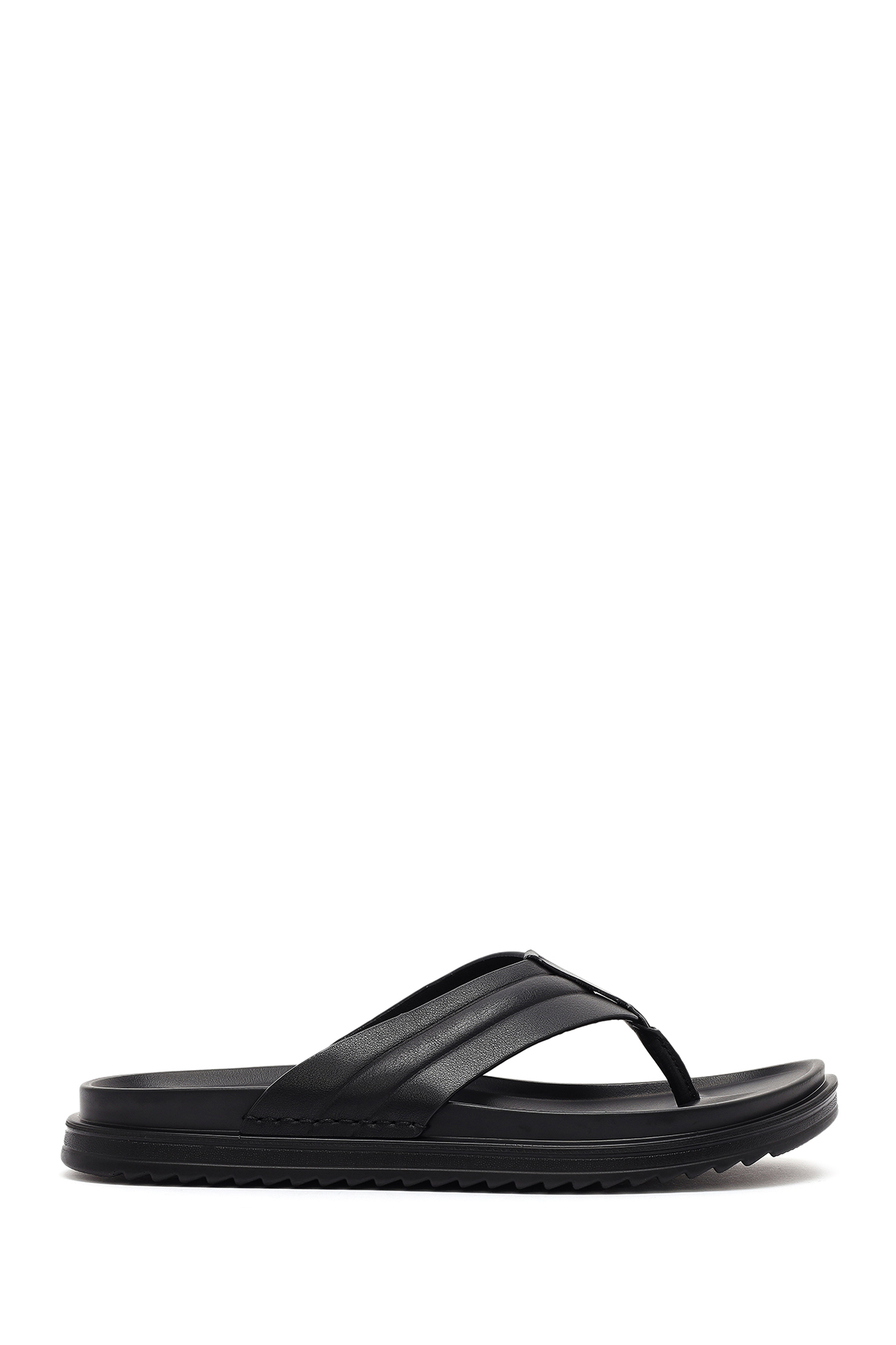 دمپایی مردانه چرم مشکی حاوی چرم گاوی است.