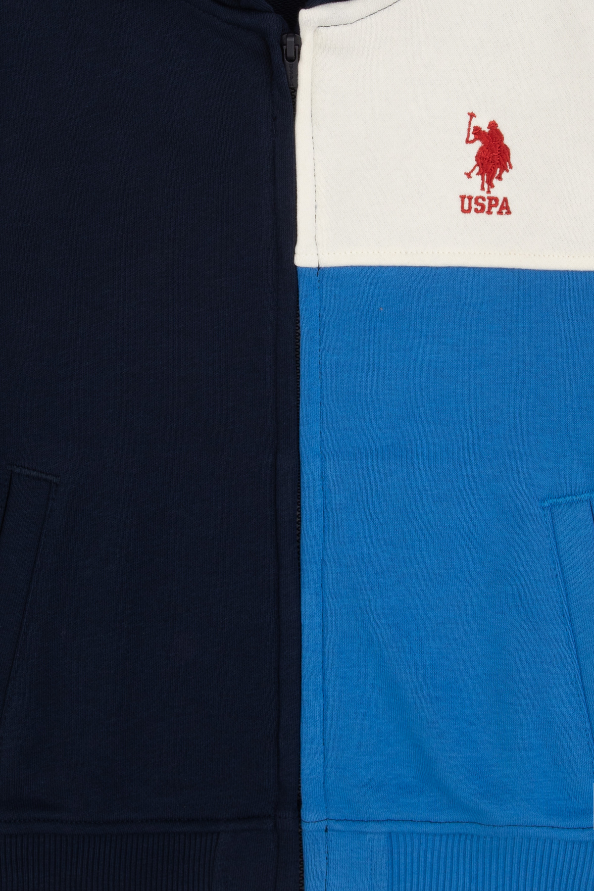 سویشرت کلاه دار زیپ دار سرمه ای پسرانه یو اس پولو کد :(50316427-VR033)
