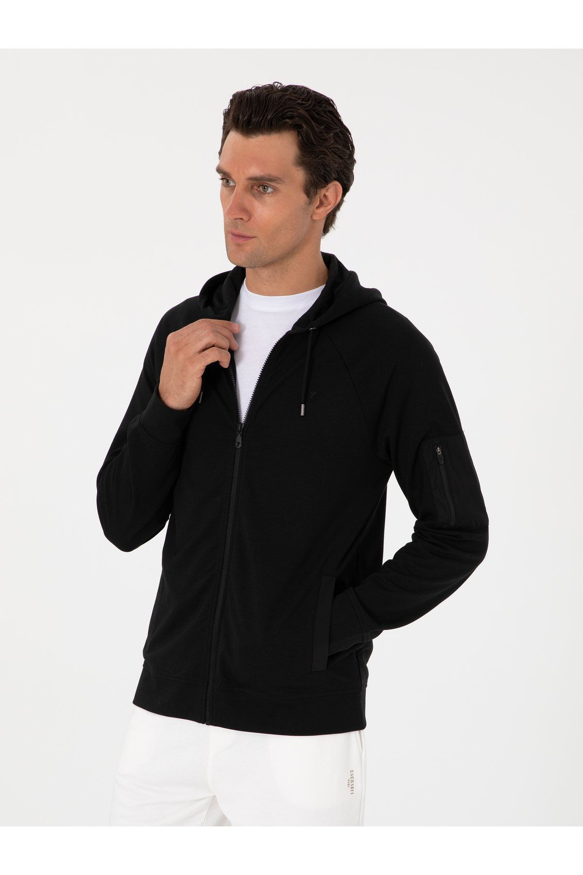 سویشرت کلاهدار تمام زیپ مشکی معمولی فیت برند کاشارل کد:(50300994-VR046)
