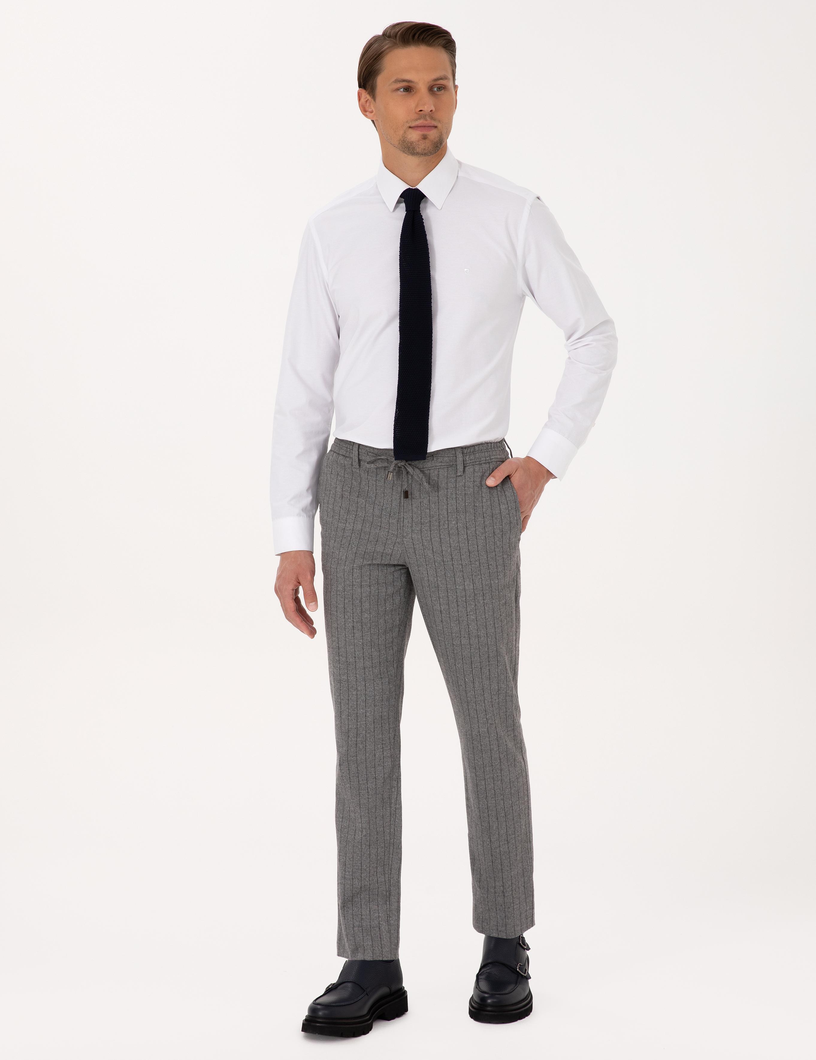 شلوار پارچهای راه راه بسیار باریک خاکستری پیر کاردین